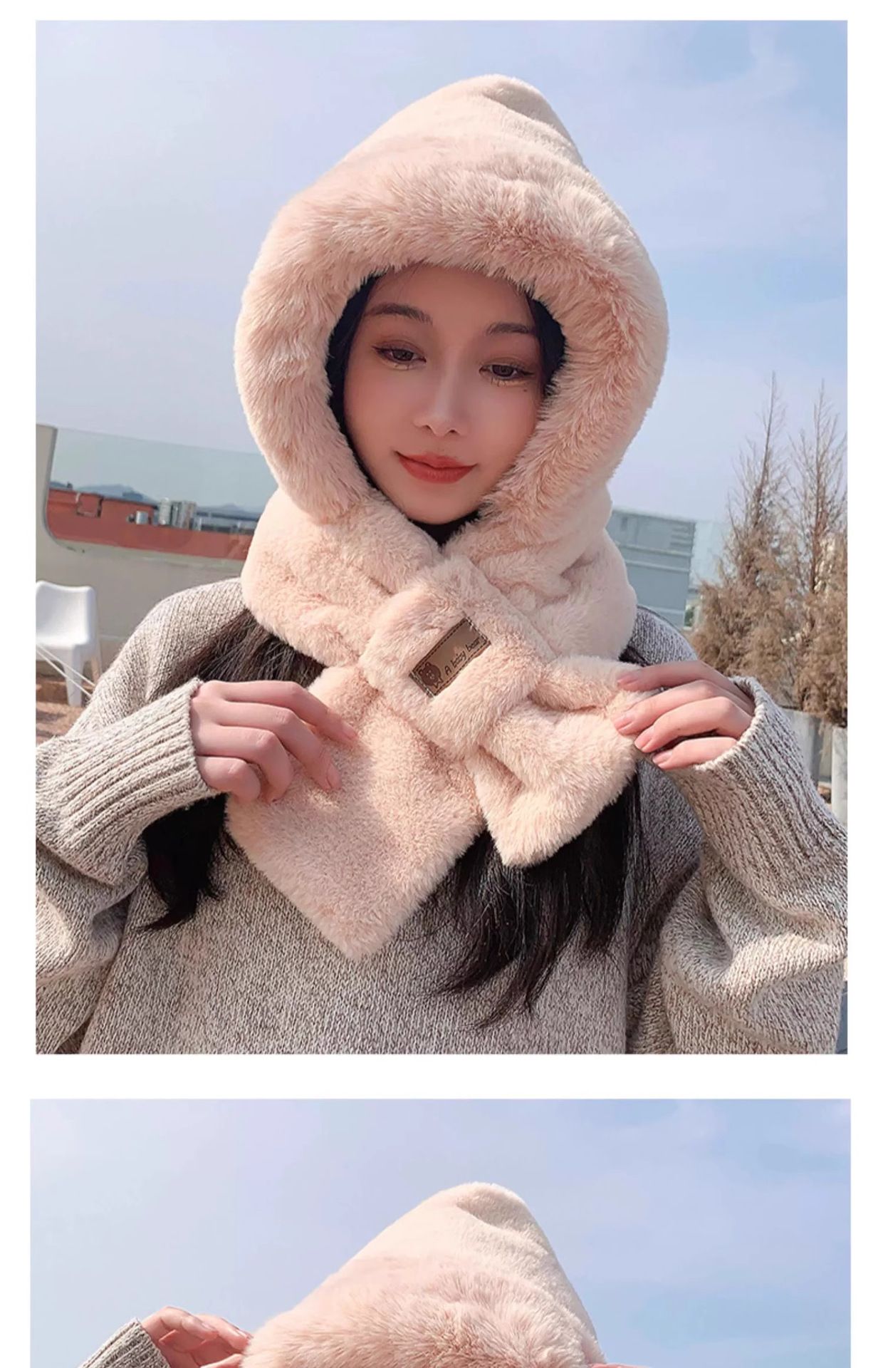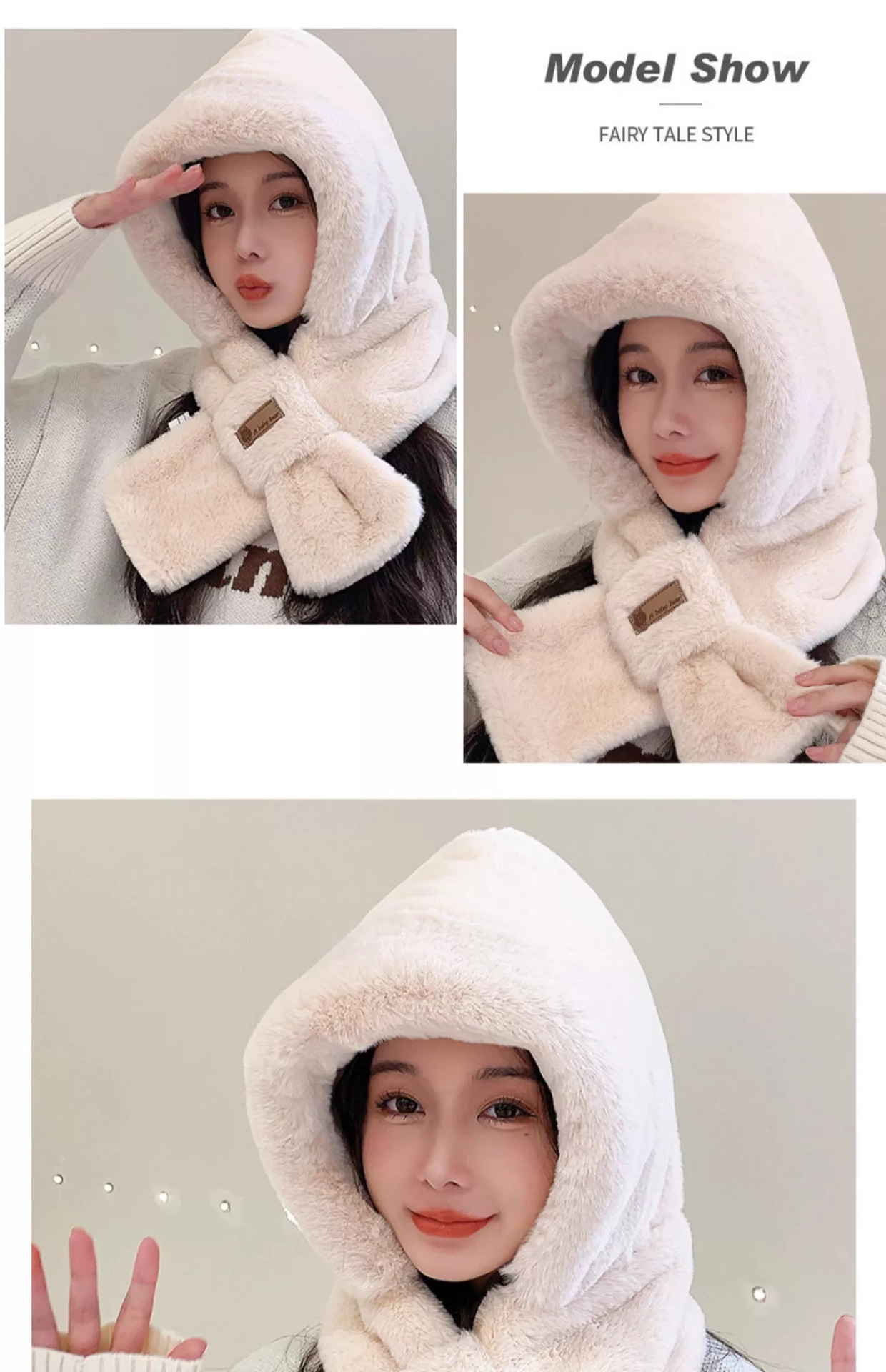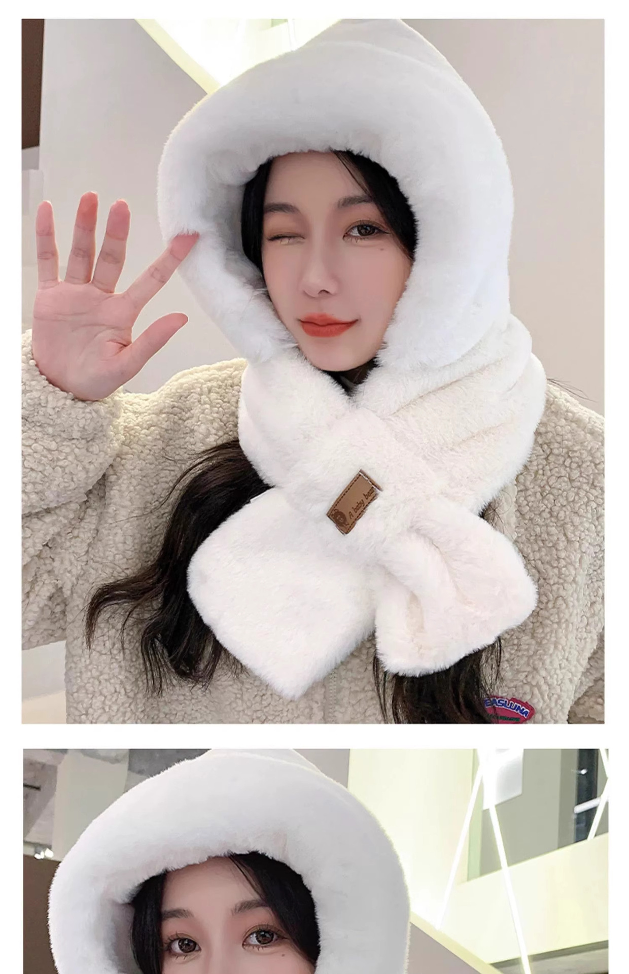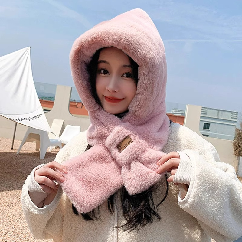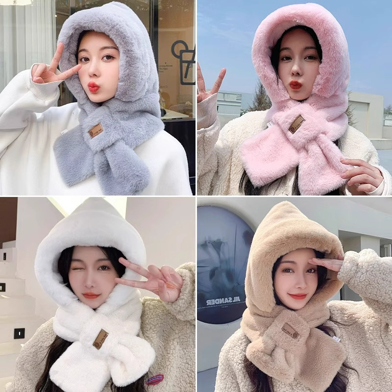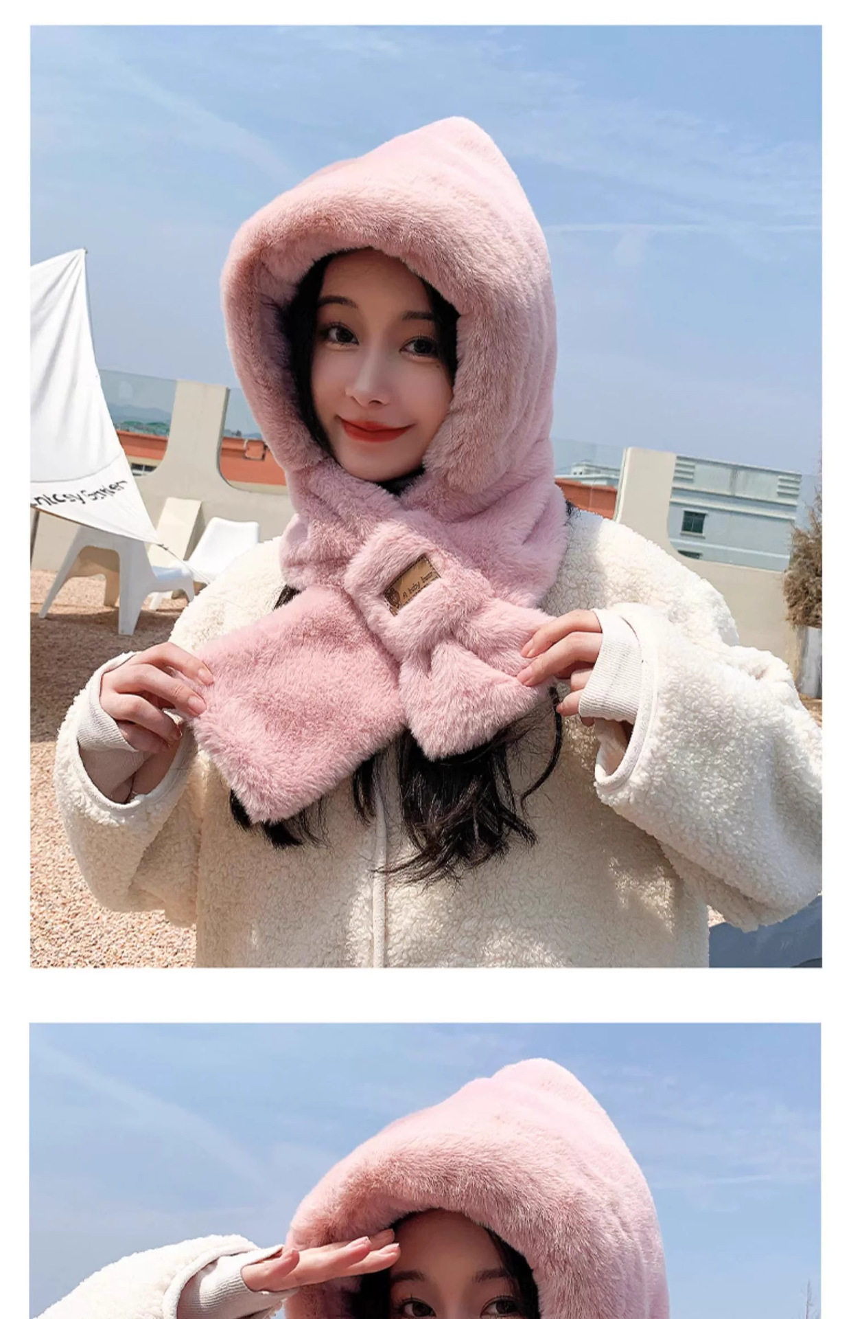 帽子女秋冬季围巾一体保暖毛绒连帽围脖一体骑车防风帽2025新款冬
