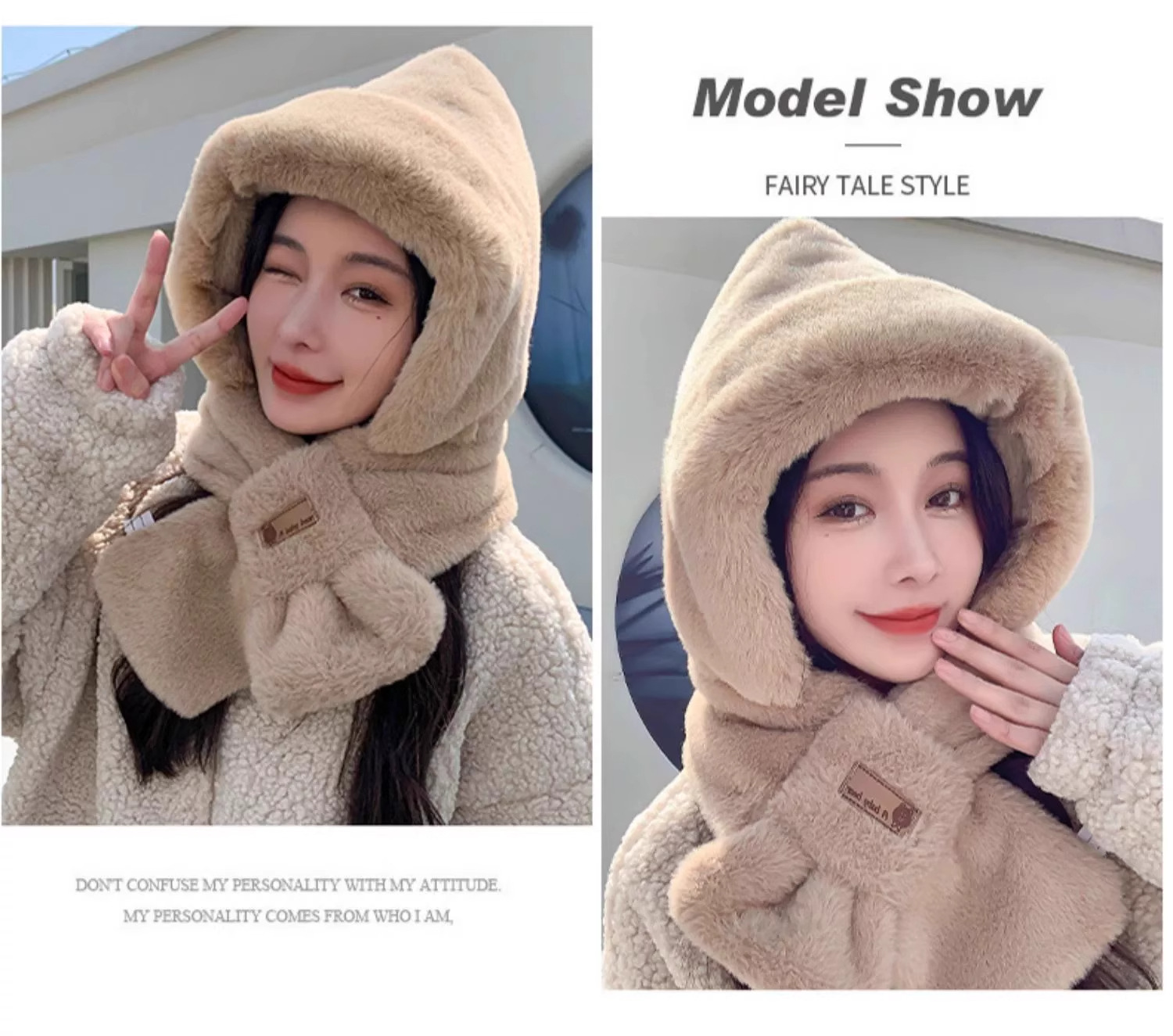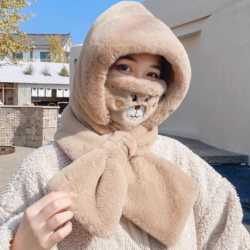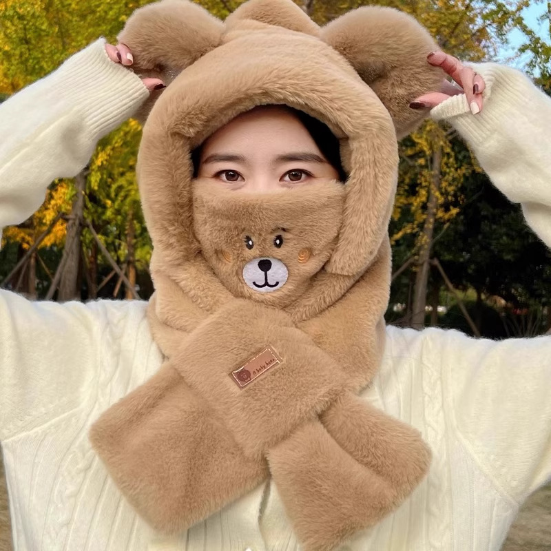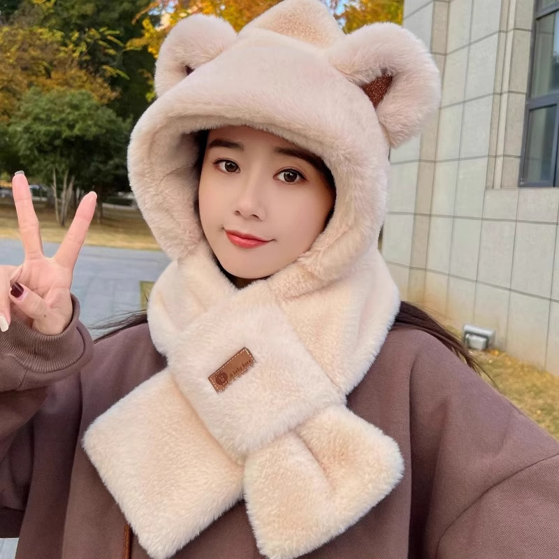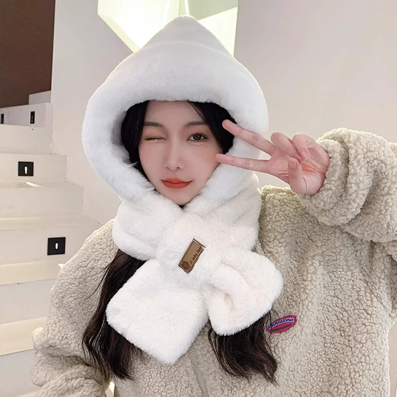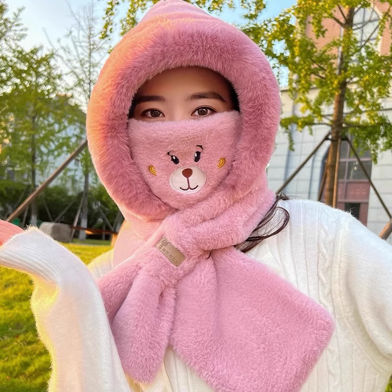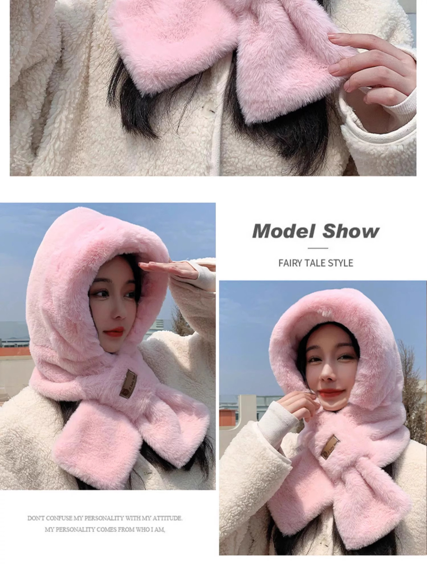 帽子女秋冬季围巾一体保暖毛绒连帽围脖一体骑车防风帽2025新款冬