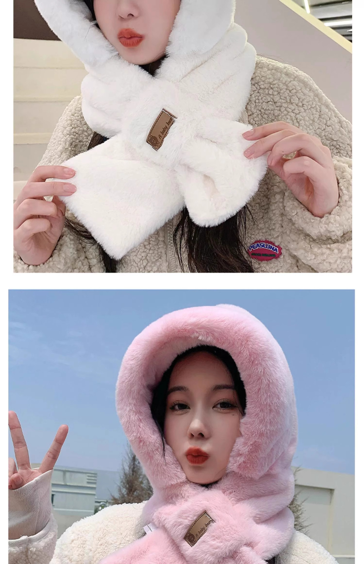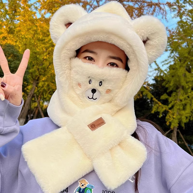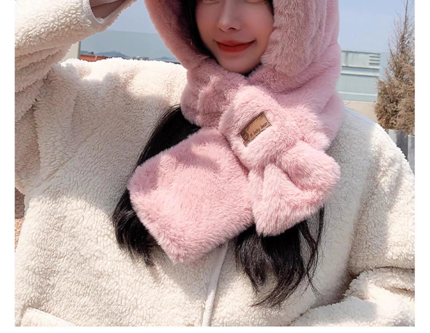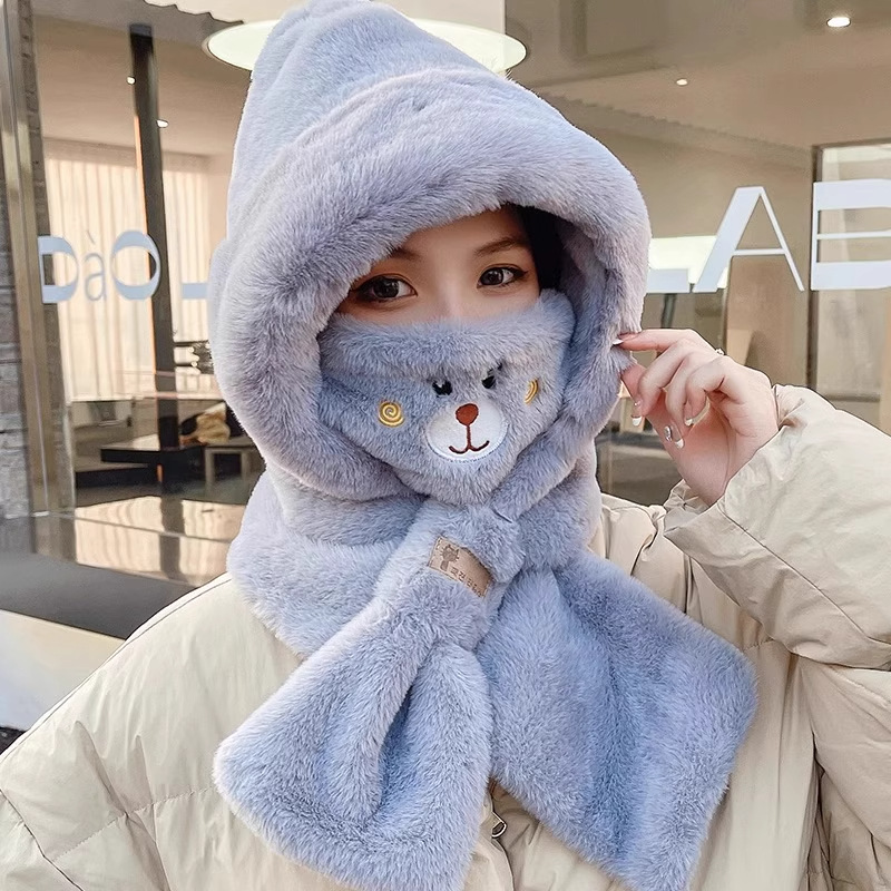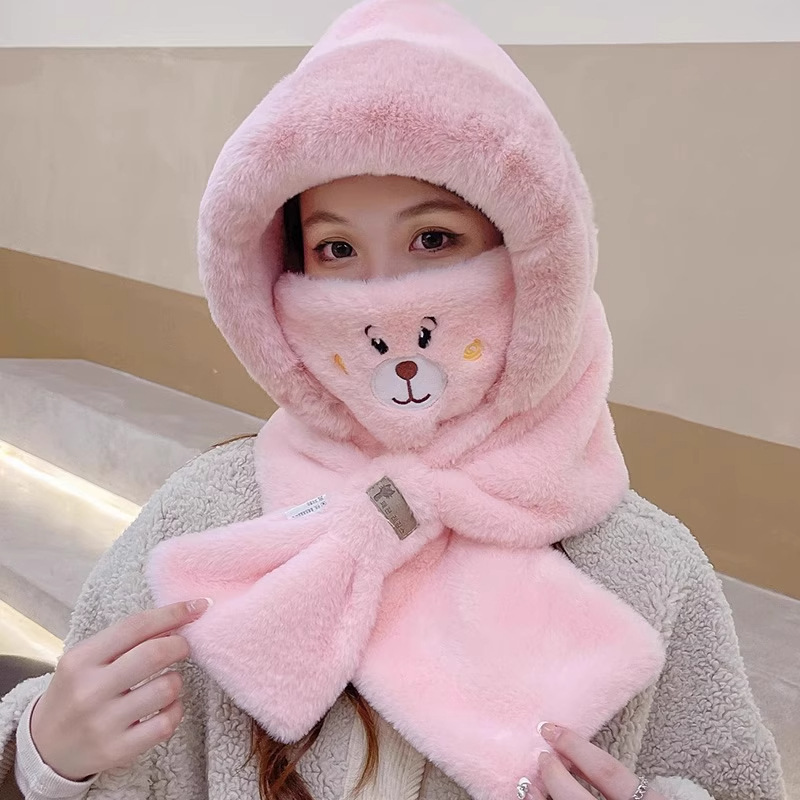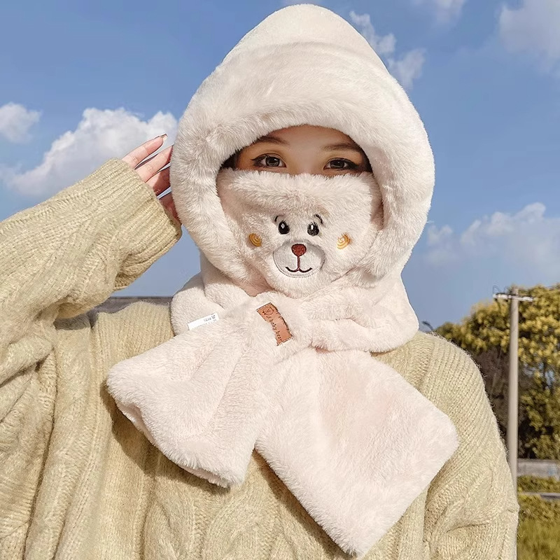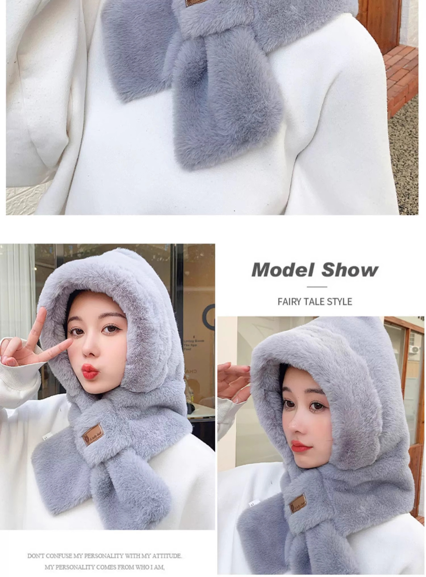 帽子女秋冬季围巾一体保暖毛绒连帽围脖一体骑车防风帽2025新款冬