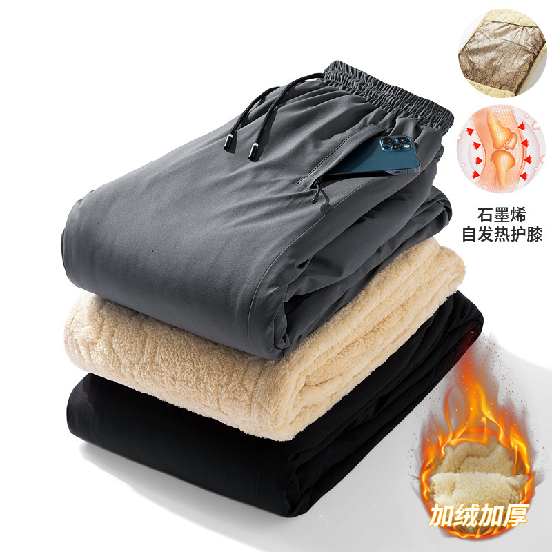 羊羔绒棉裤男加绒加厚休闲长裤中老人保暖裤直筒跨境大码冬装男裤