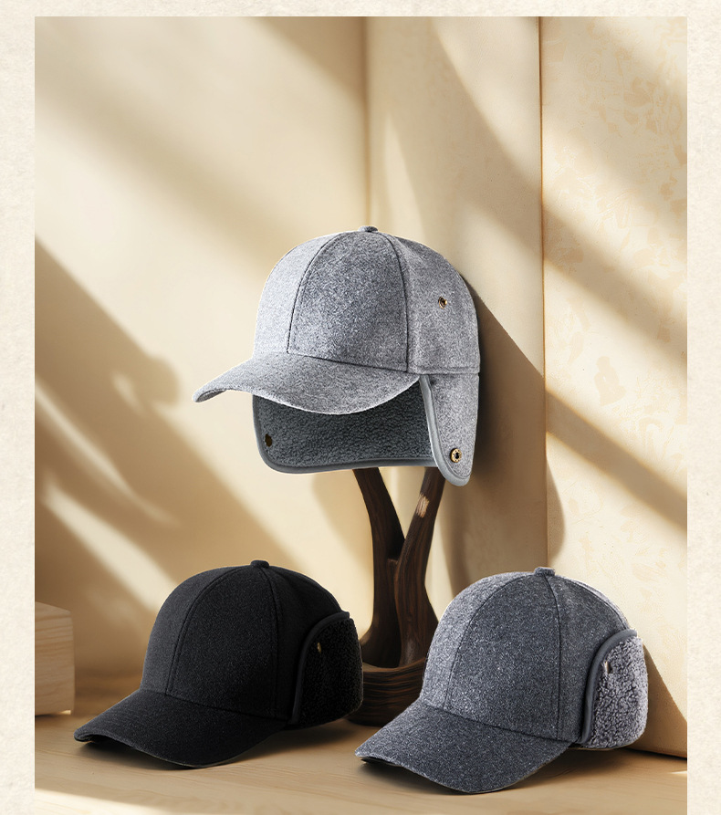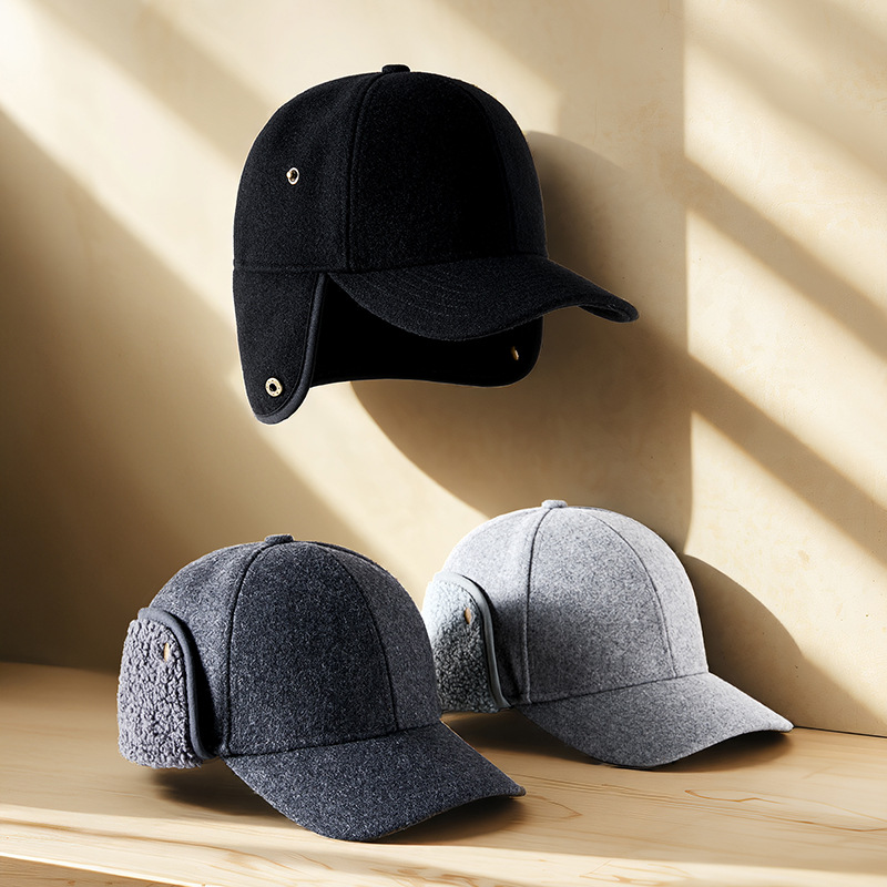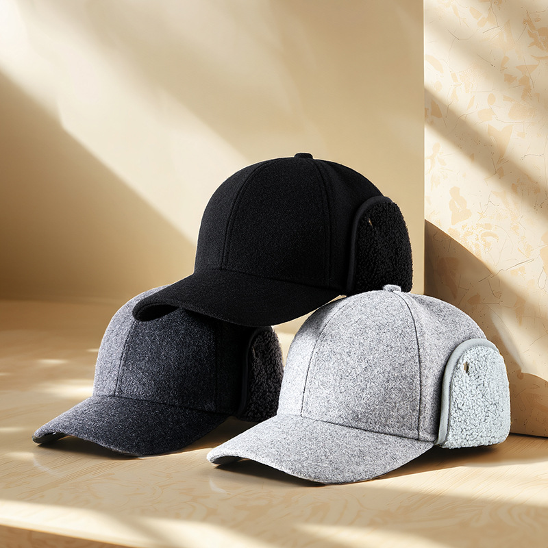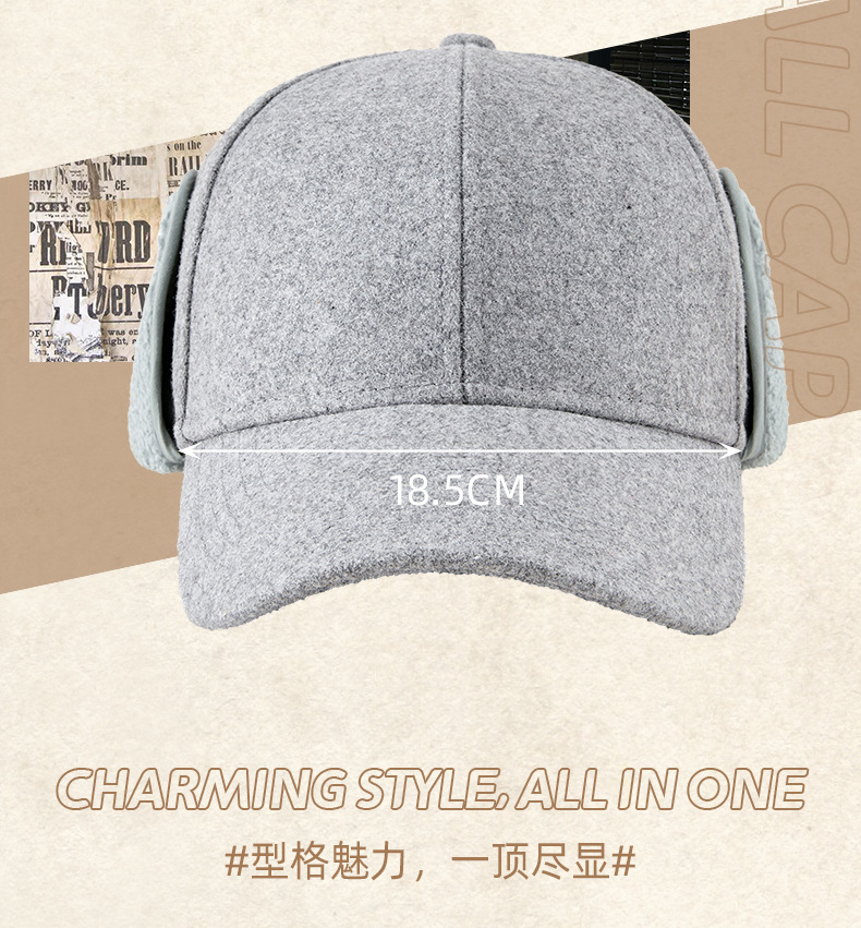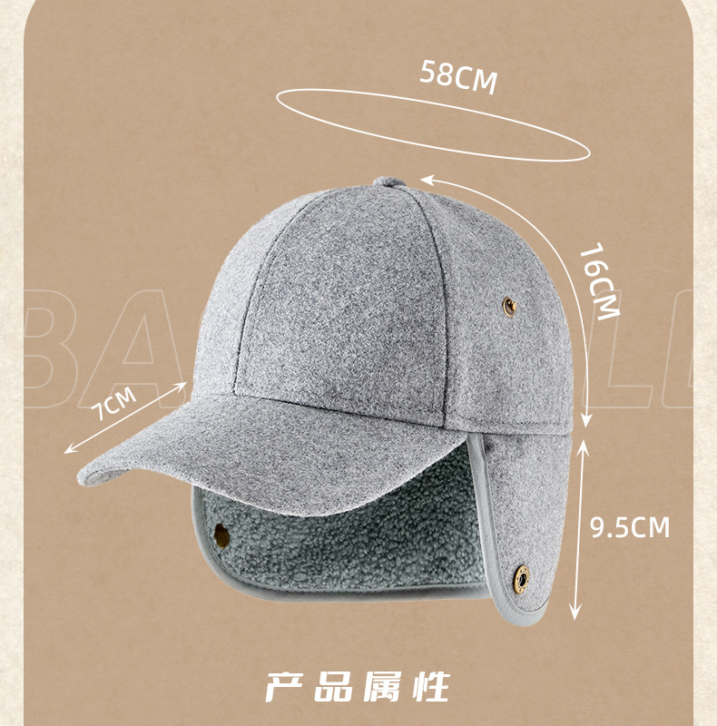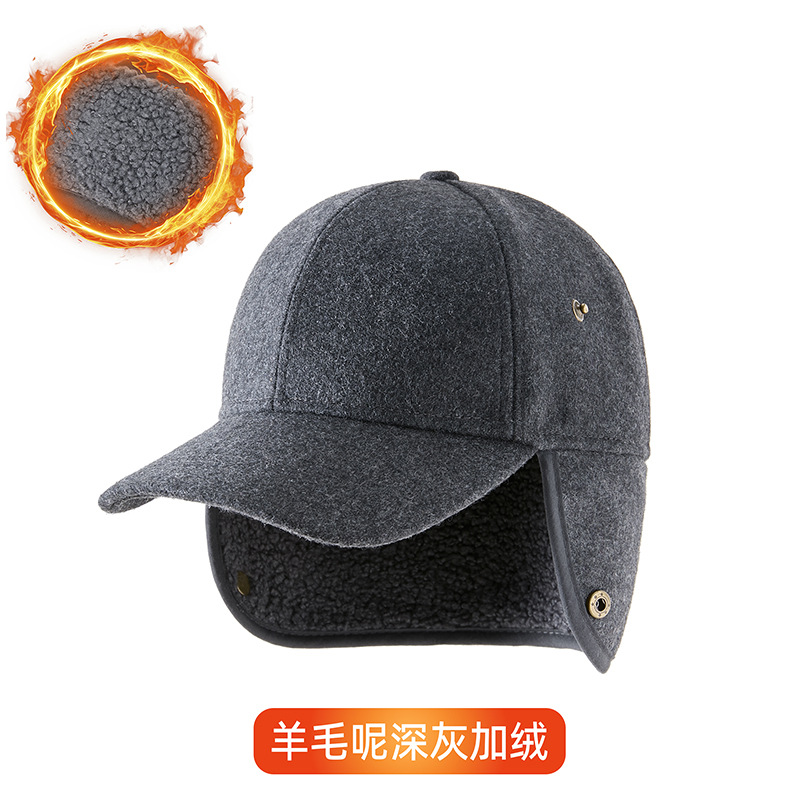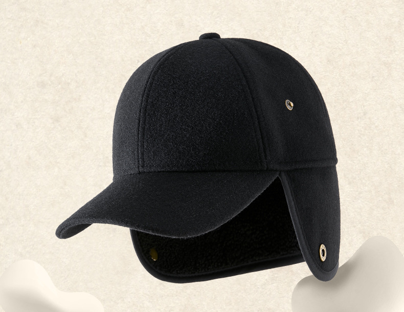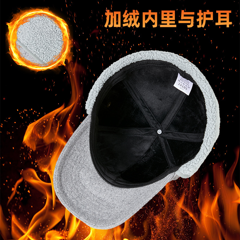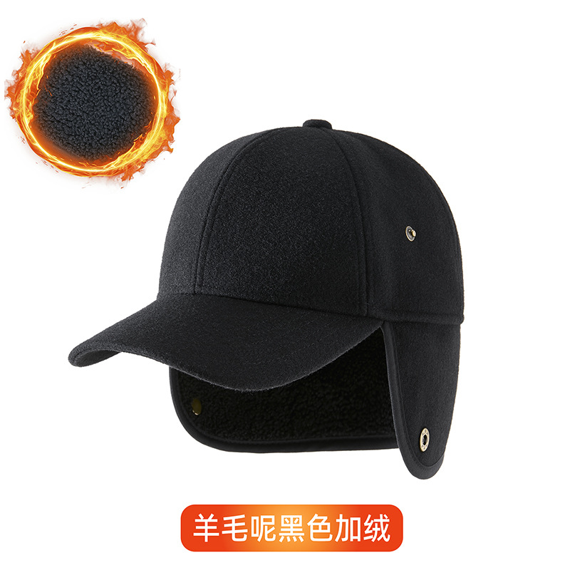 秋冬男士保暖棒球帽中老年防风雪护耳帽子大头围羊毛呢护耳鸭舌帽