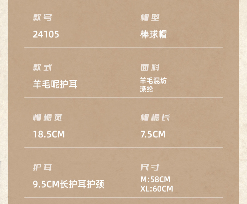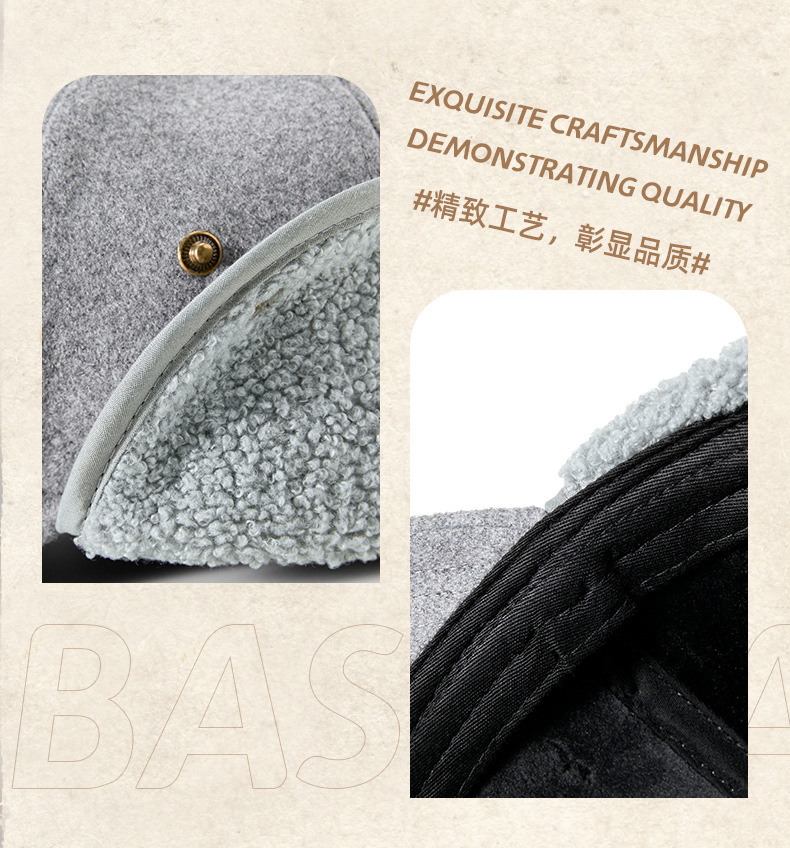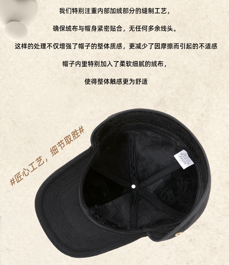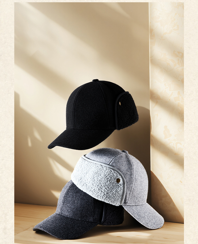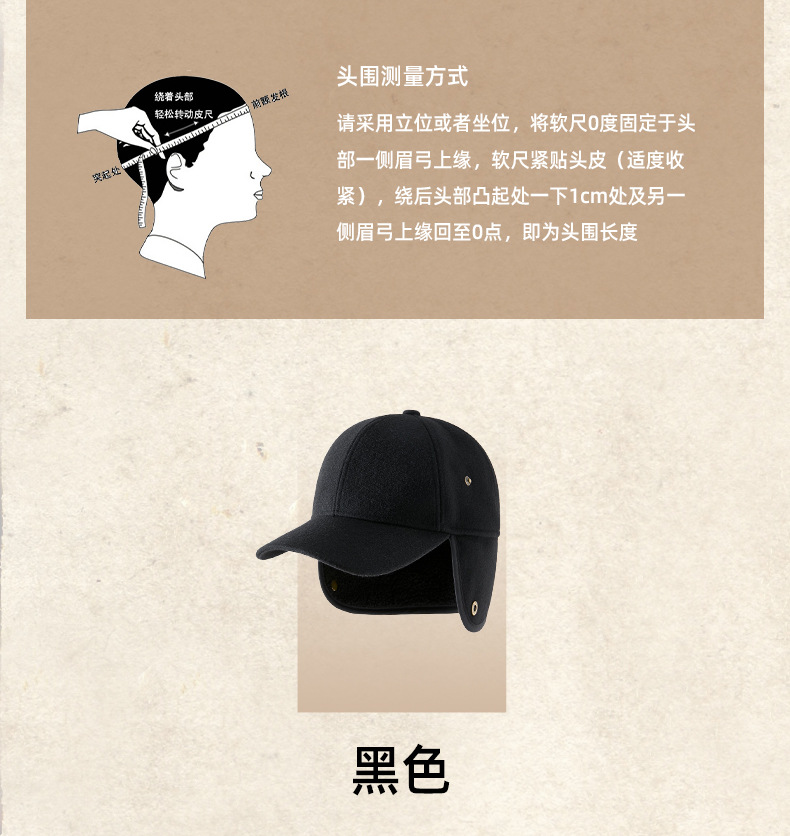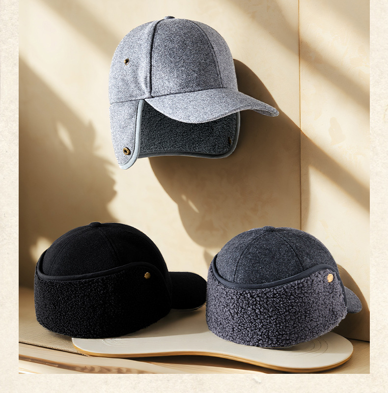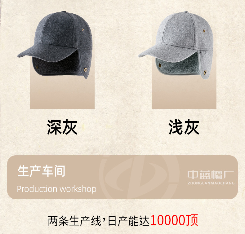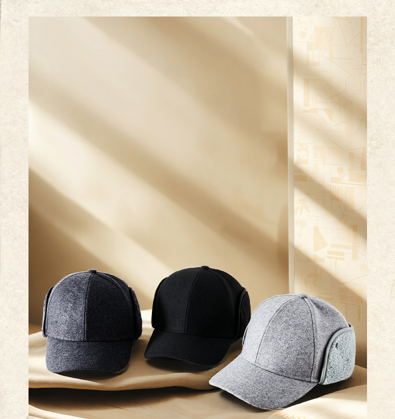 秋冬男士保暖棒球帽中老年防风雪护耳帽子大头围羊毛呢护耳鸭舌帽