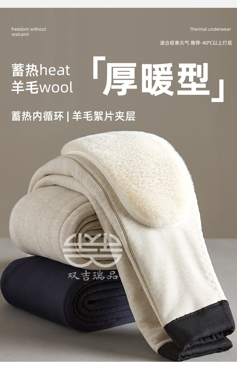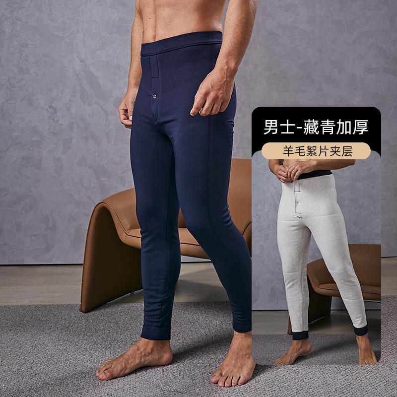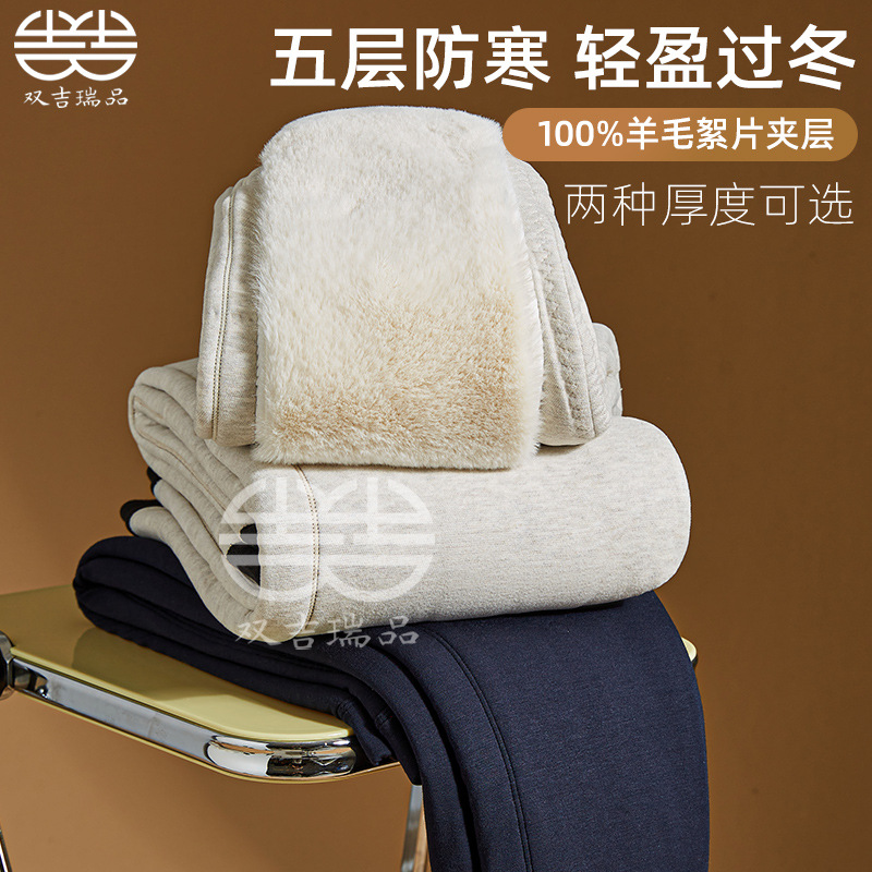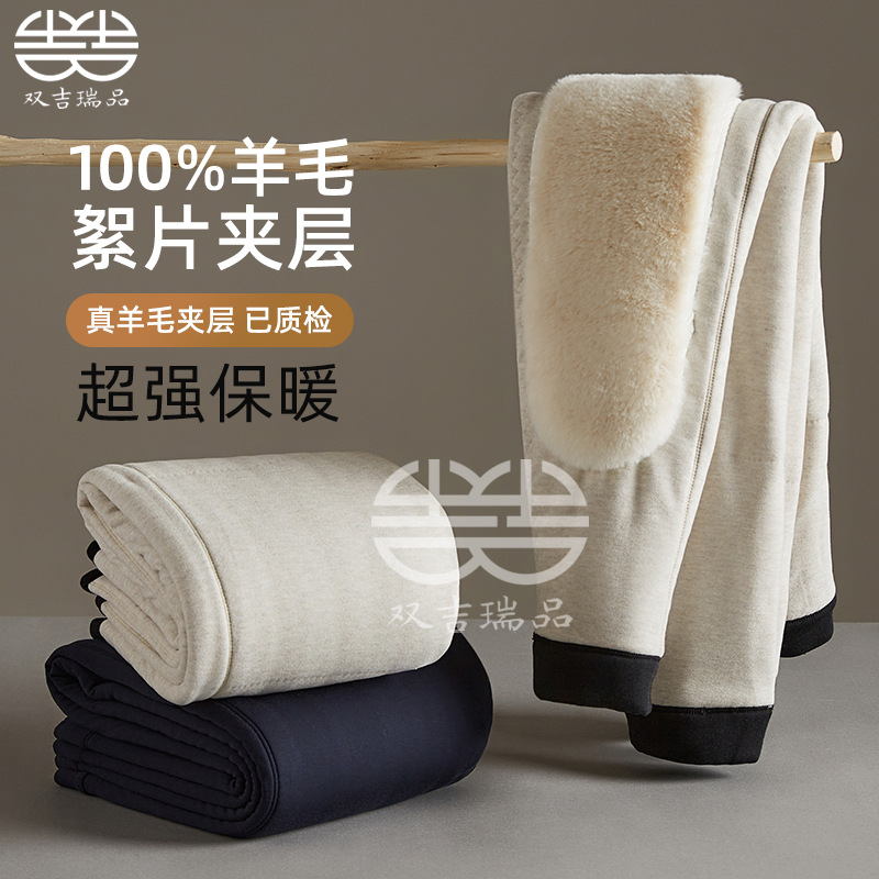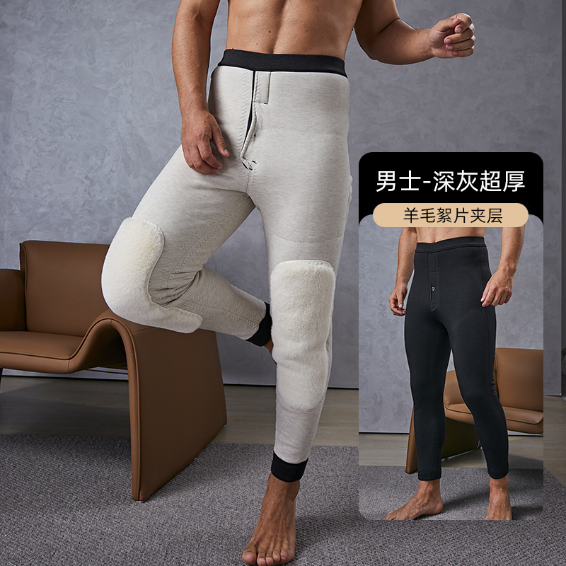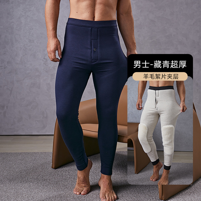 羊毛保暖裤男士羊绒裤加绒高弹保暖裤东北防寒中老年冬季打底棉裤