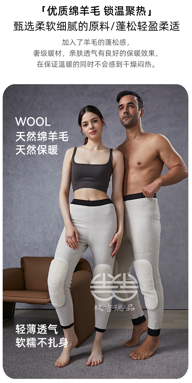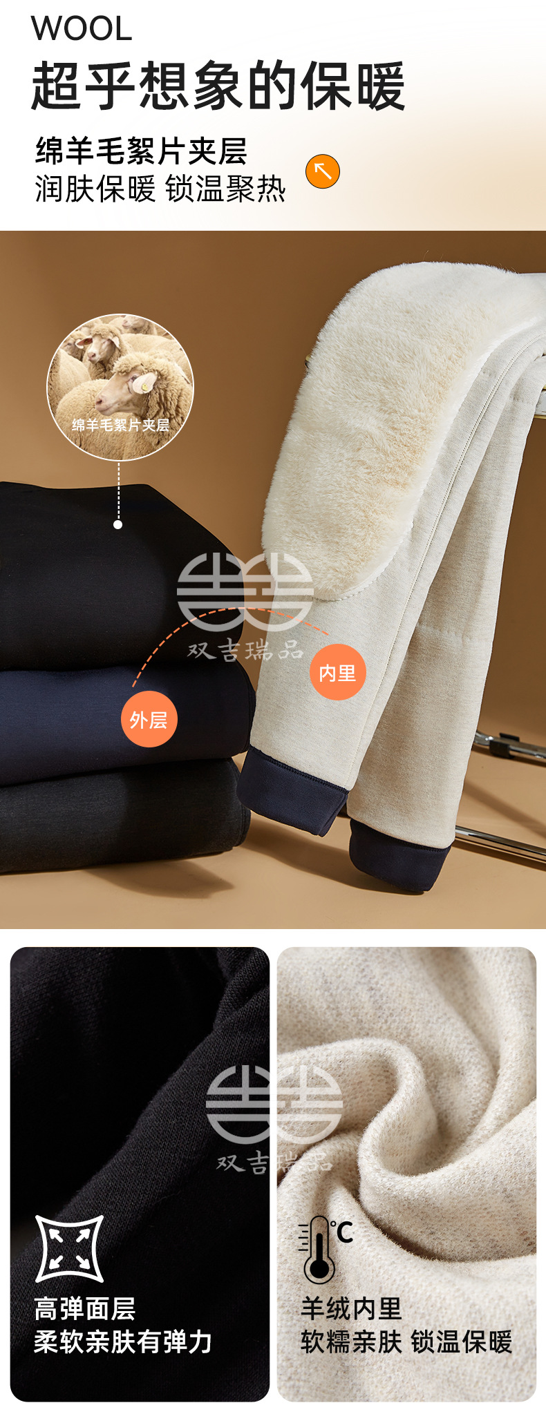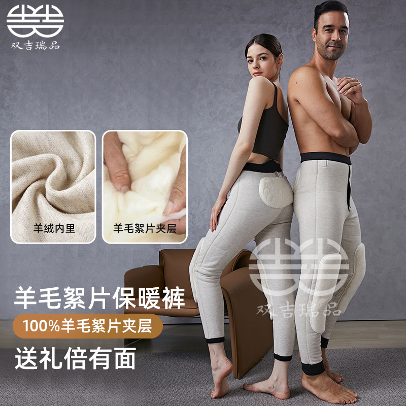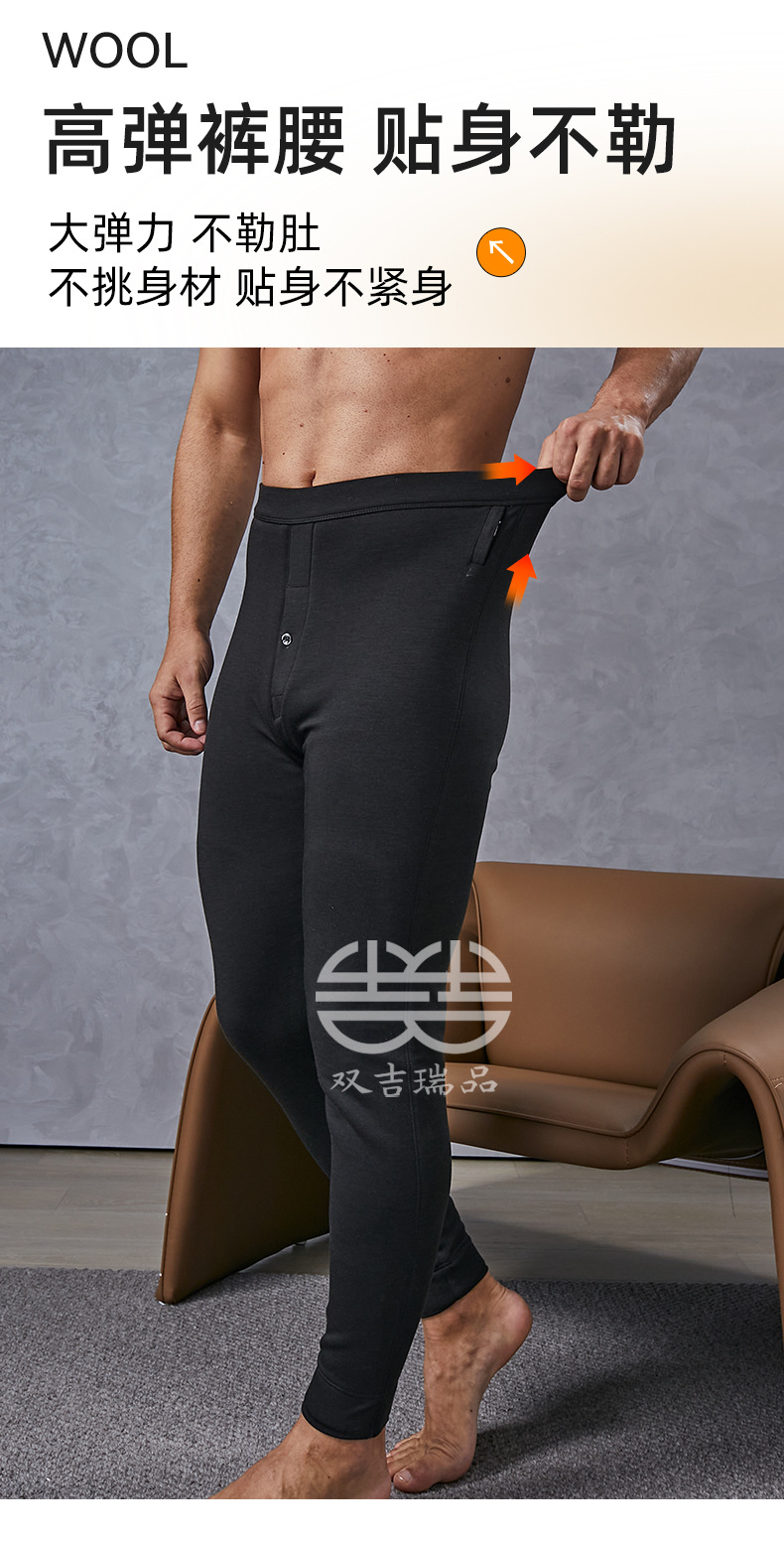 羊毛保暖裤男士羊绒裤加绒高弹保暖裤东北防寒中老年冬季打底棉裤