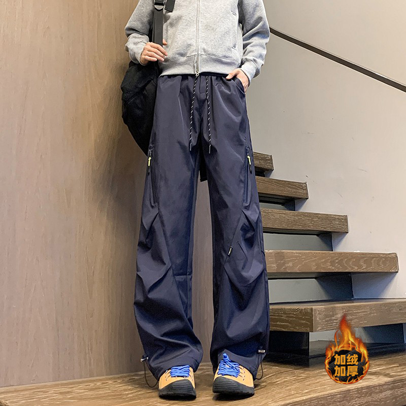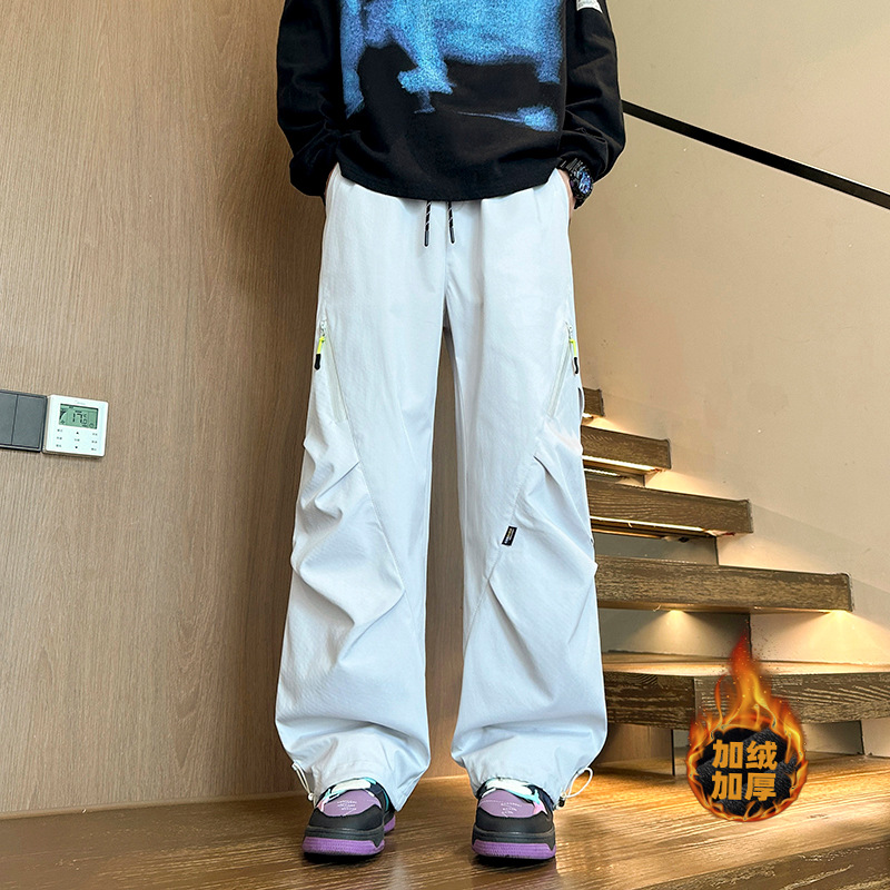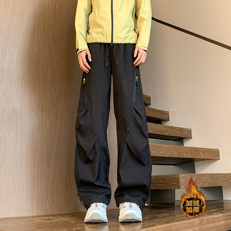 加绒裤子男款冬季工装裤男女潮流三防冲锋裤宽松大码百搭显瘦休闲