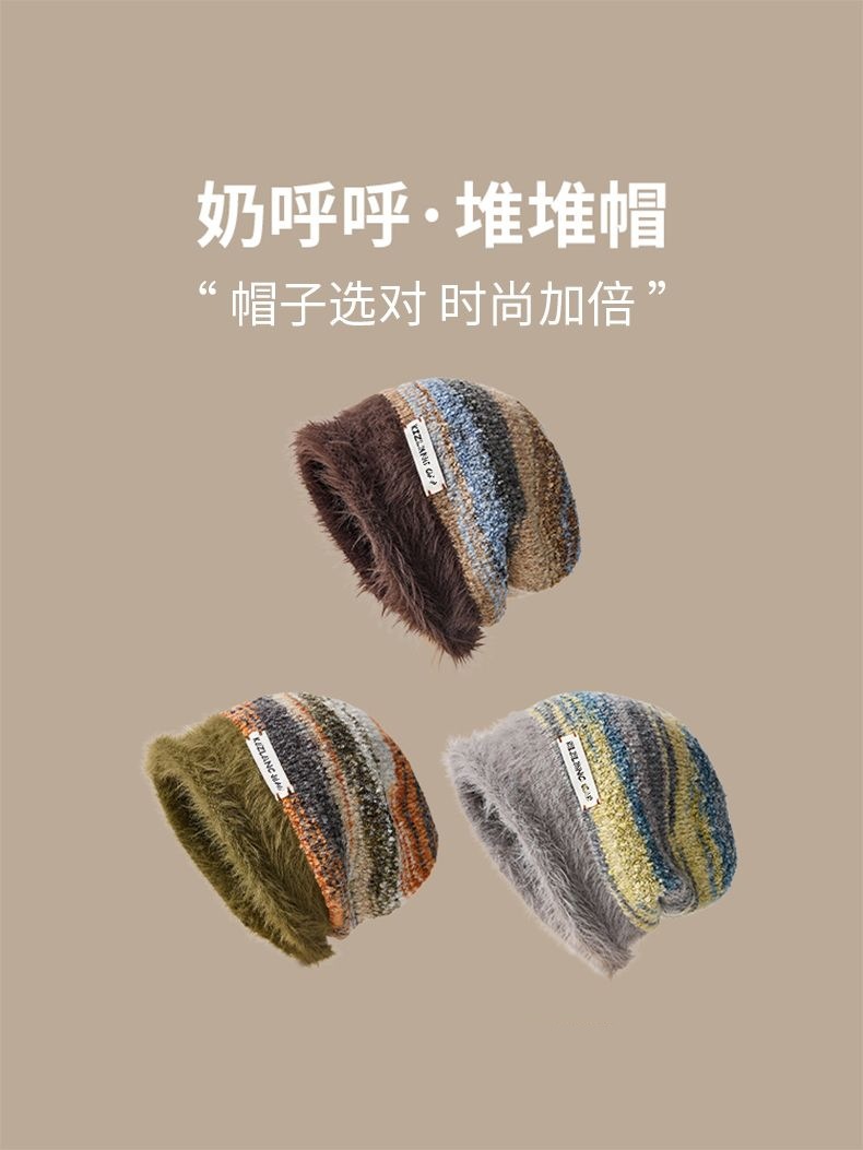 堆堆帽子女秋冬季大头围显脸小时尚洋气美拉德包头针织冷帽月子帽