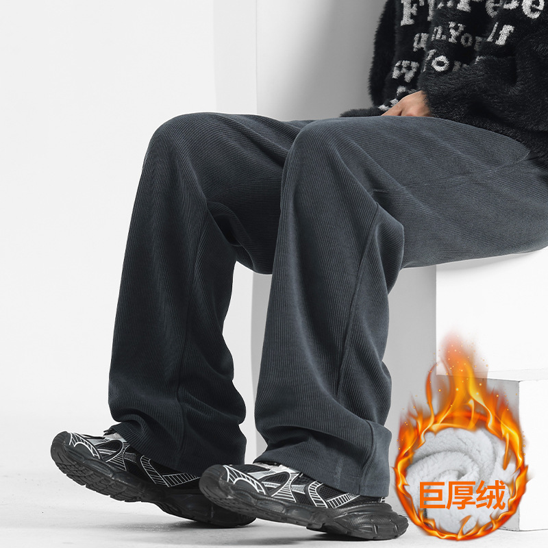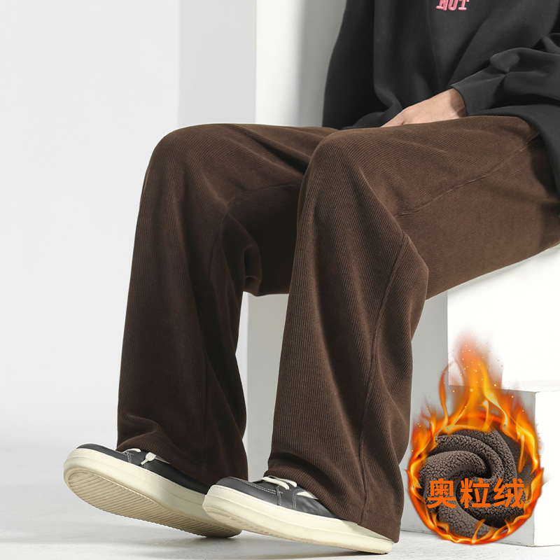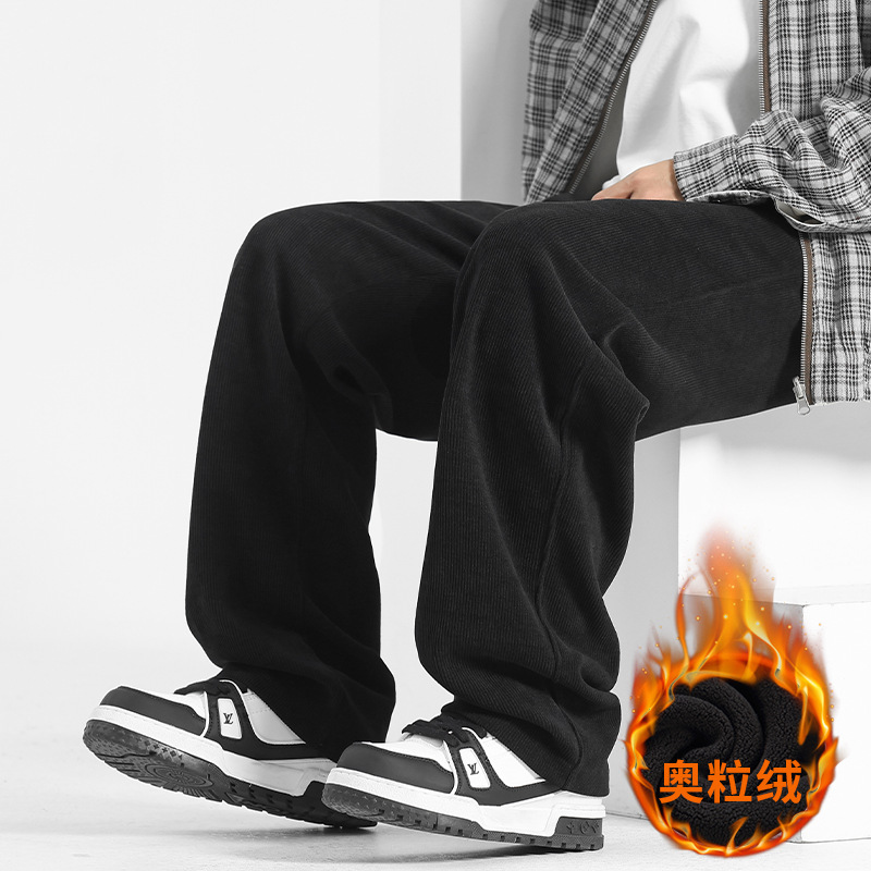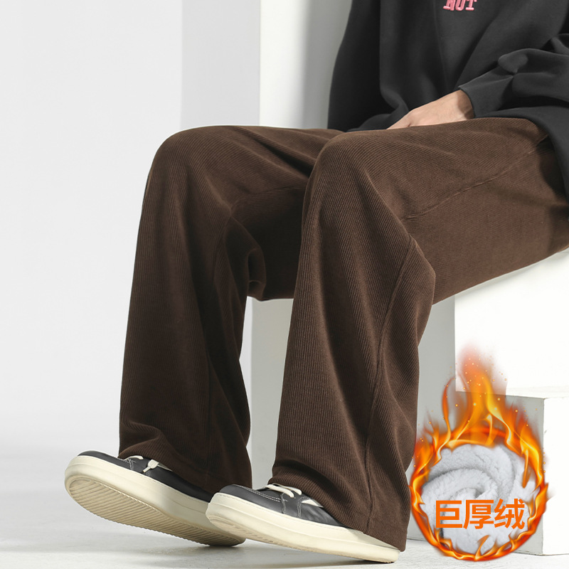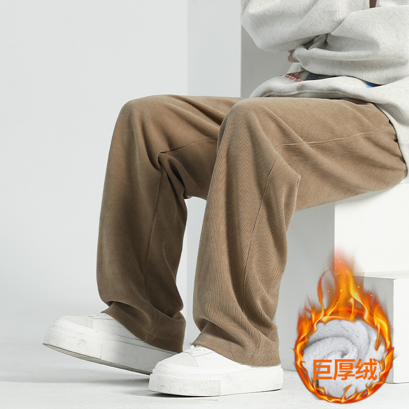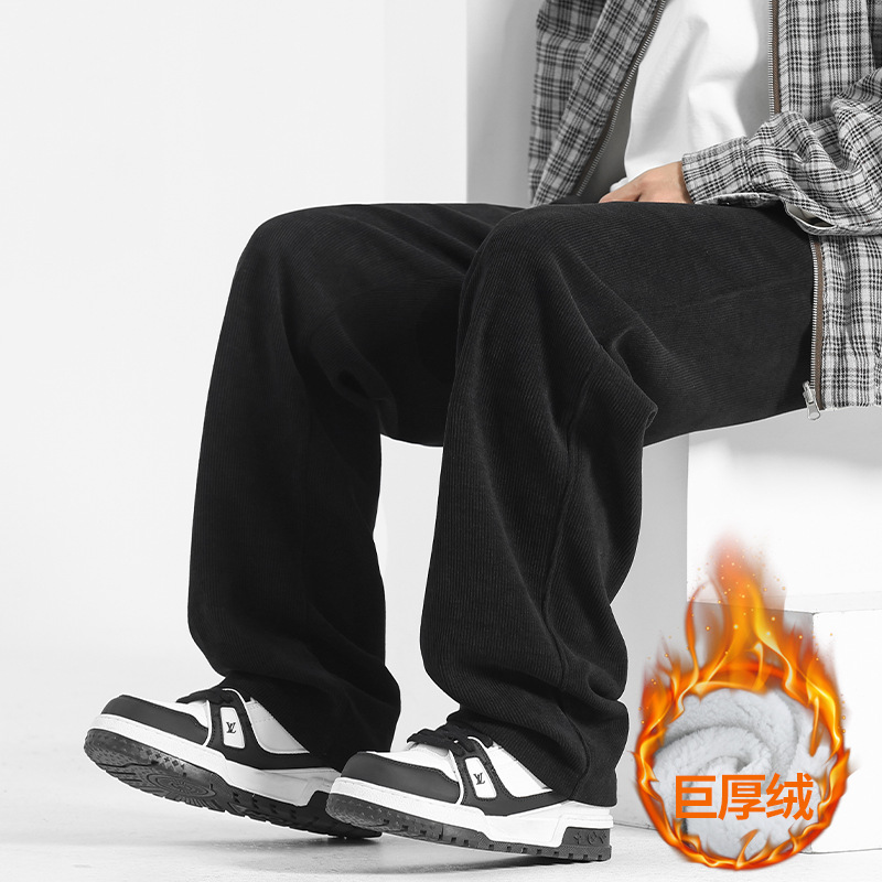 裤子男冬季2025加绒灯芯绒男裤直筒休闲裤秋冬男士运动裤阔腿卫裤