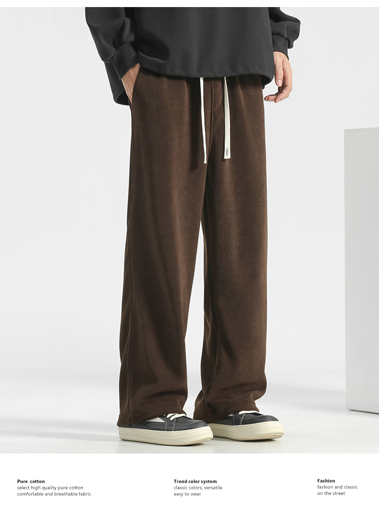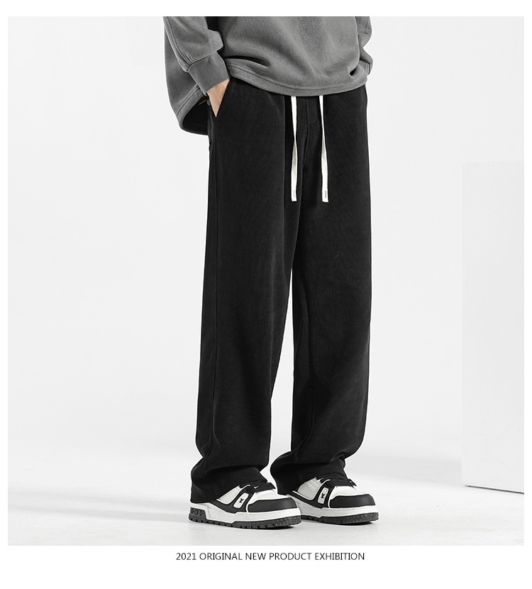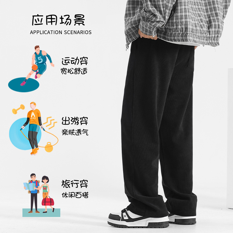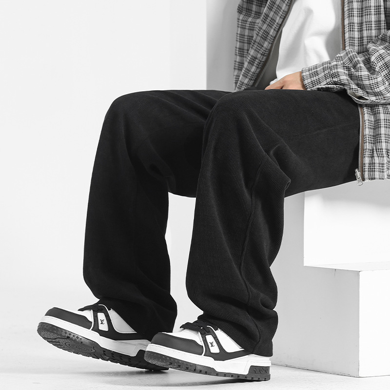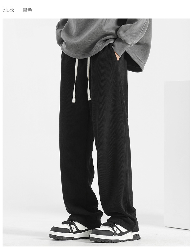 裤子男冬季2025加绒灯芯绒男裤直筒休闲裤秋冬男士运动裤阔腿卫裤