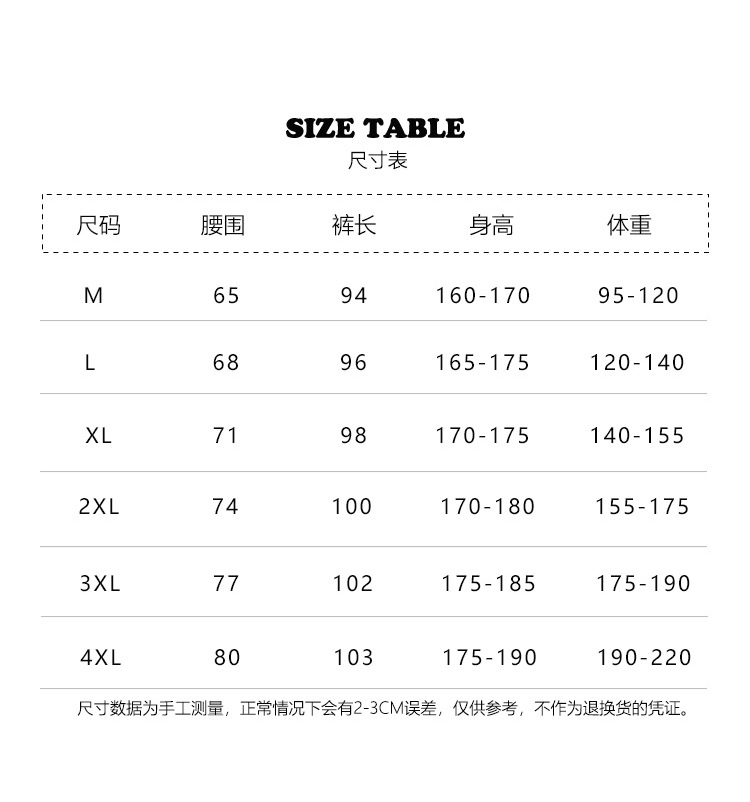 | 4XL(190-220)斤 | USD $15.92 | 997 piece available |