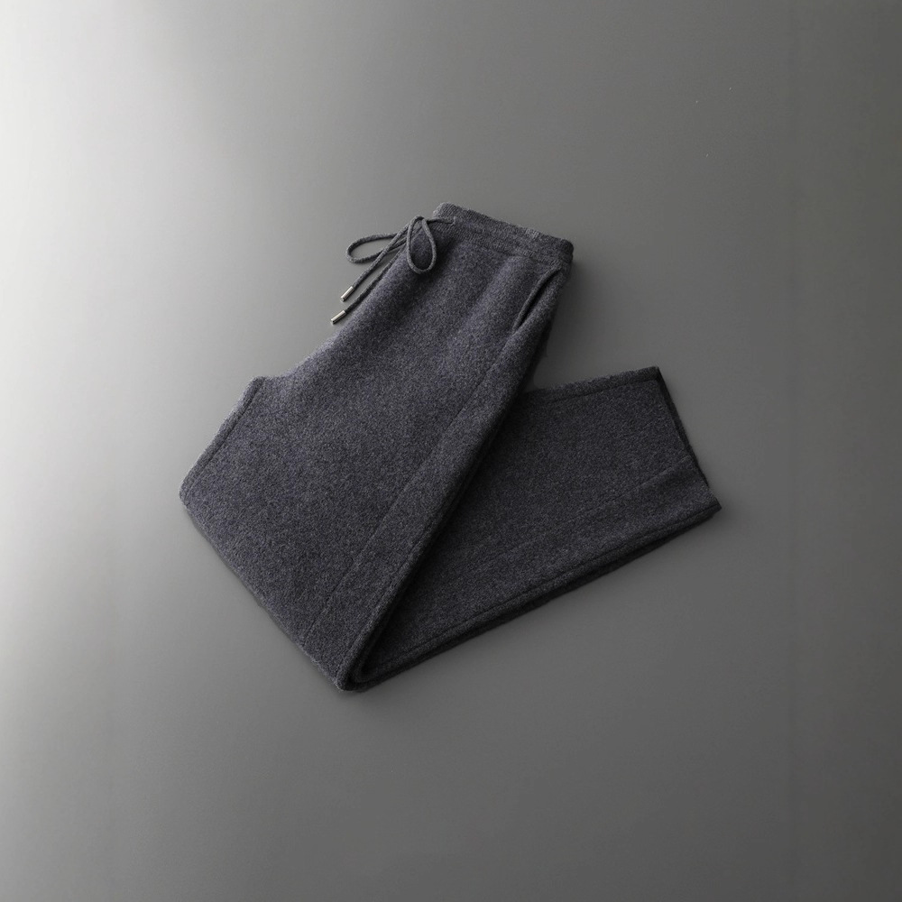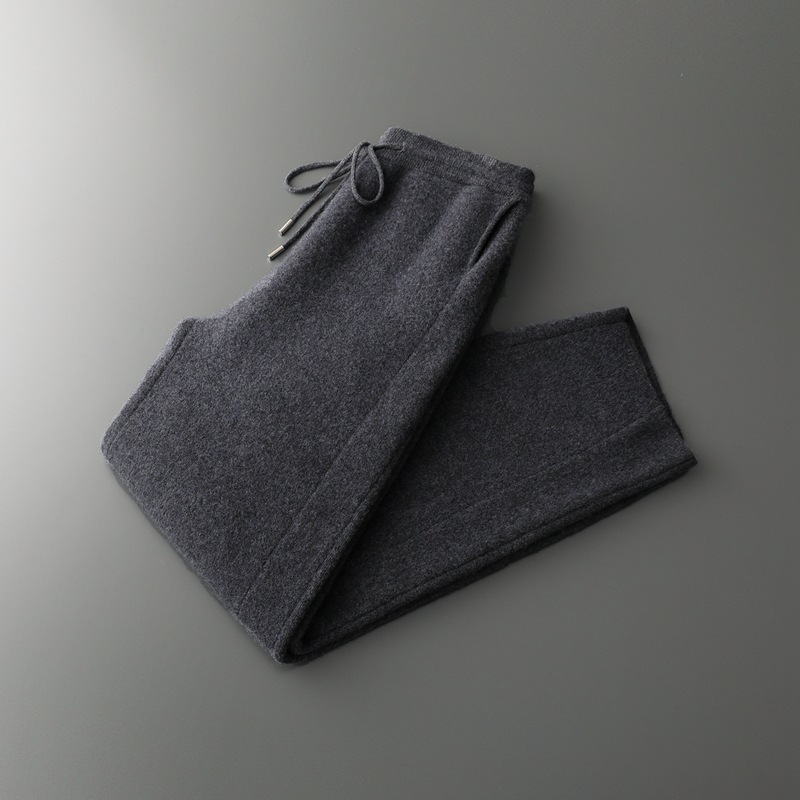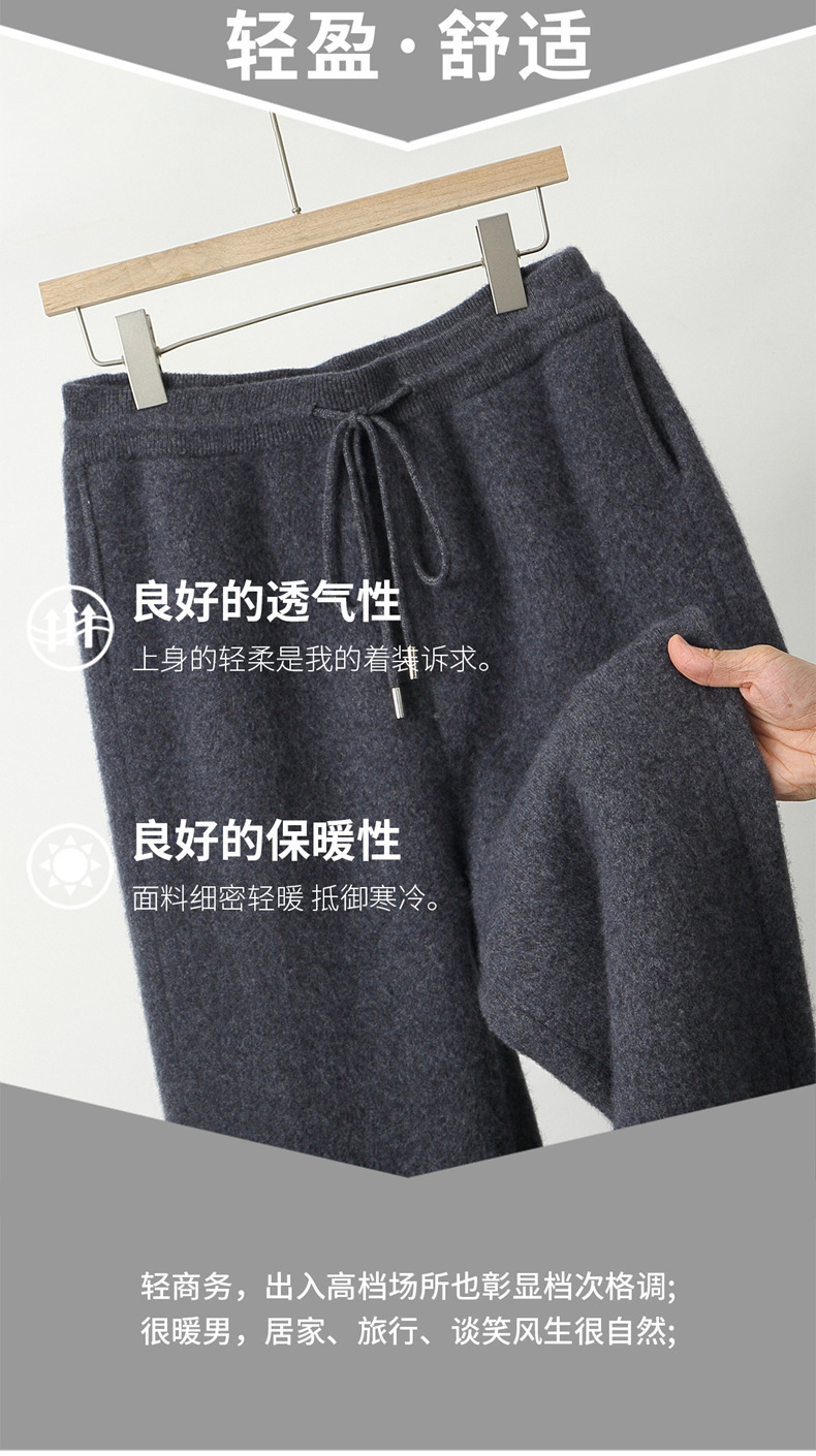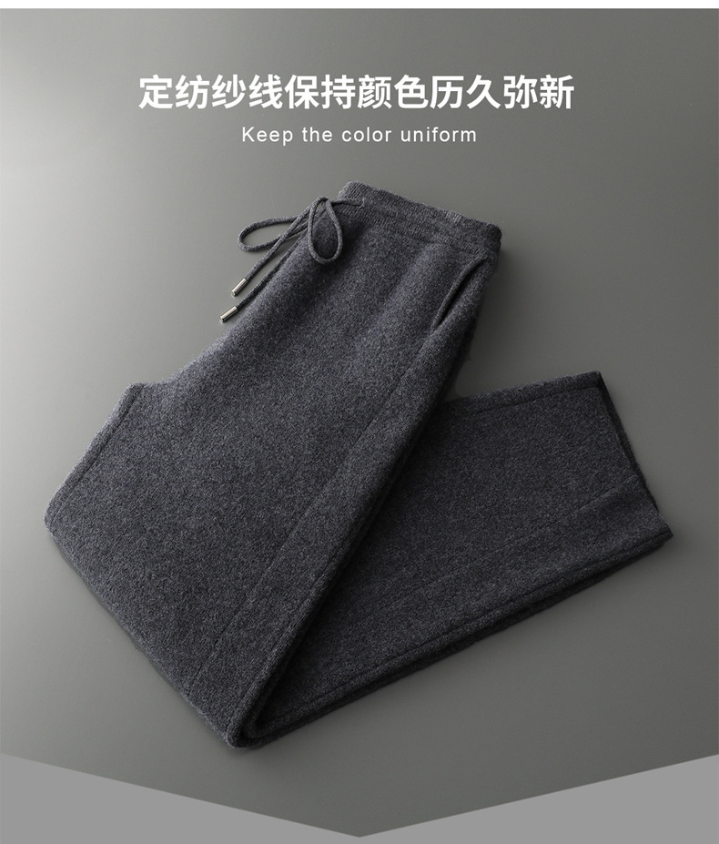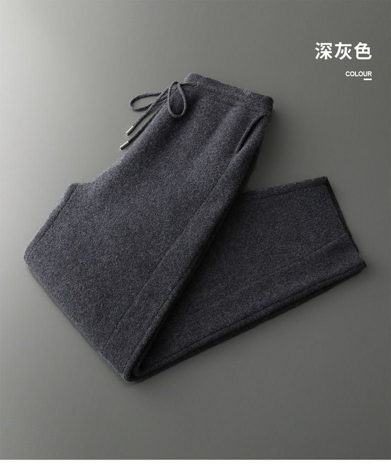新款长裤100%纯羊毛裤男士四平加厚松紧腰耐磨保暖休闲小脚裤外穿