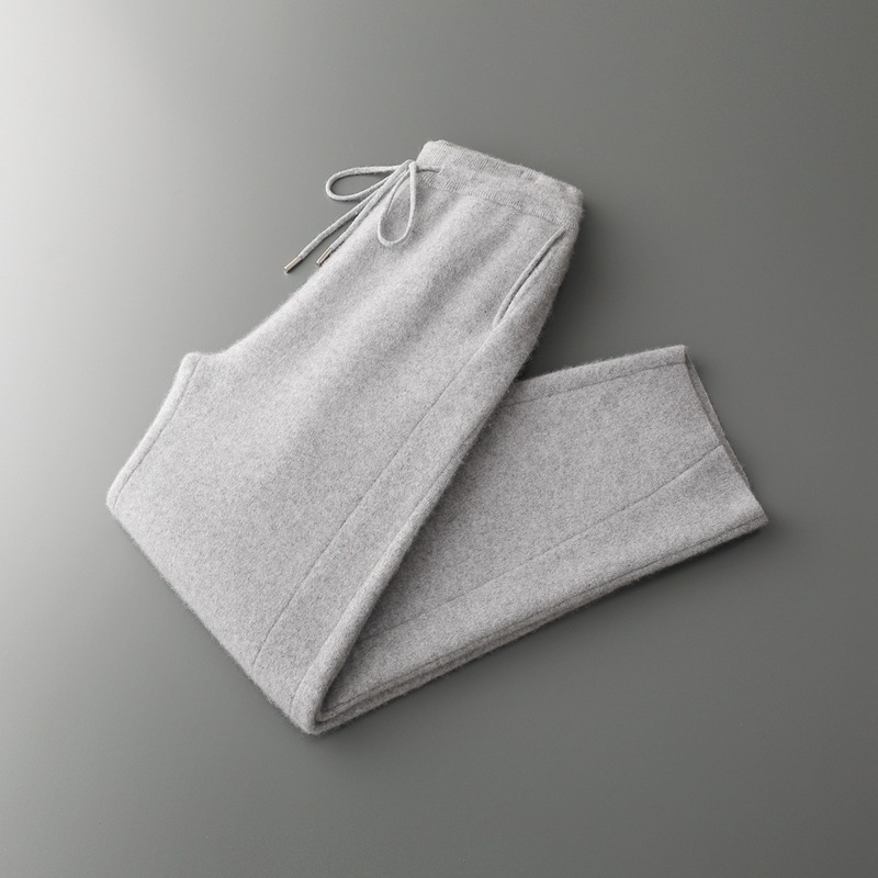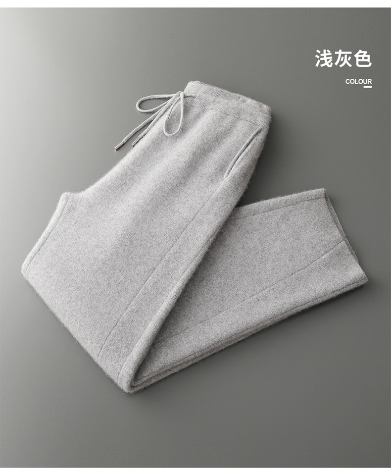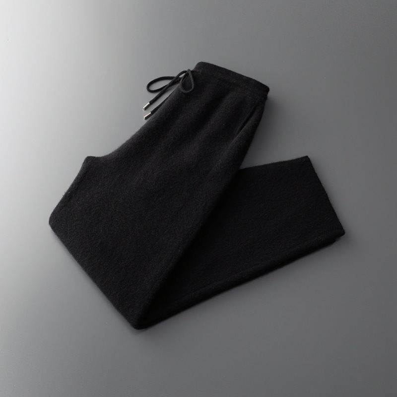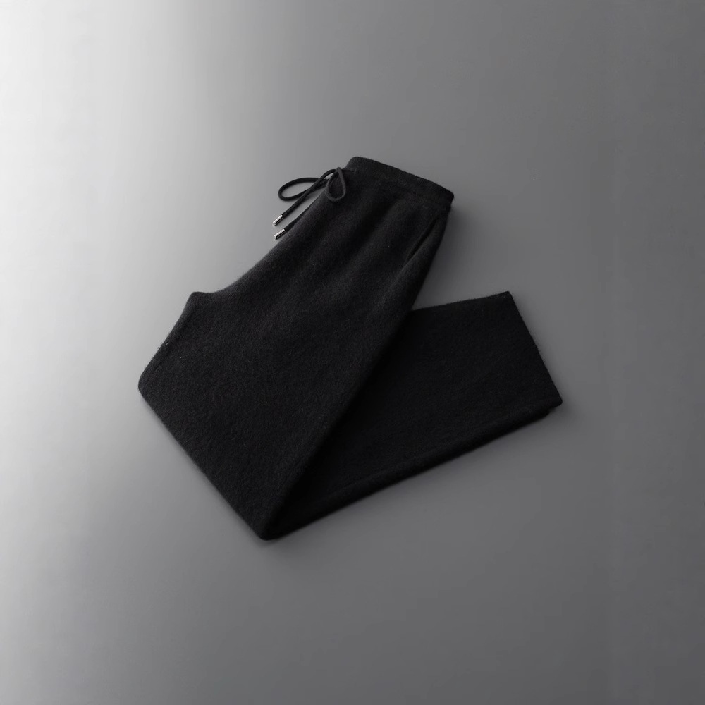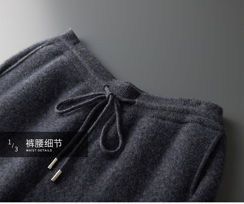 新款长裤100%纯羊毛裤男士四平加厚松紧腰耐磨保暖休闲小脚裤外穿