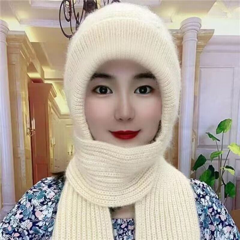 秋冬季保暖加绒加厚女士帽子围巾一体风雪帽毛线编织网红帽风雪帽