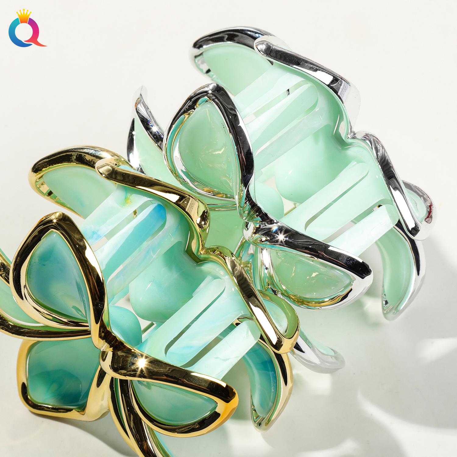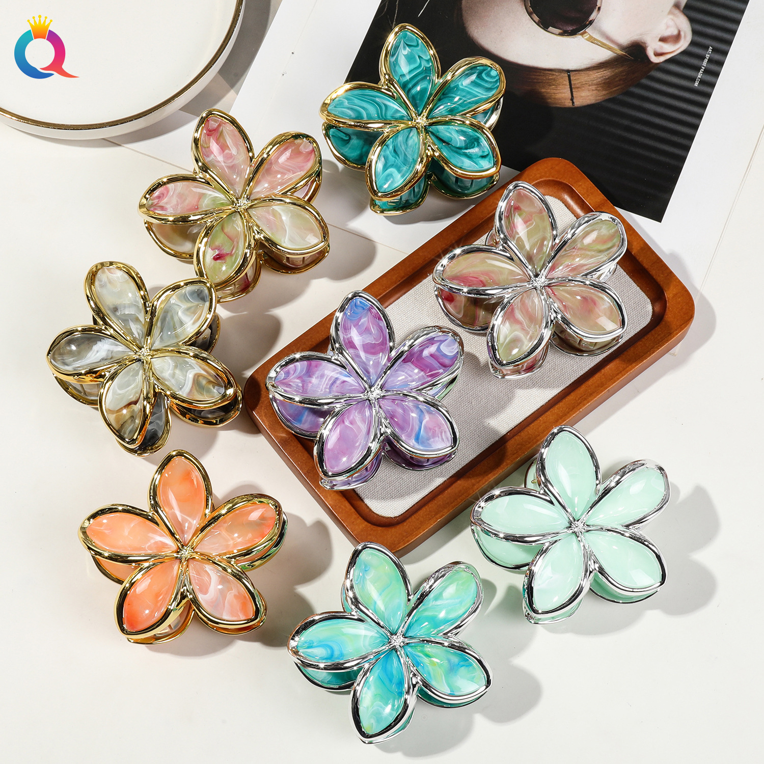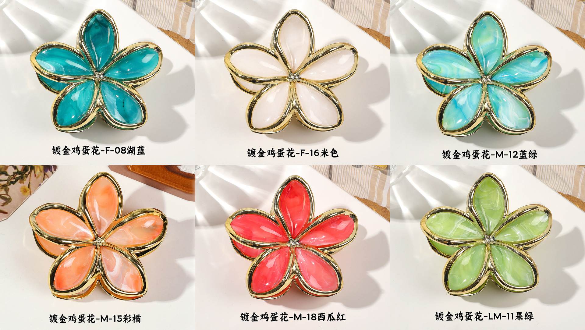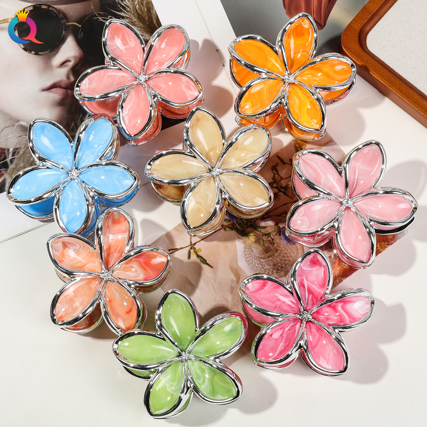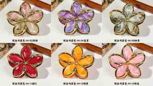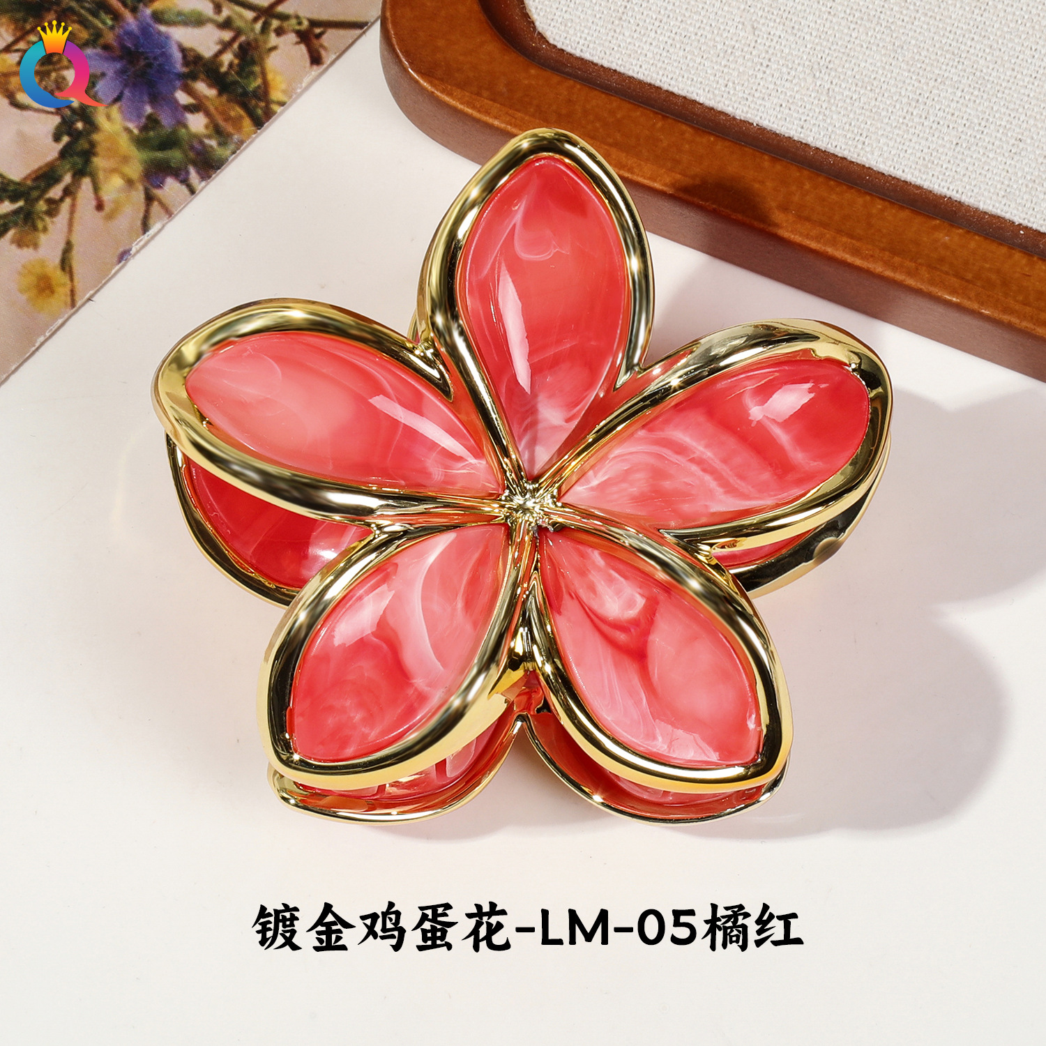 跨境新款ins8CM电镀鸡蛋花发夹女盘发抓夹鲨鱼夹
