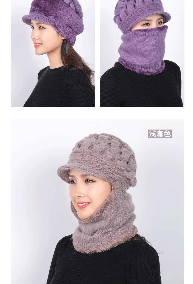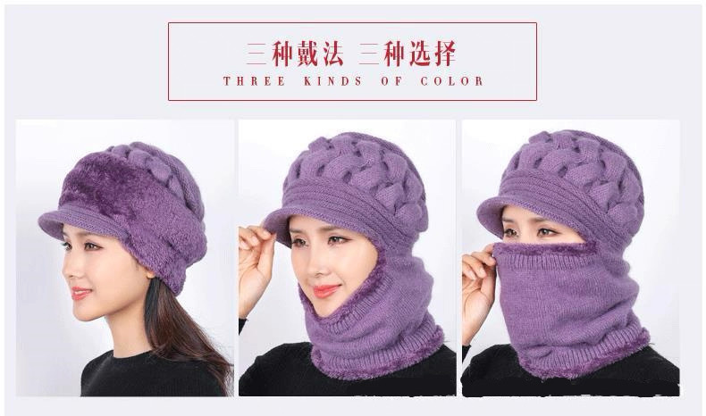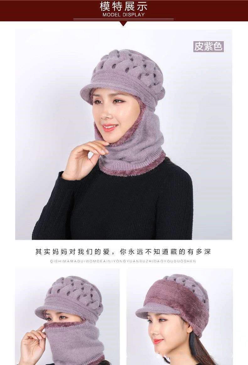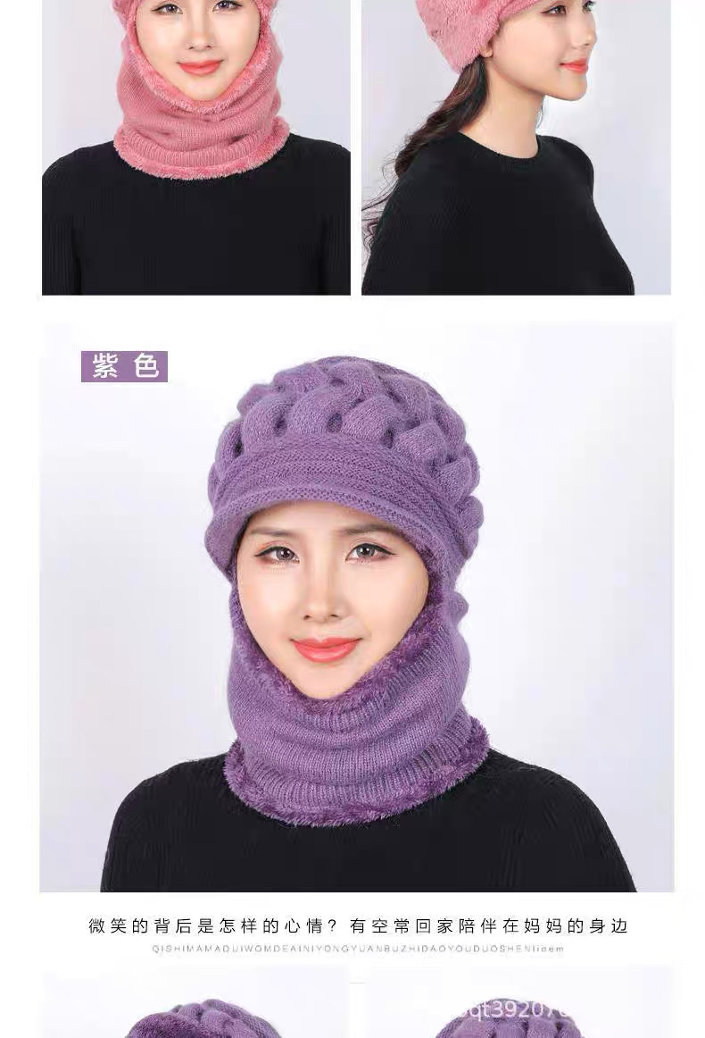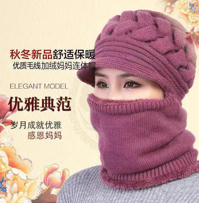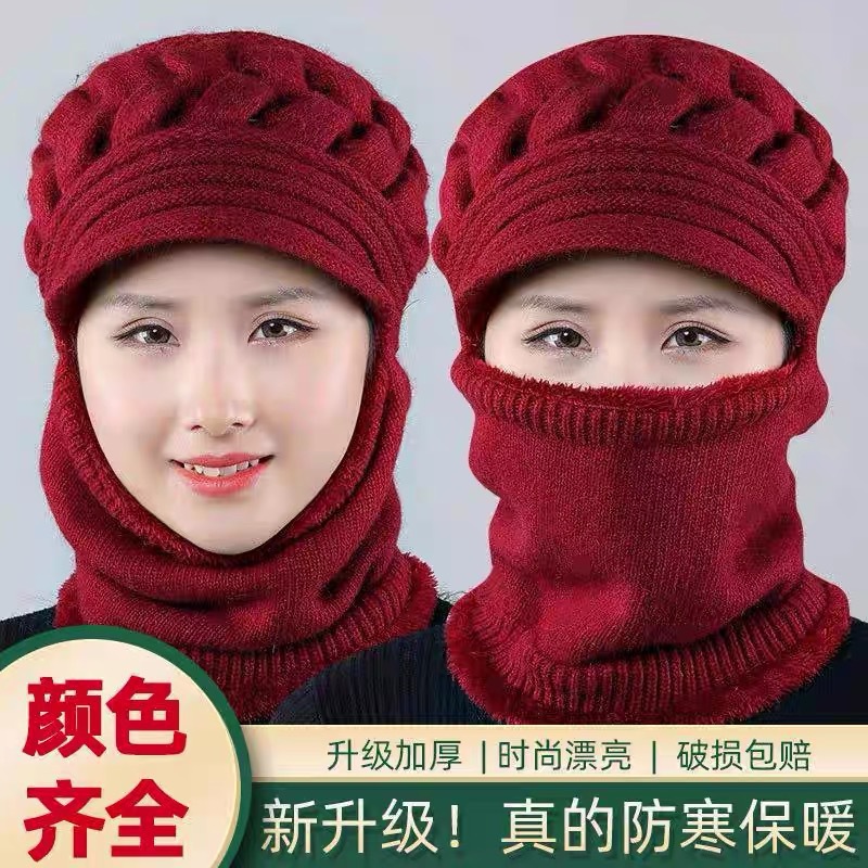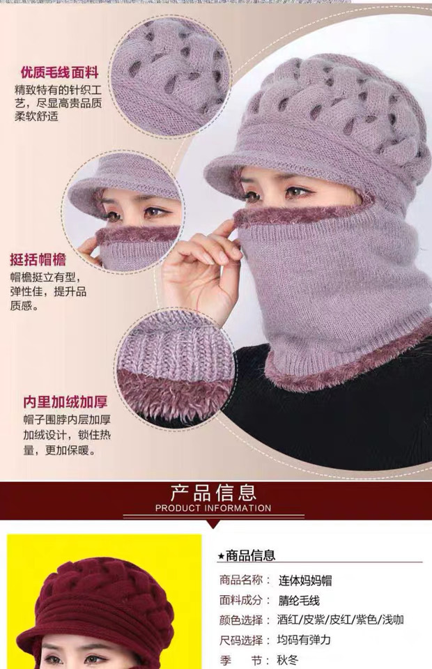中老年妈妈帽子秋冬季女士针织毛线帽加绒保暖护耳围脖一体奶奶帽