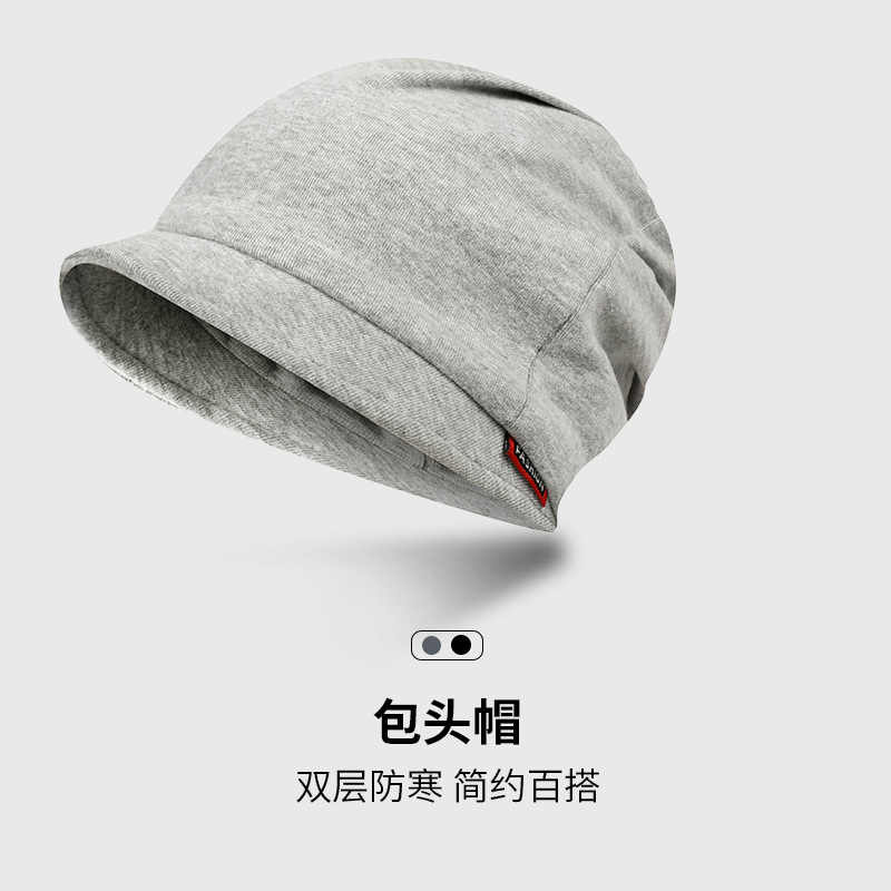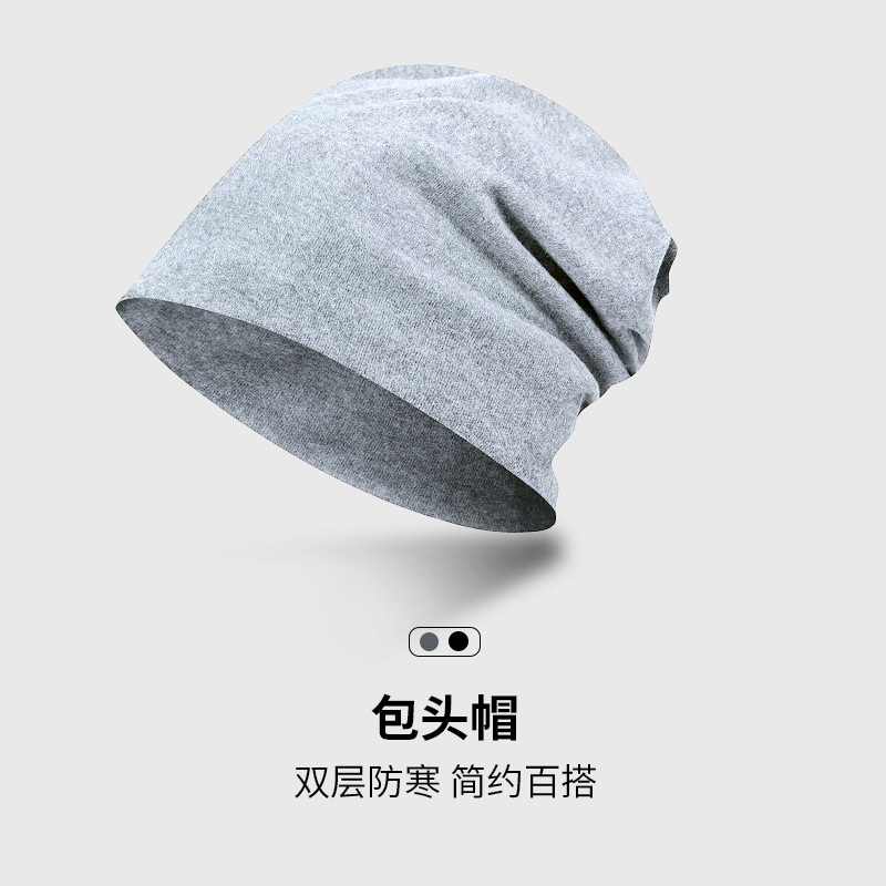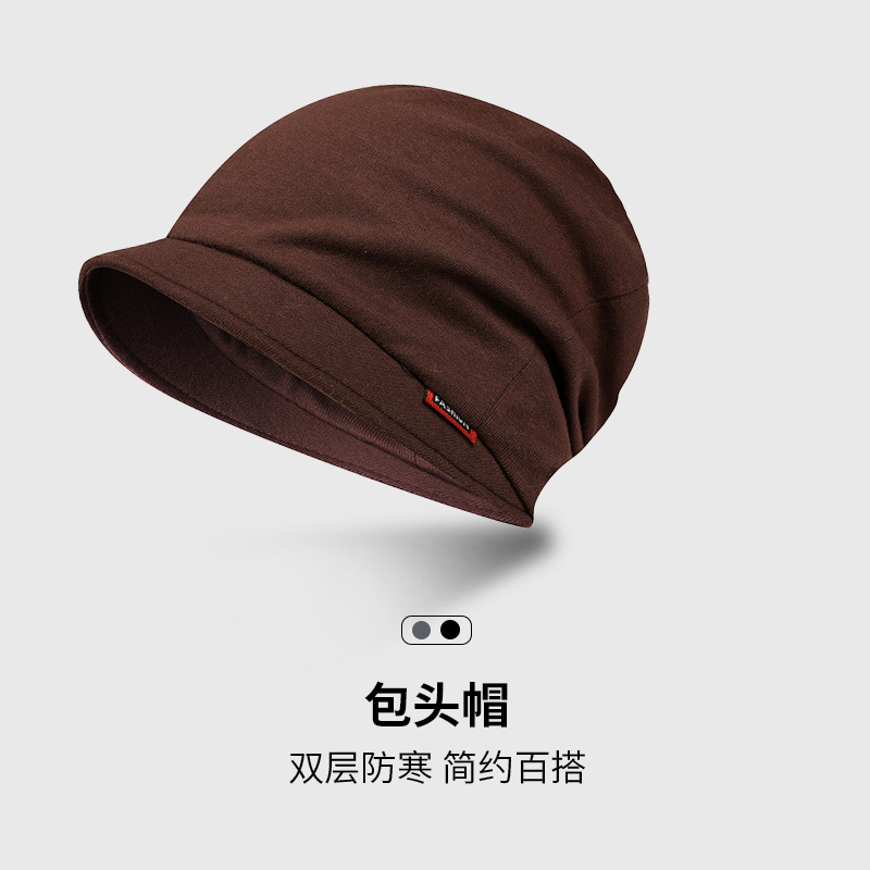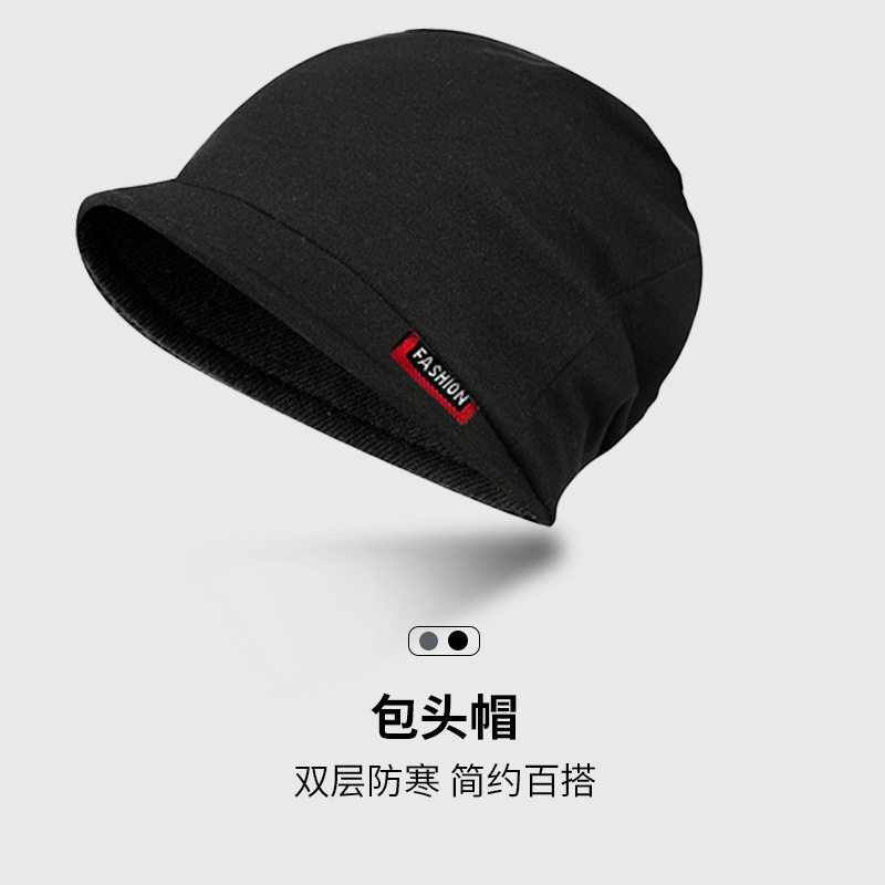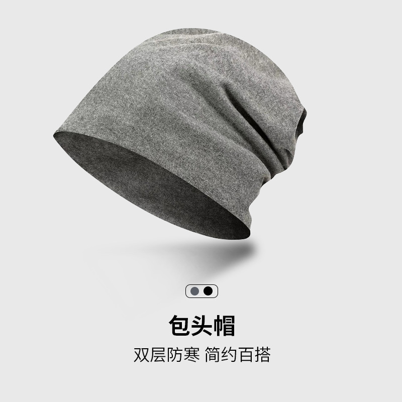包头帽男冷帽秋冬季睡帽头巾帽防寒帽子冬天堆堆帽女黑色套头帽潮