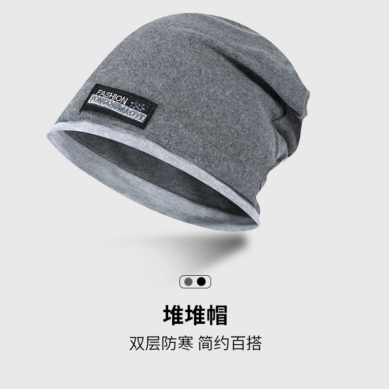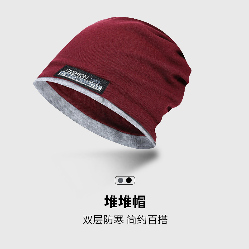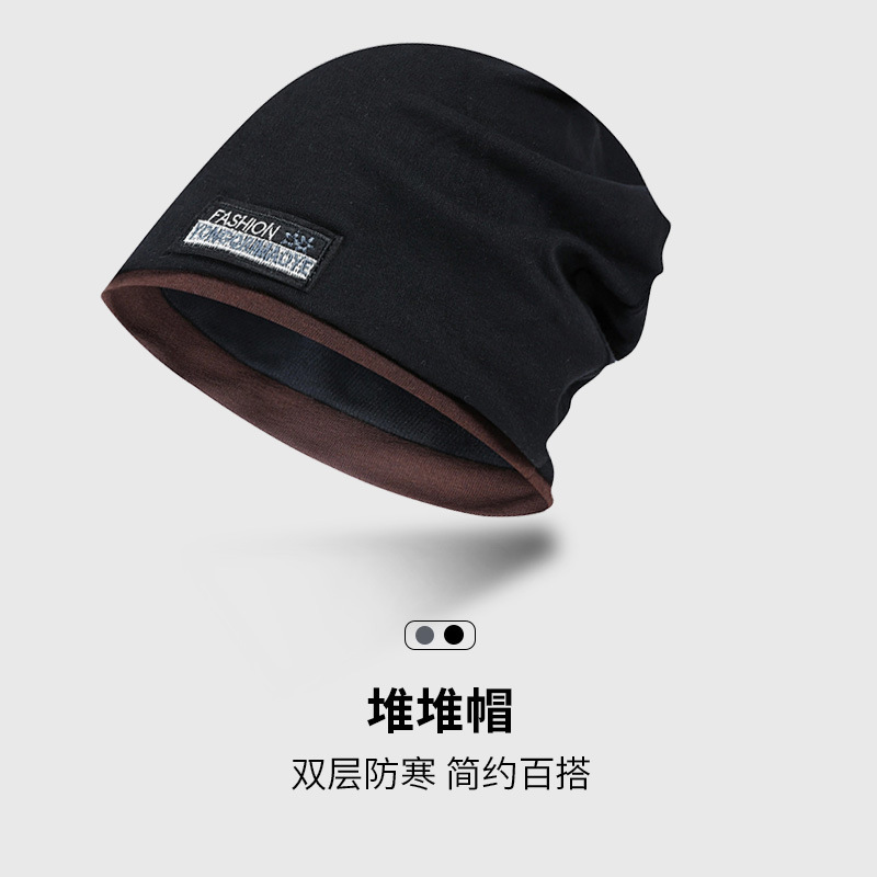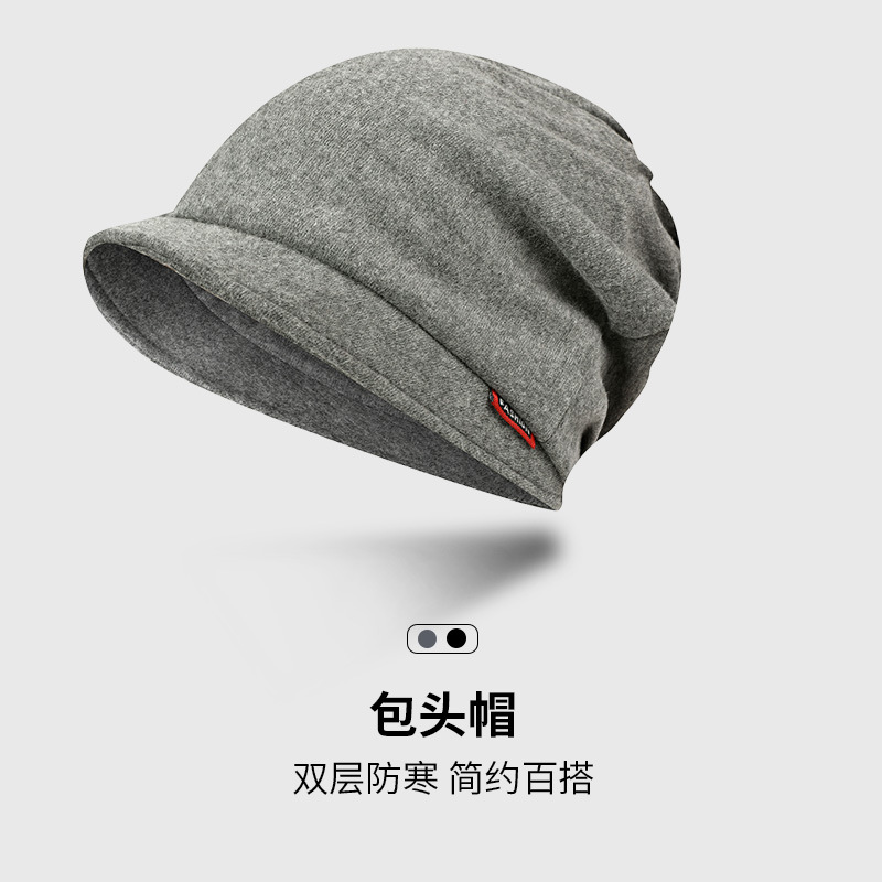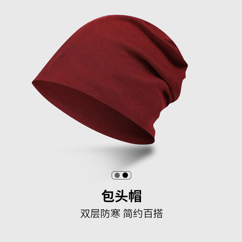 包头帽男冷帽秋冬季睡帽头巾帽防寒帽子冬天堆堆帽女黑色套头帽潮