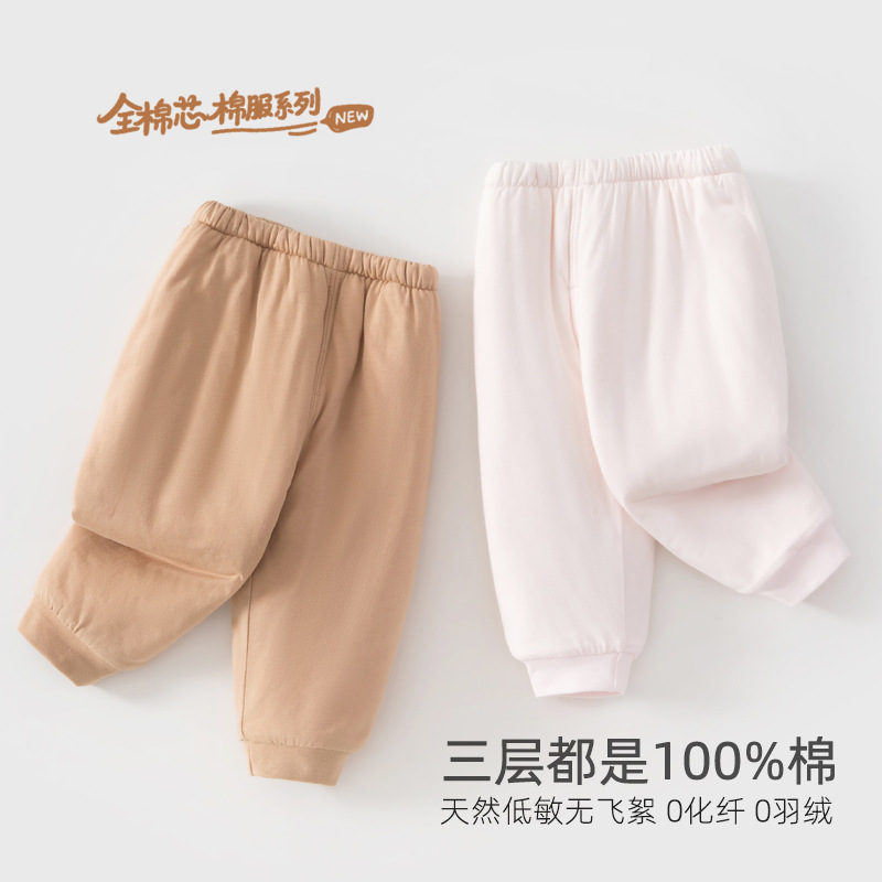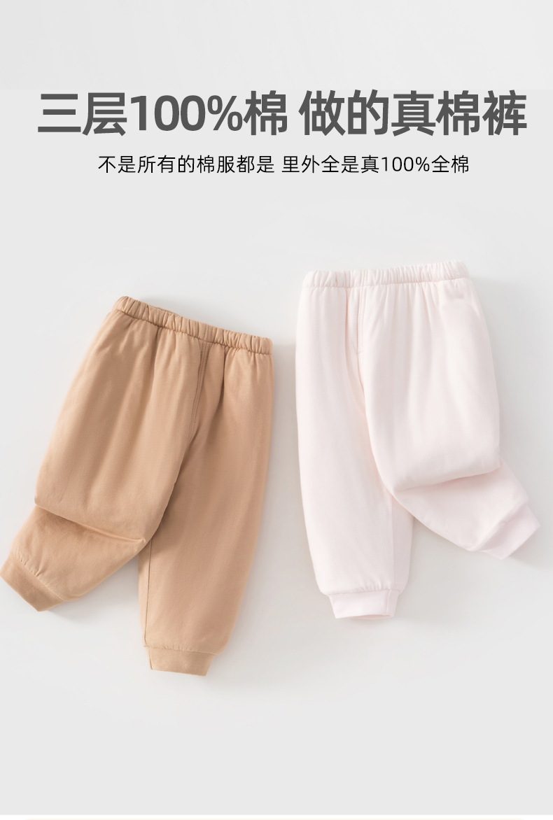 婴儿秋冬外出裤子纯棉芯外穿棉裤儿童冬季夹棉长裤宝宝加厚保暖裤