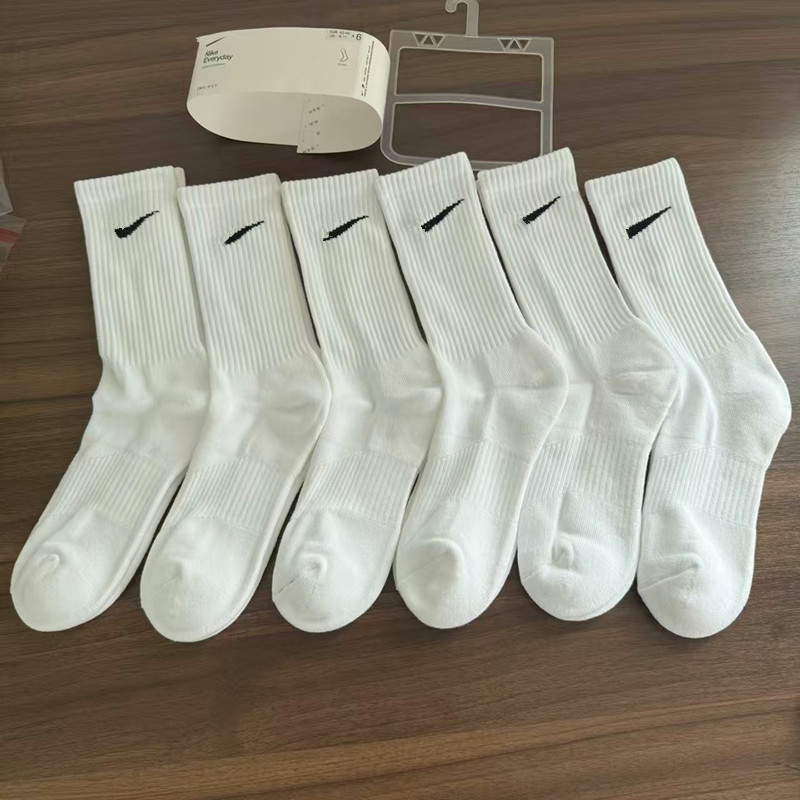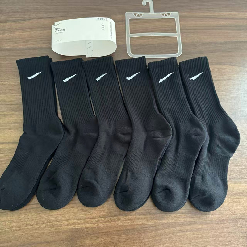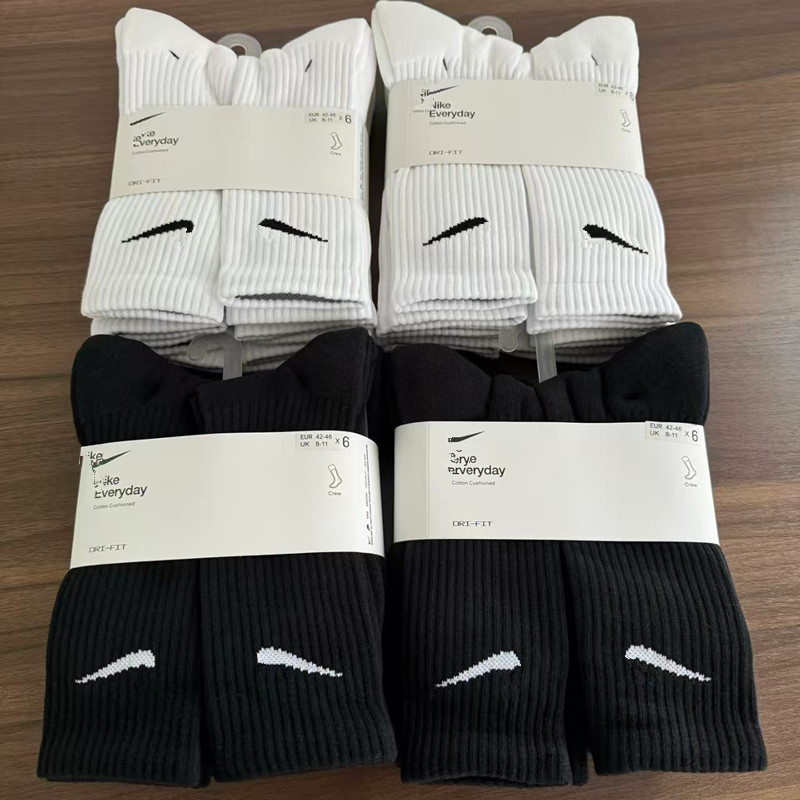 新款跨境苏万奈斯克毛巾底吸汗透气防滑黑白纯棉袜子六双装