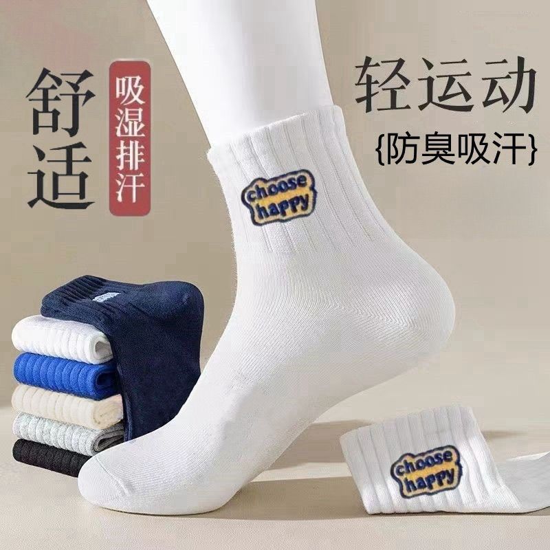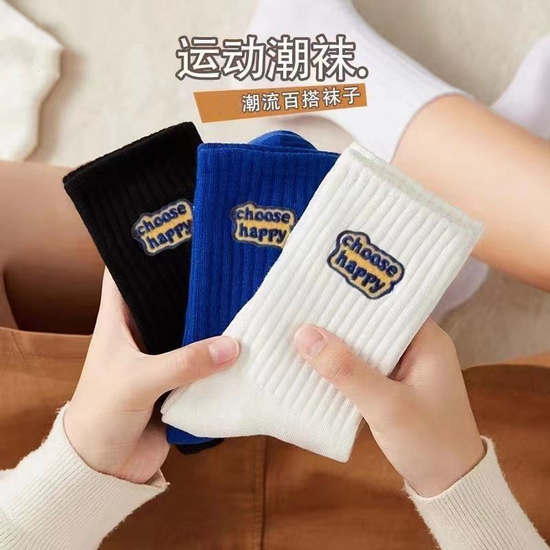 袜子男士中筒袜男女情侣短袜吸汗防臭长袜潮流青少年字母运动袜