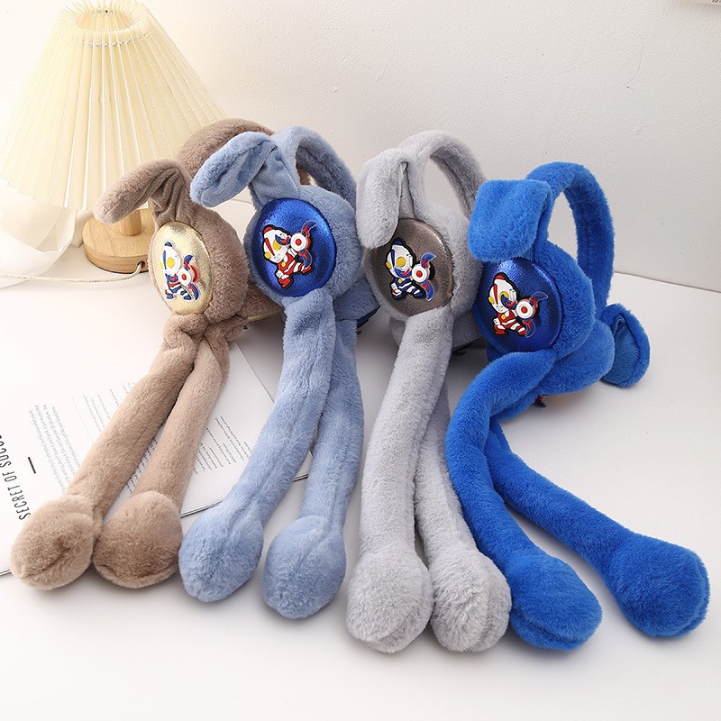 儿童男孩奥特曼耳朵会动毛绒耳罩冬季防寒保暖护耳可爱卡通耳包