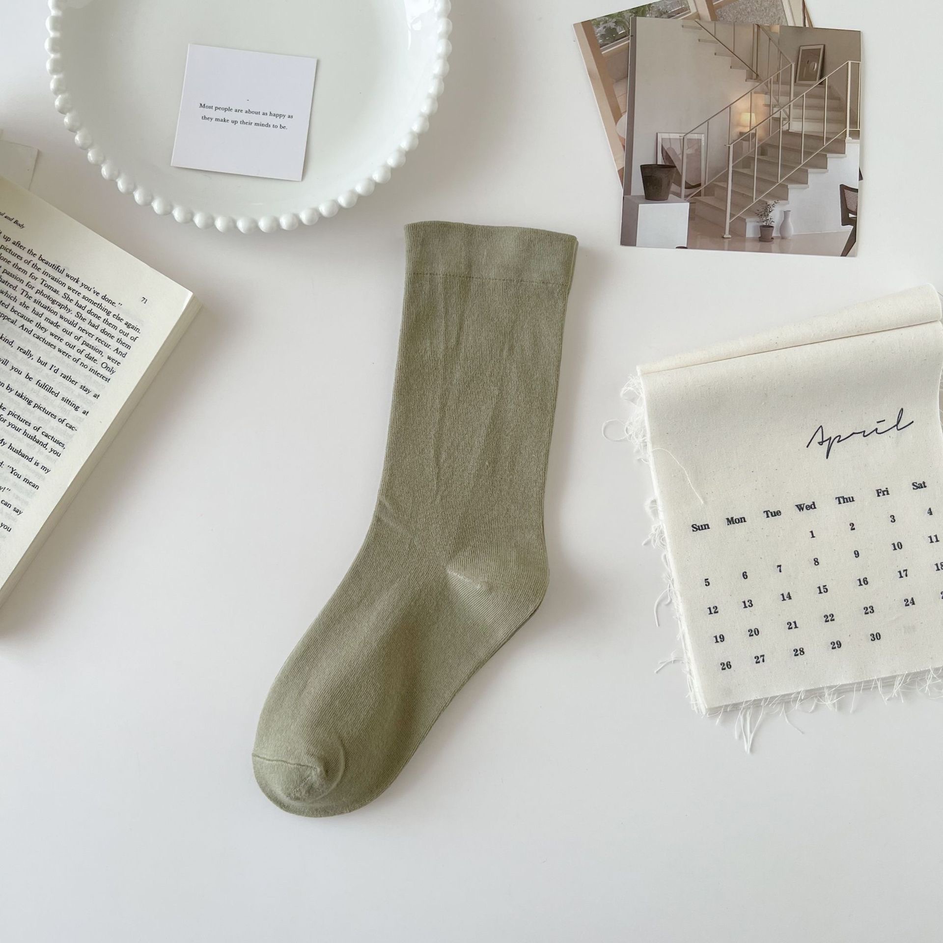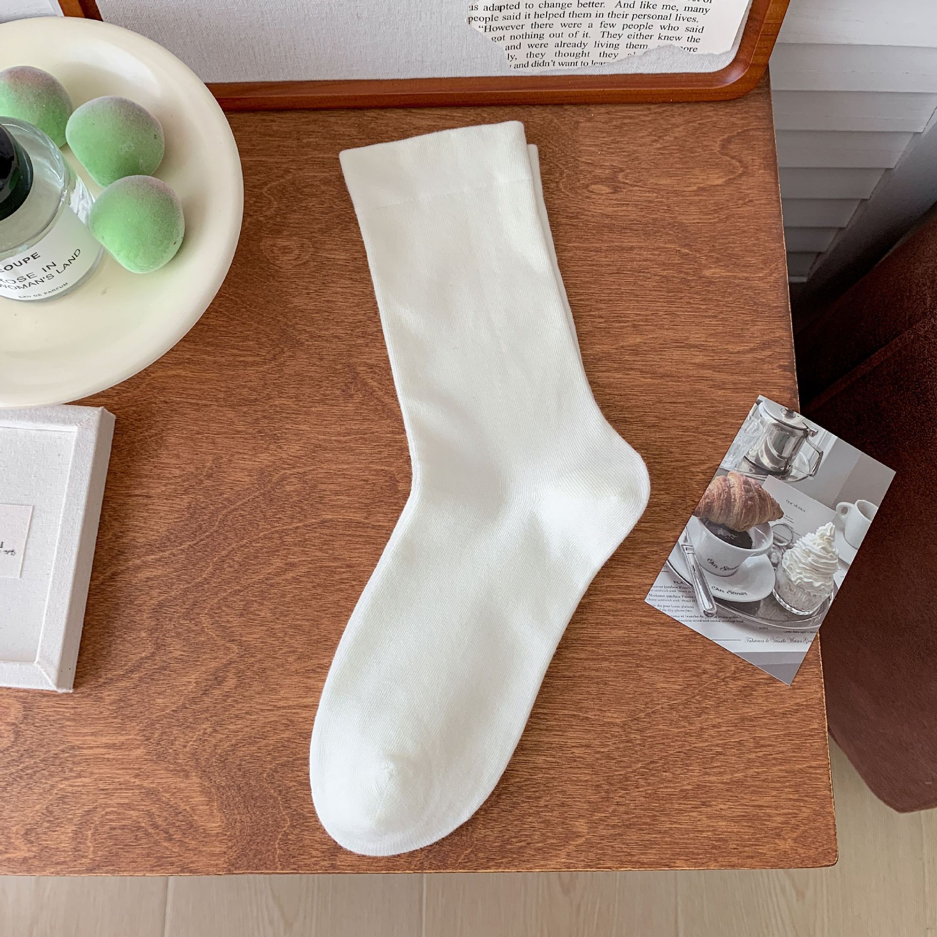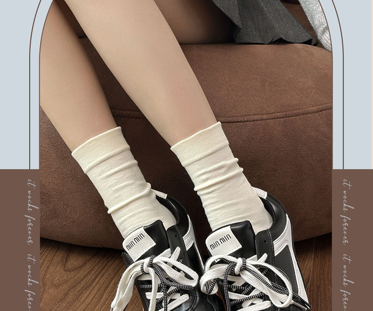 白色堆堆袜子女纯棉中筒袜春秋季5新爆软糯无骨袜月子袜