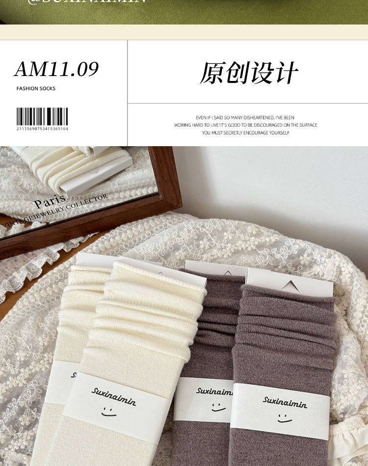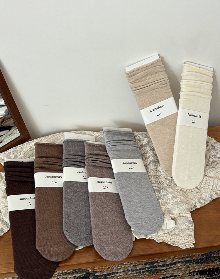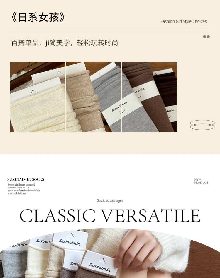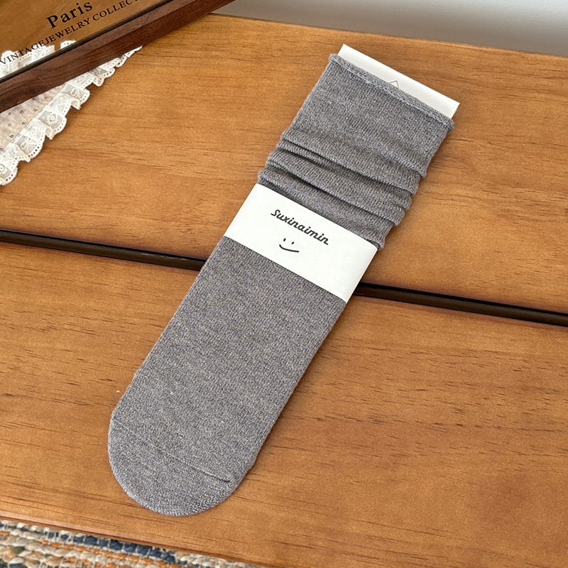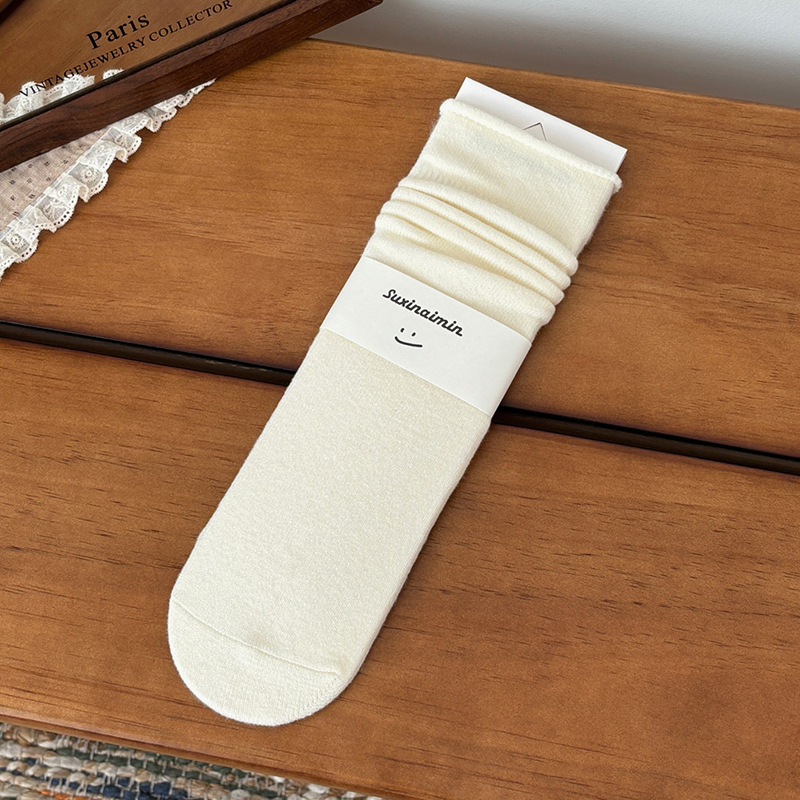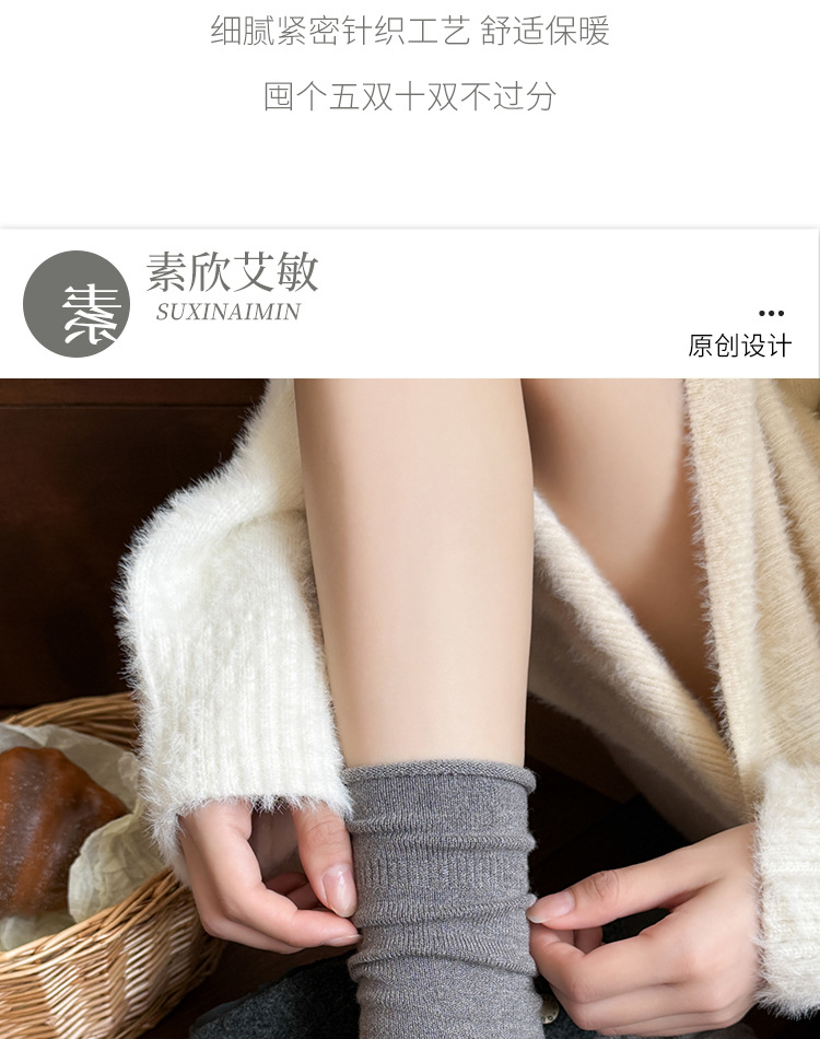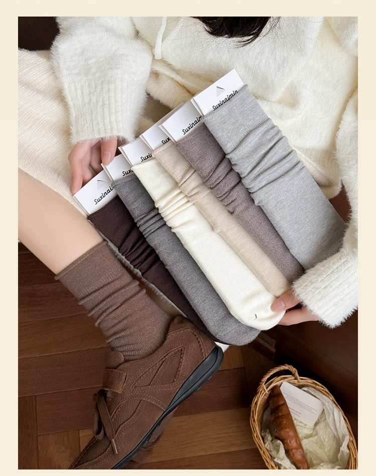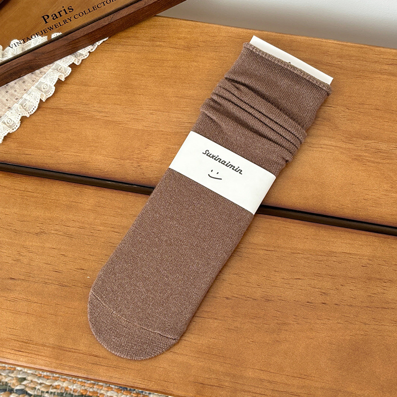 suxinaimin袜子女秋冬复古暖绒中筒袜ins潮百搭卷边堆堆袜长筒袜