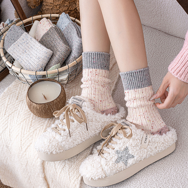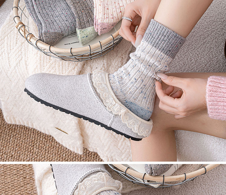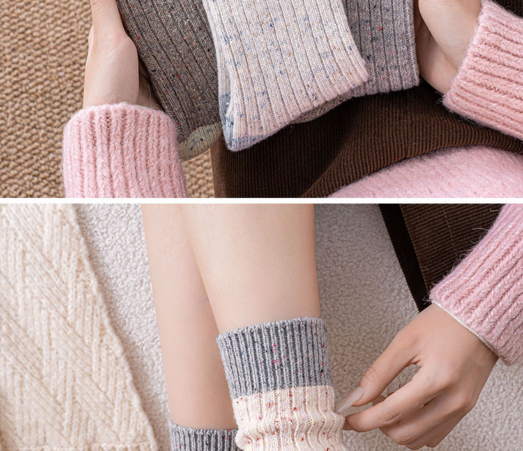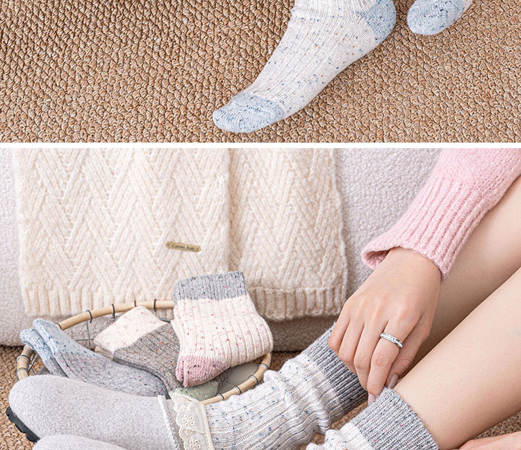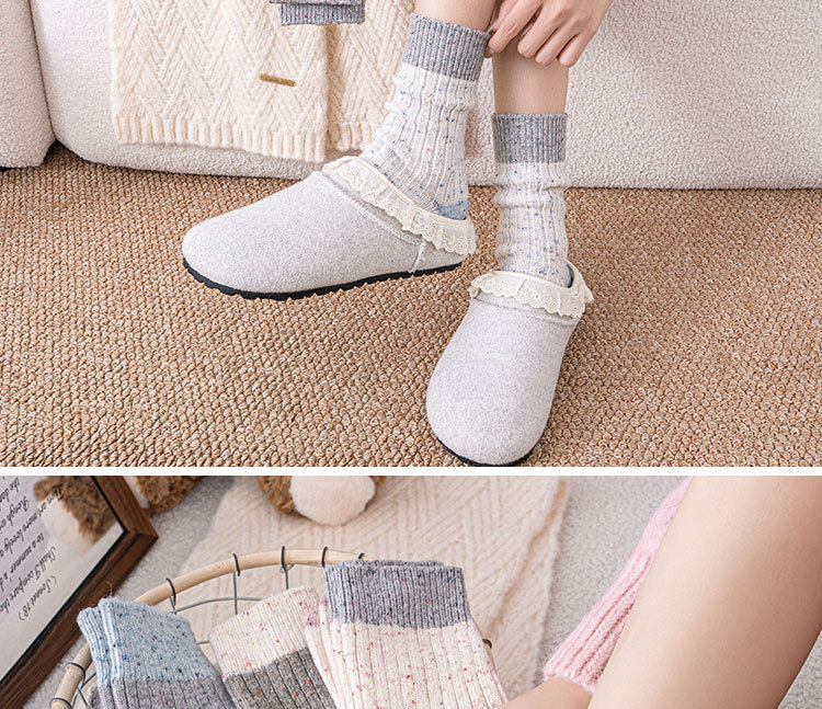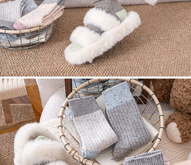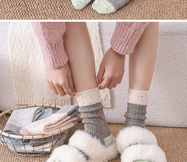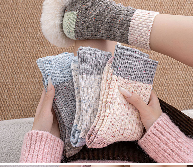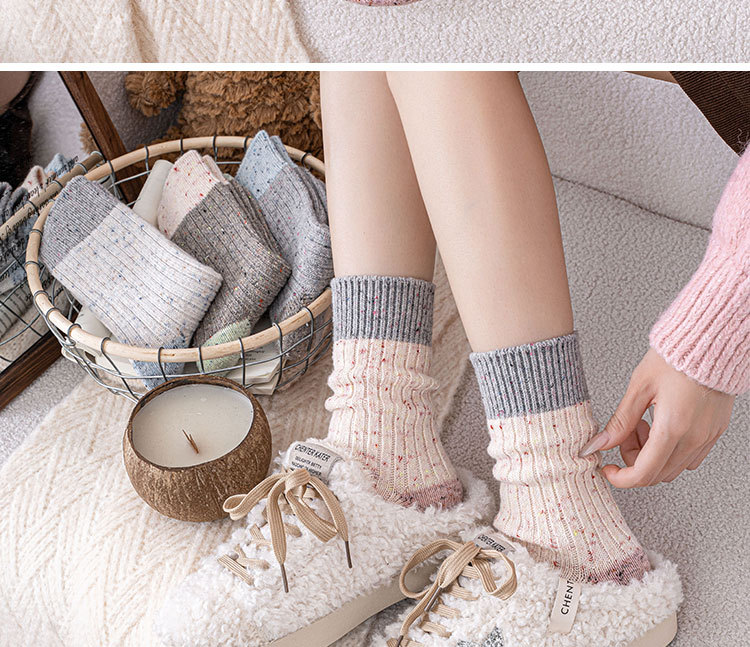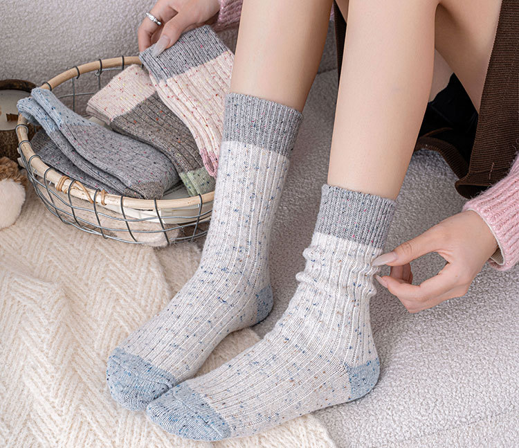 秋冬季新款羊毛袜子女中筒袜加绒加厚保暖点子纱拼色羊绒堆堆袜女
