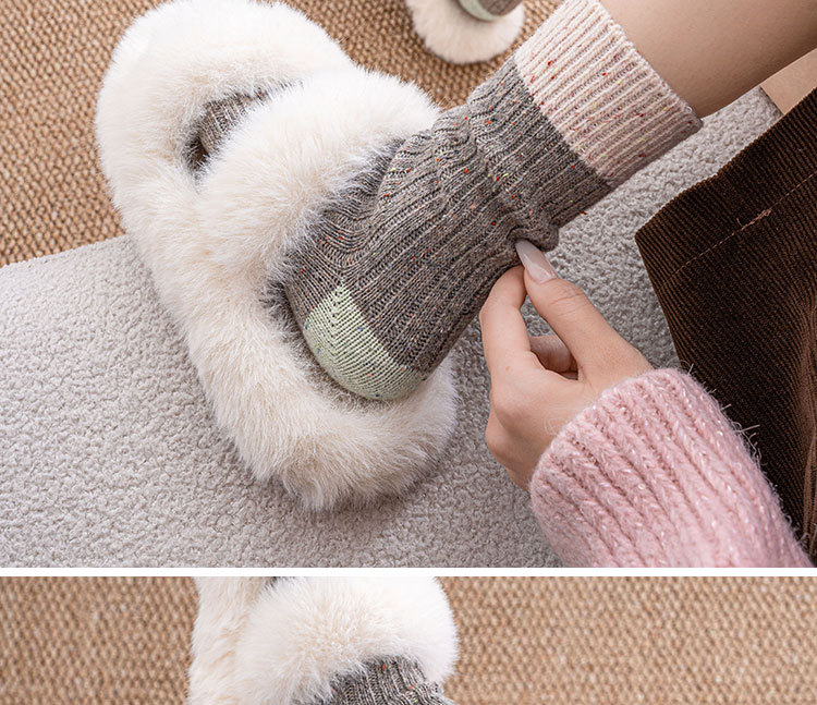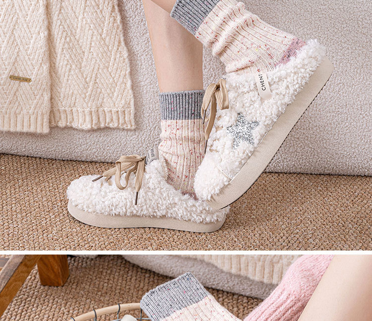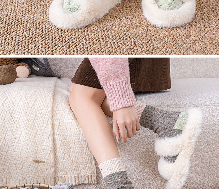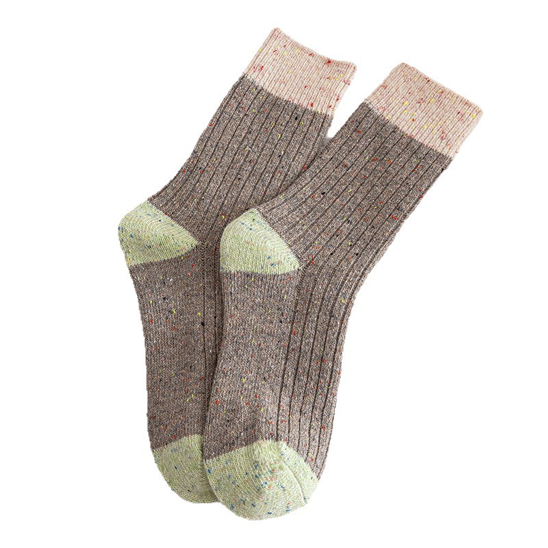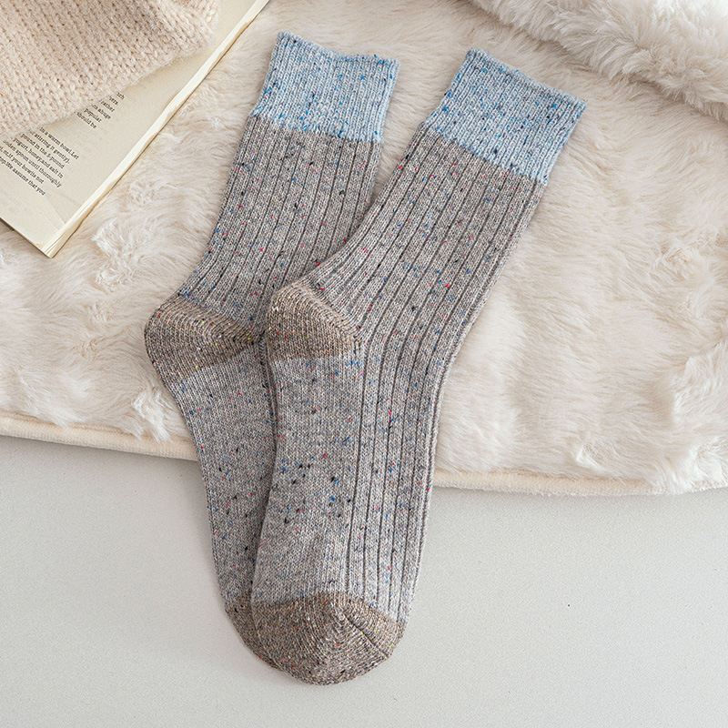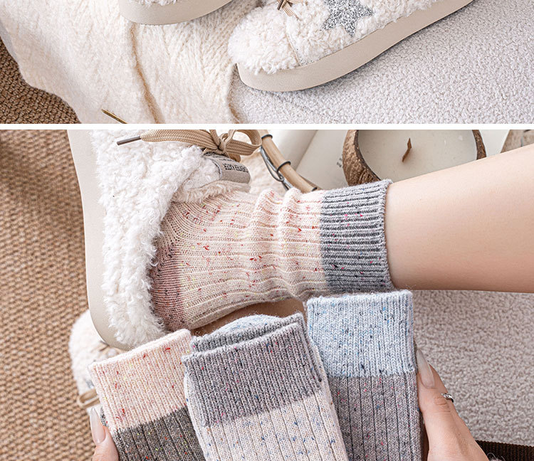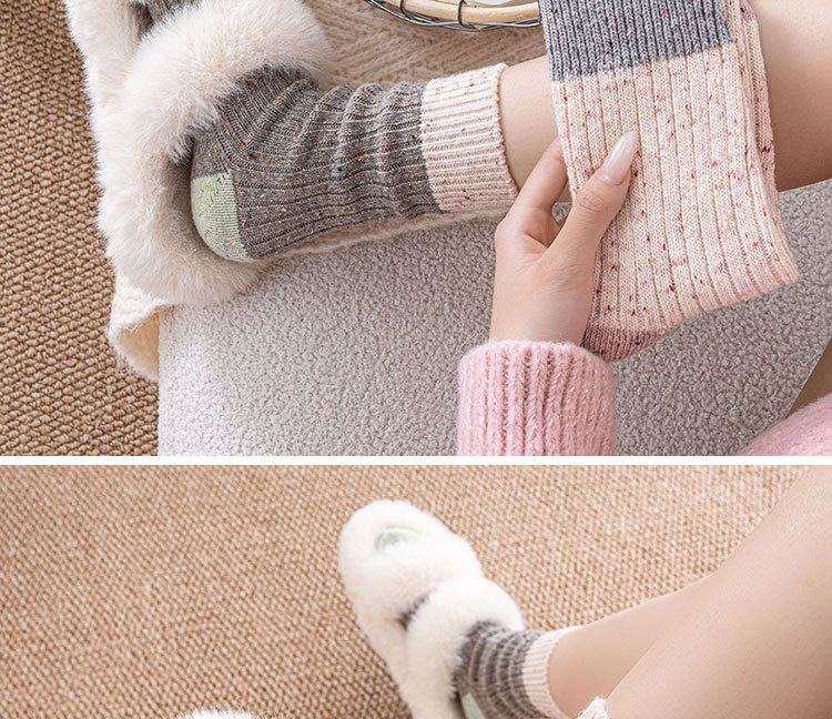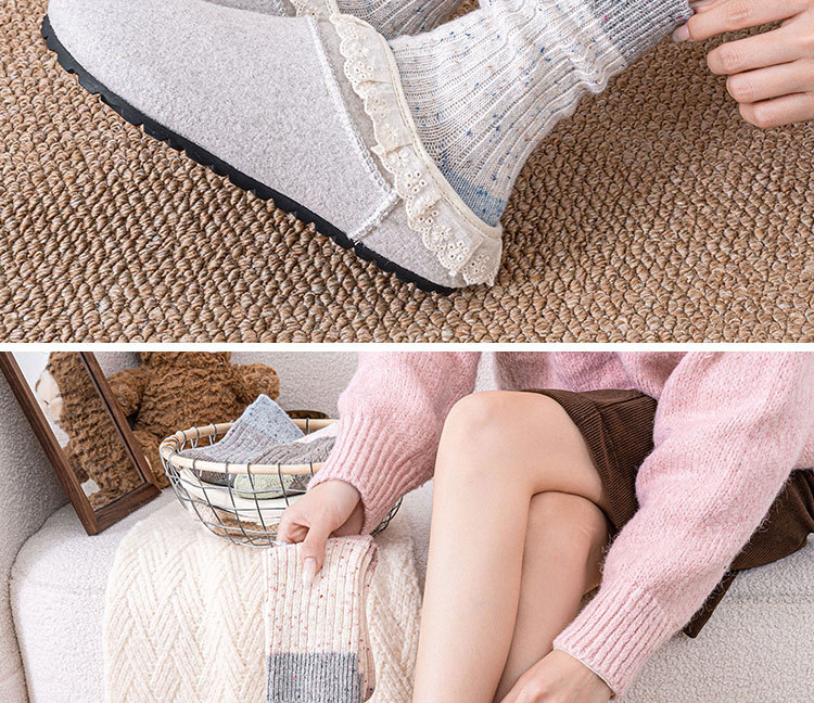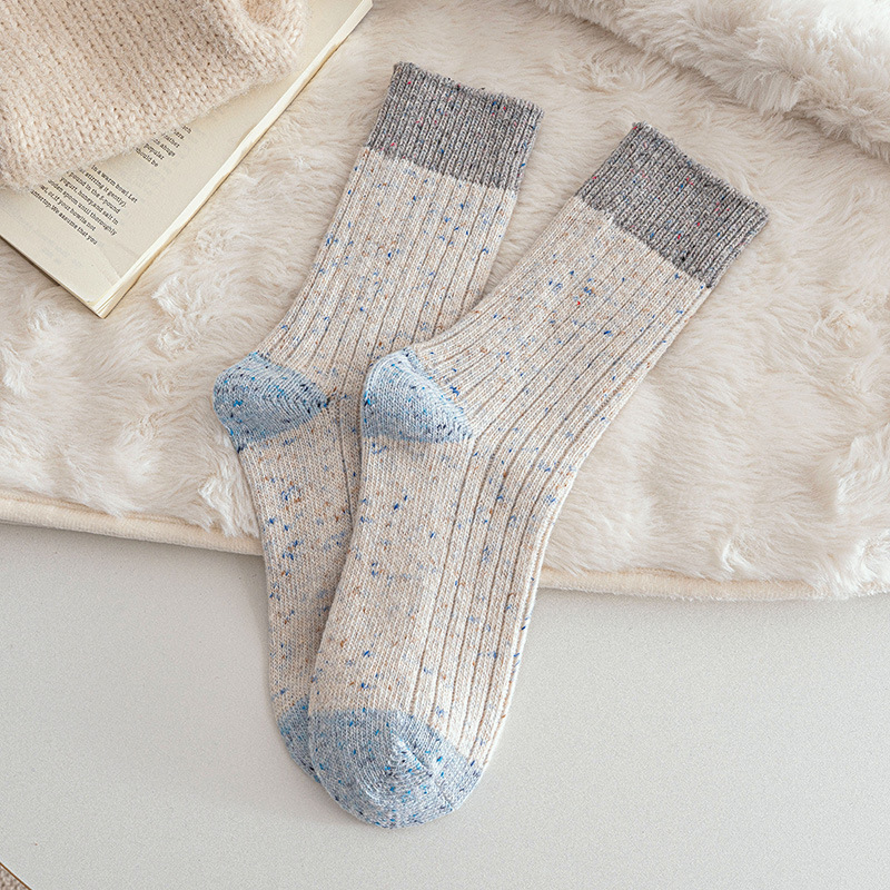 秋冬季新款羊毛袜子女中筒袜加绒加厚保暖点子纱拼色羊绒堆堆袜女