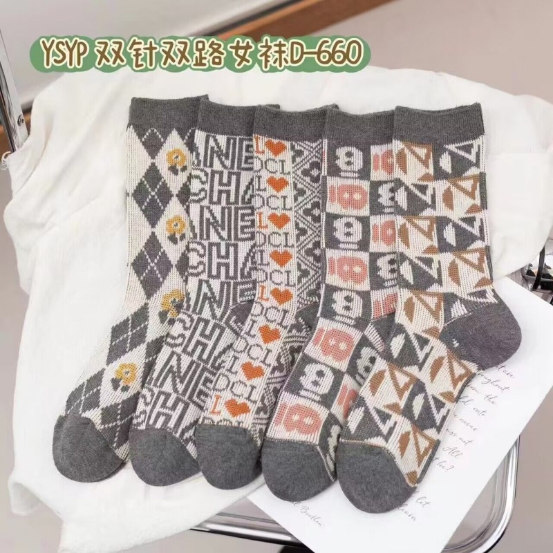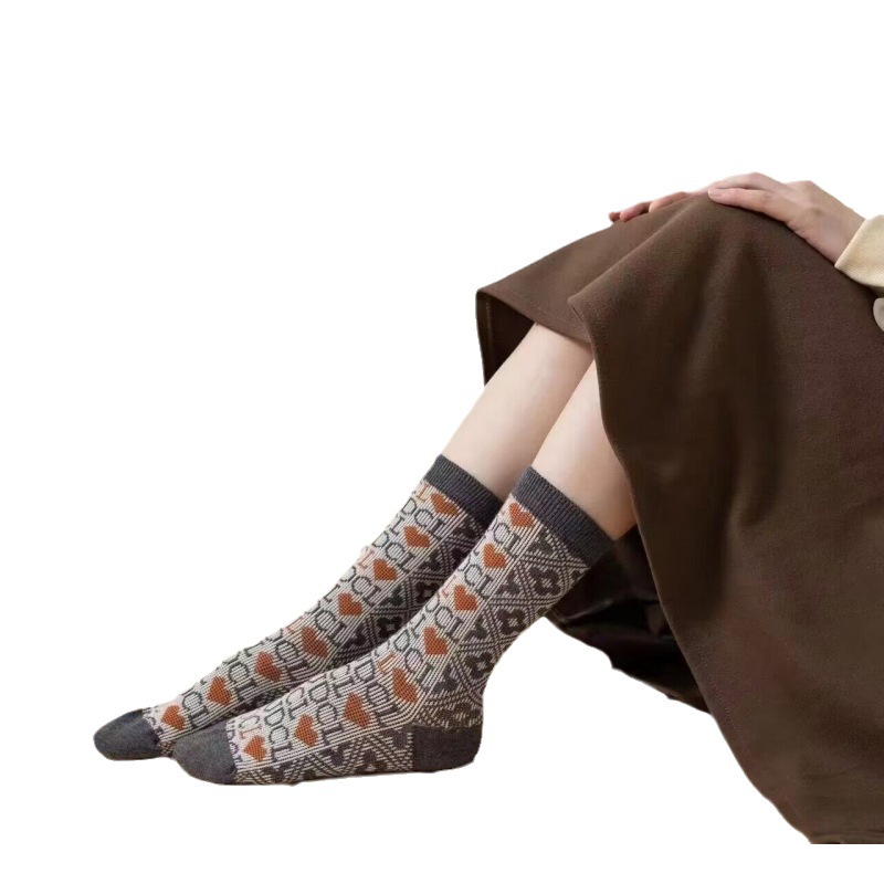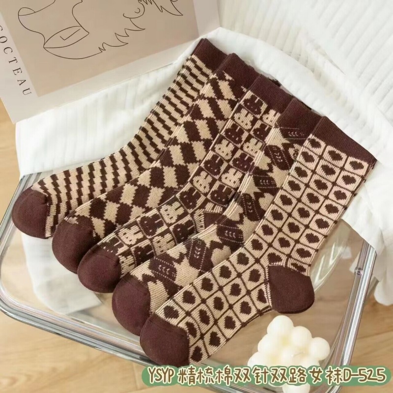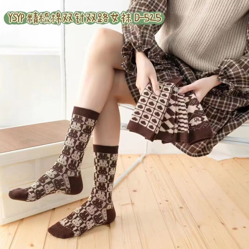 现货秋冬复古女士中筒袜精梳棉柔软舒适堆堆袜学院风双针双路袜子