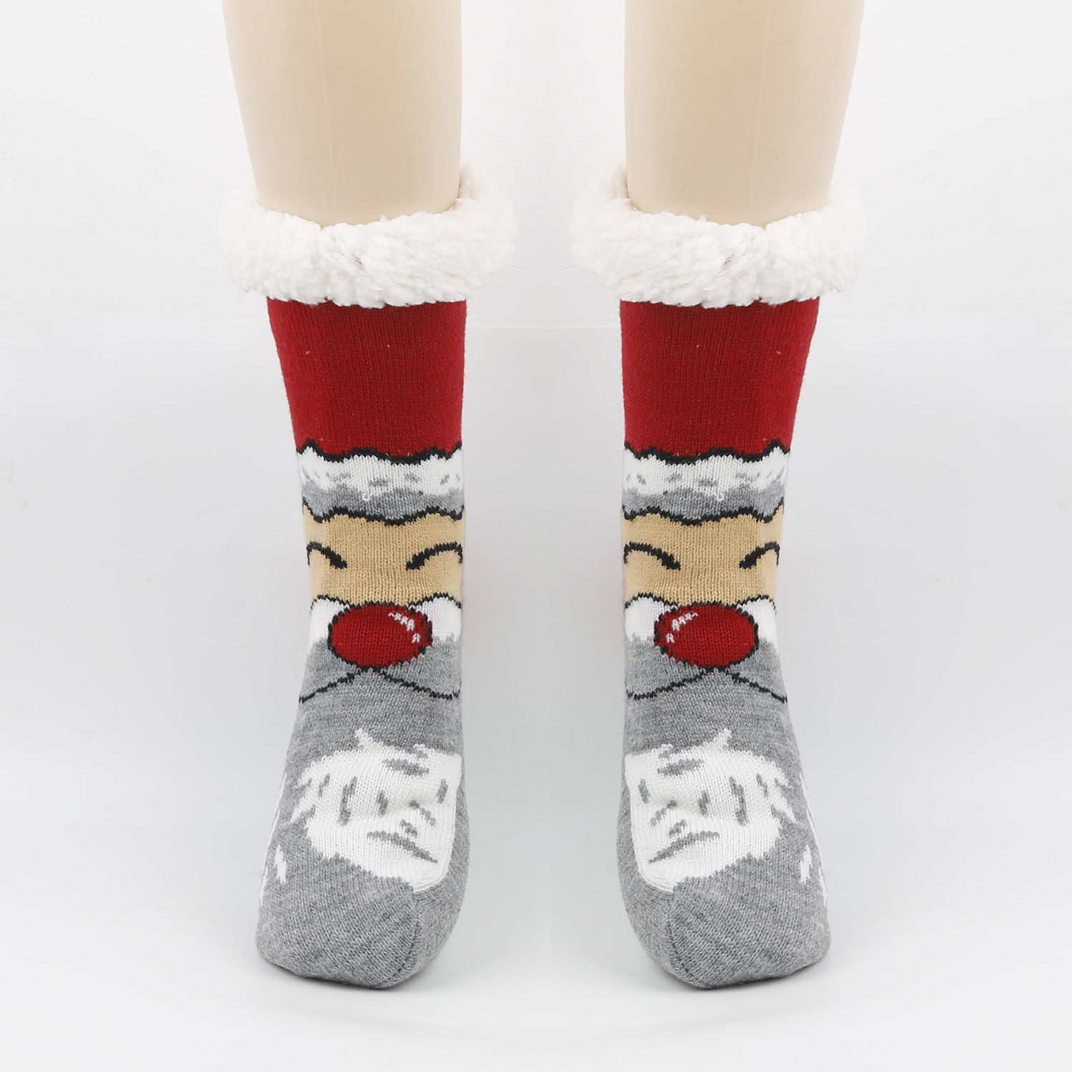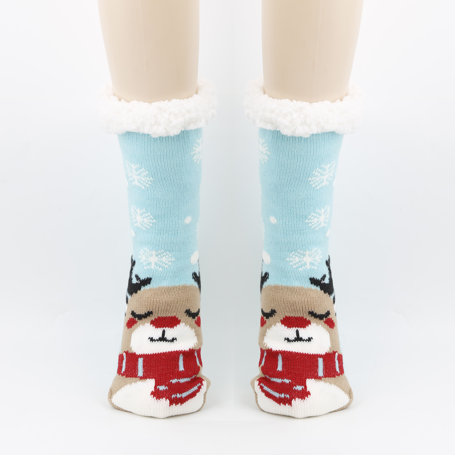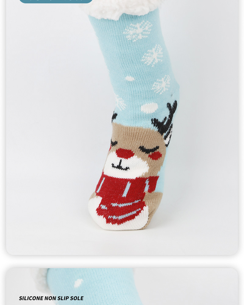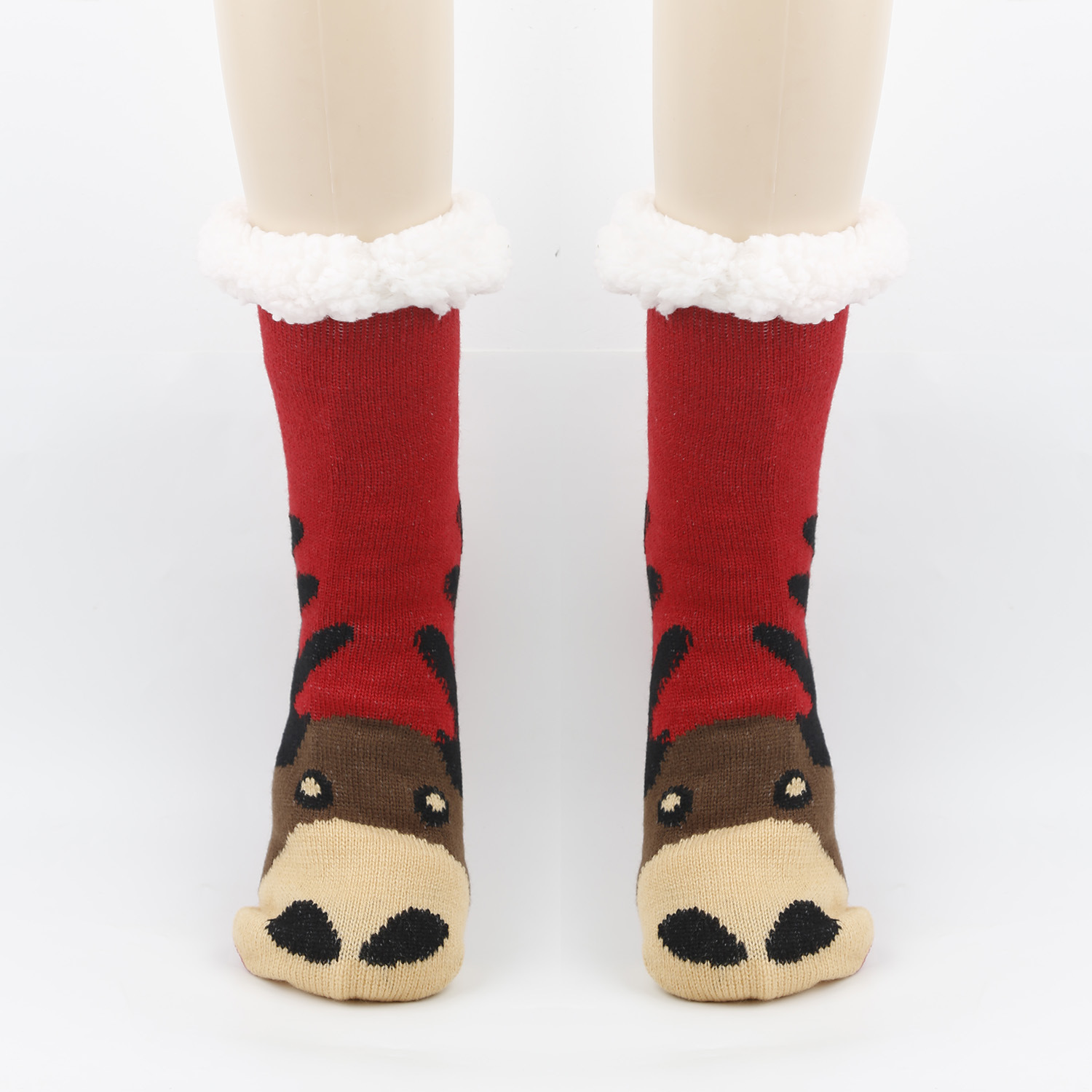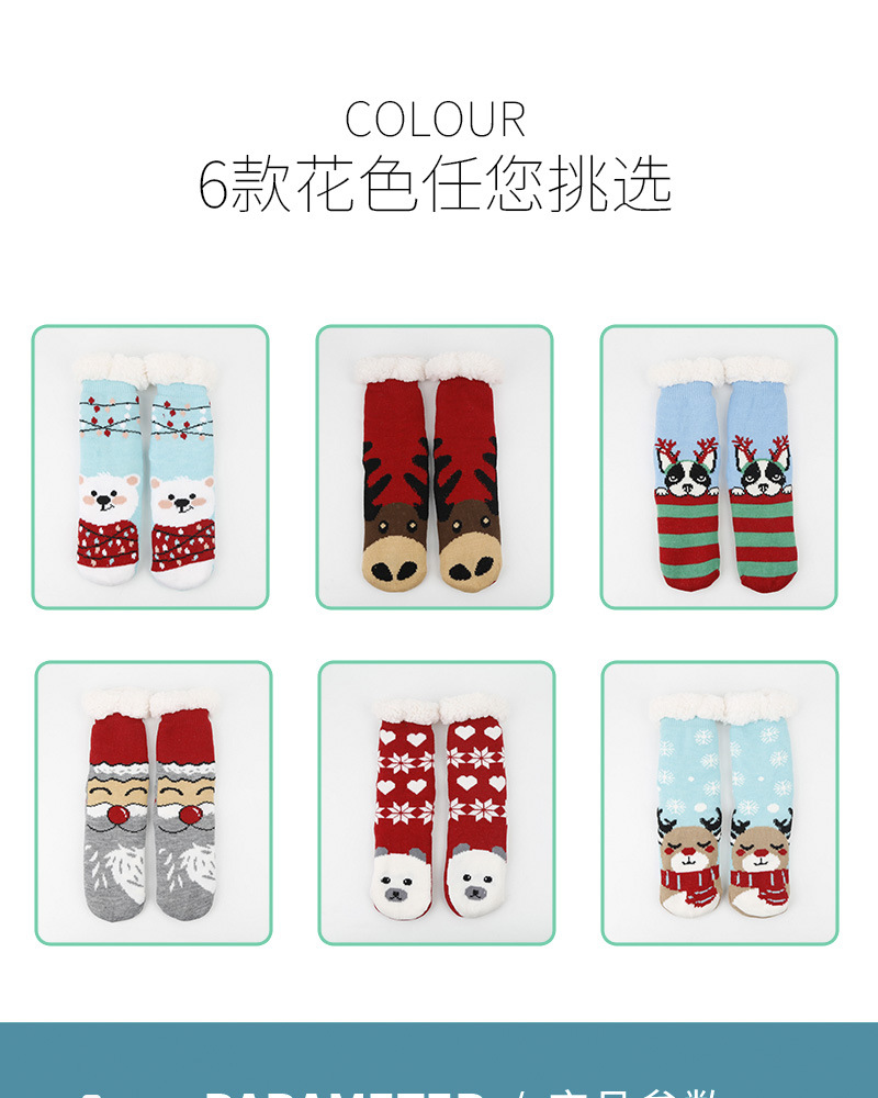 跨境超厚加绒女袜卡通圣诞袜子家居中筒睡眠袜羊羔绒地板袜