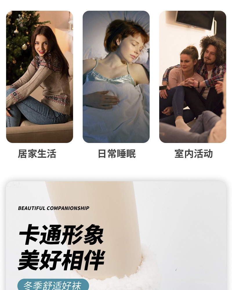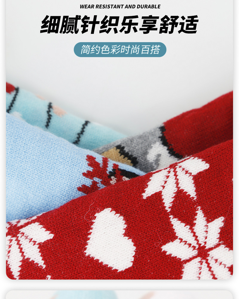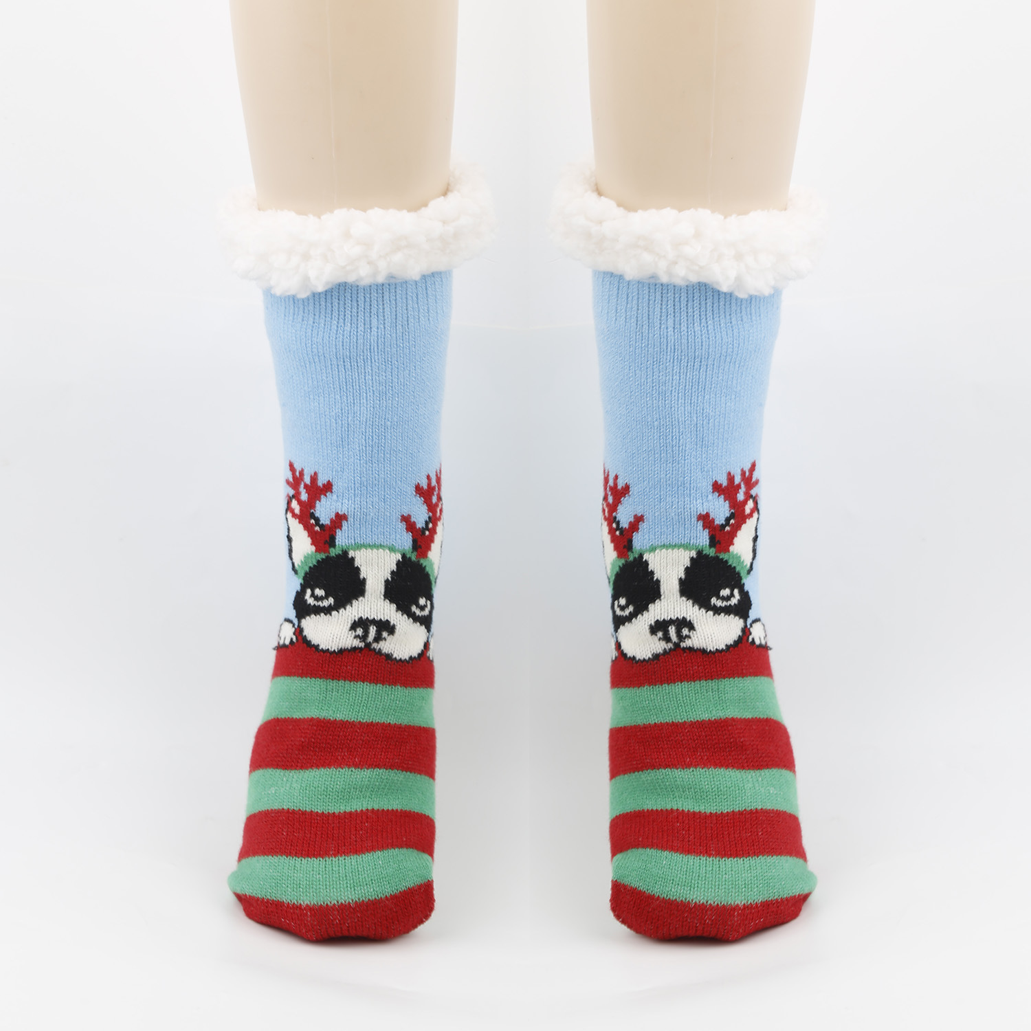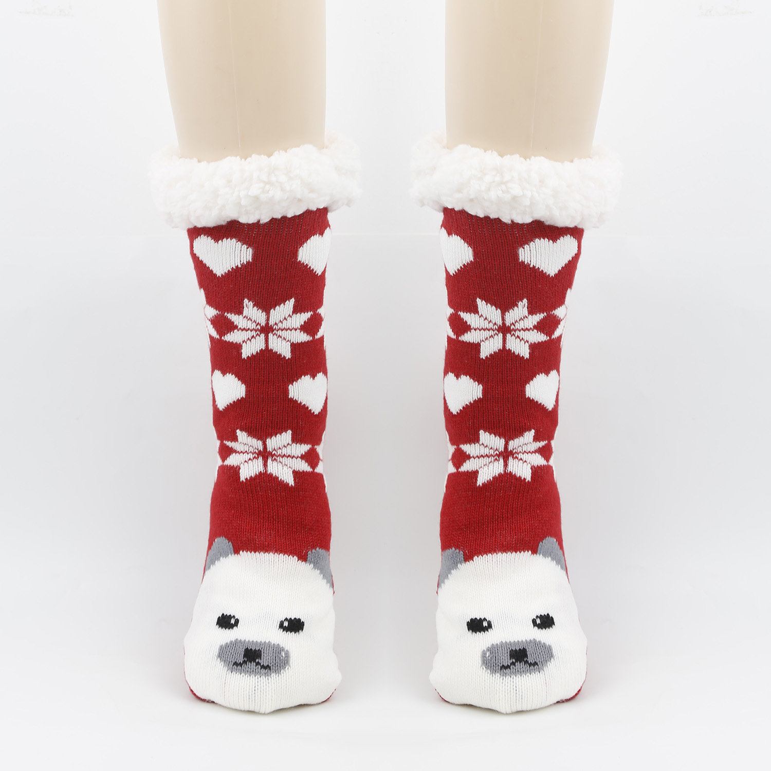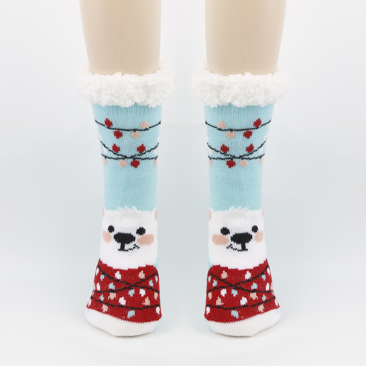 跨境超厚加绒女袜卡通圣诞袜子家居中筒睡眠袜羊羔绒地板袜