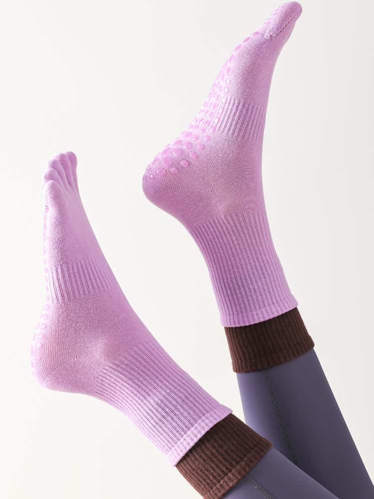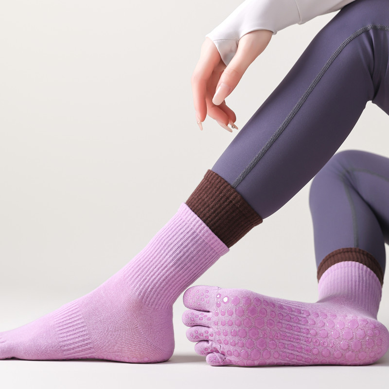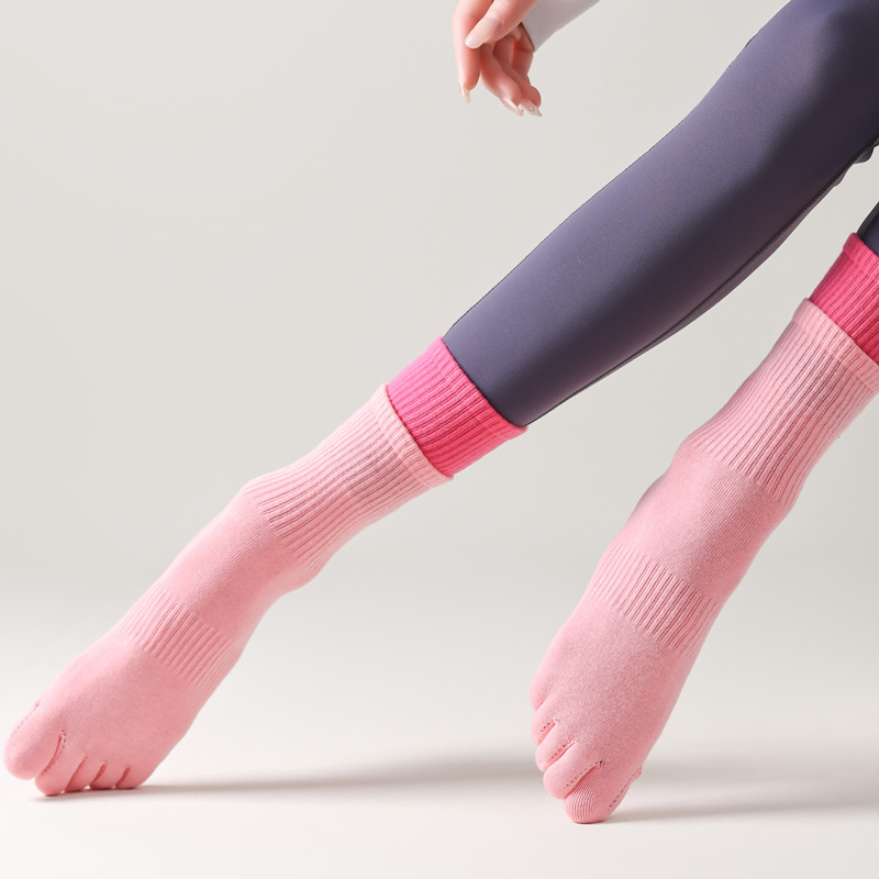 中筒五指瑜伽袜女双罗口分趾普拉提袜专业防滑室内运动健身舞蹈袜