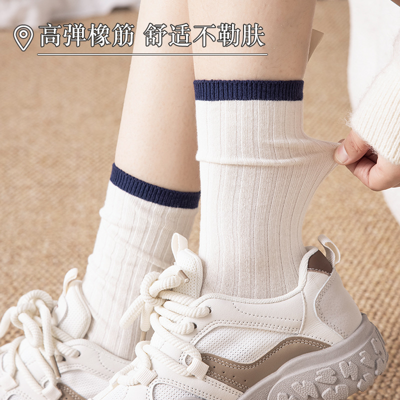 白色袜子女冬天中筒袜棉袜ins潮学院风韩国长筒袜女堆堆袜春秋款