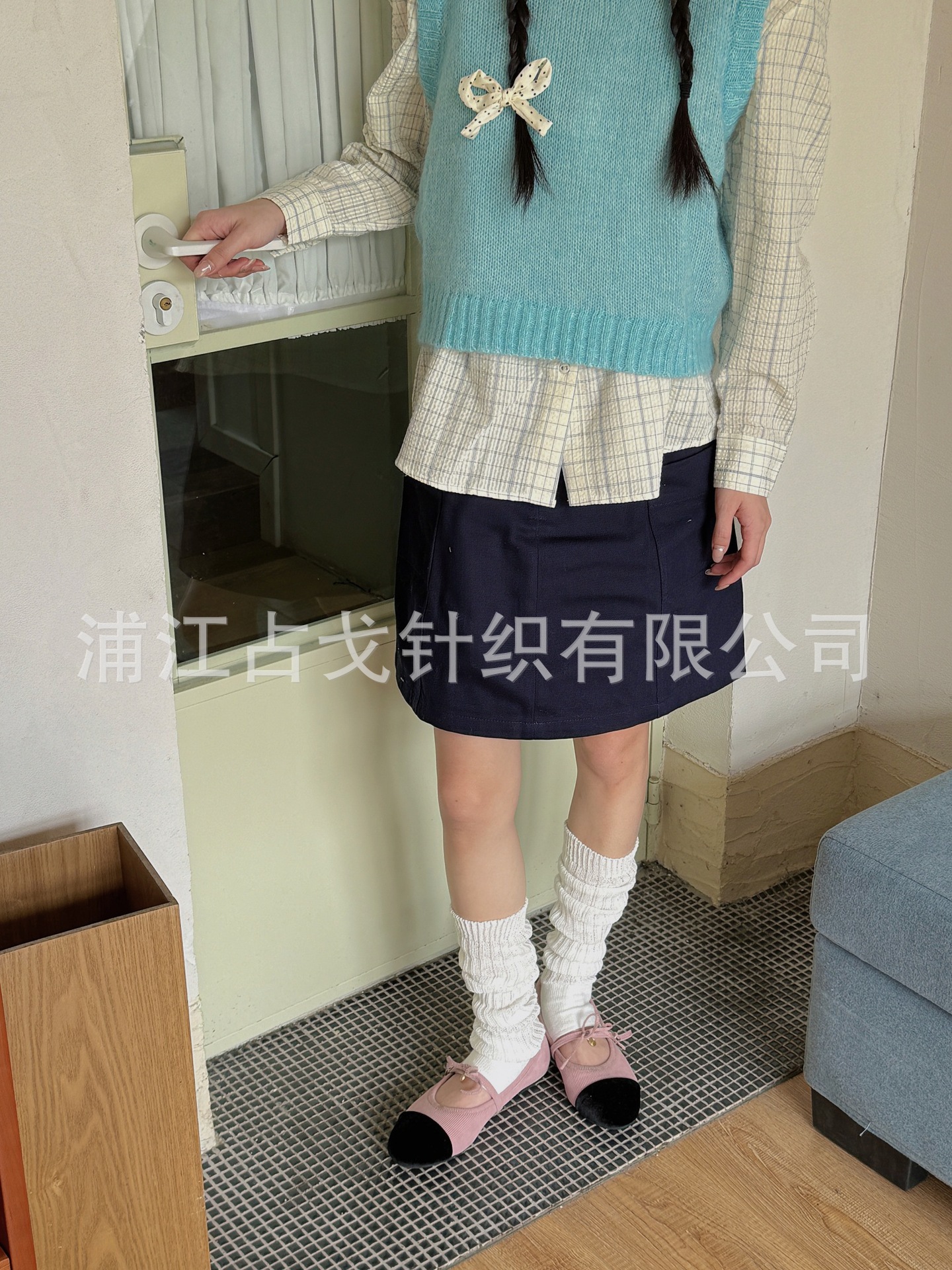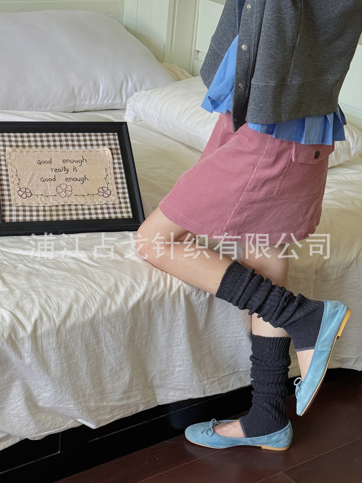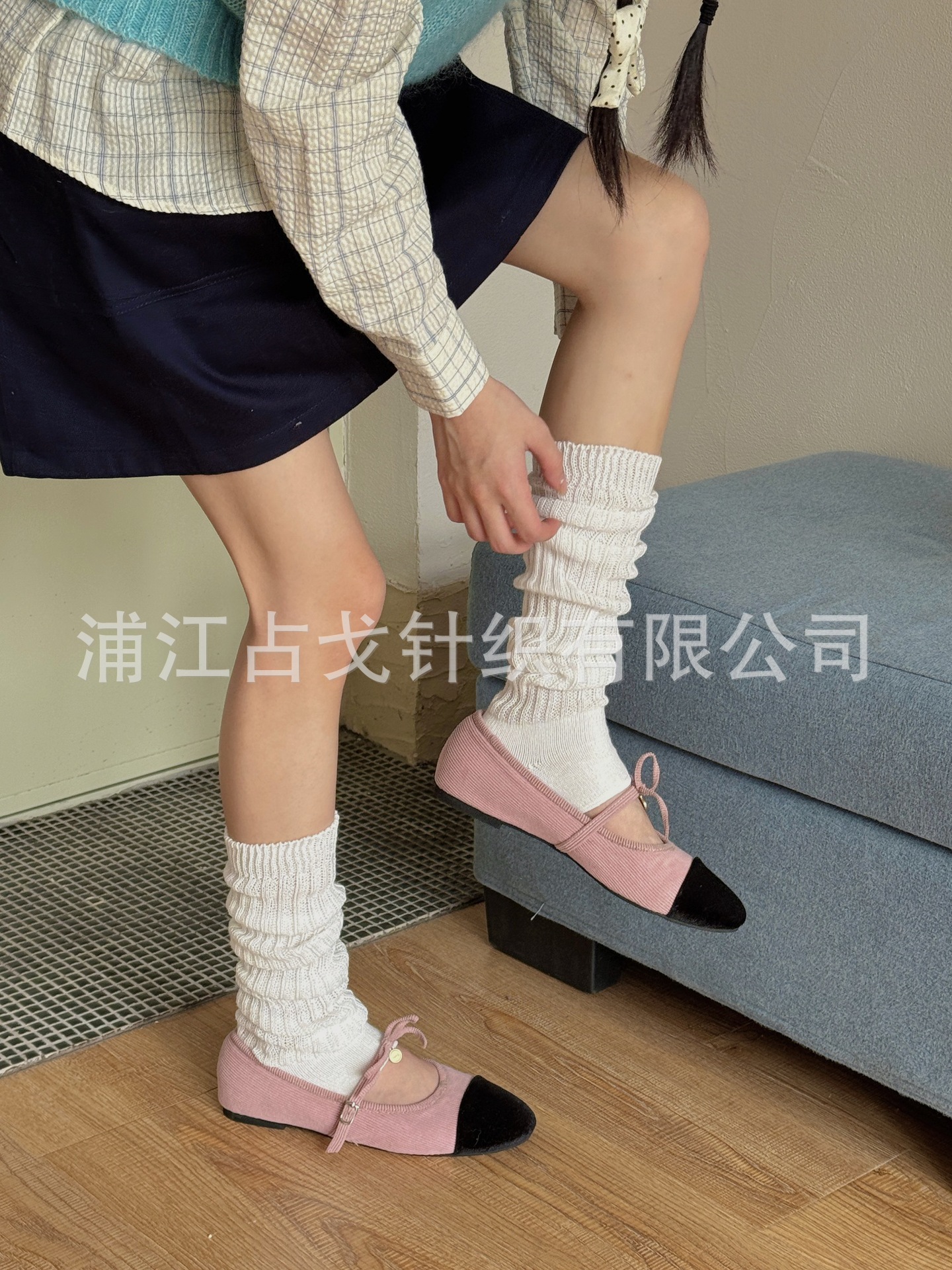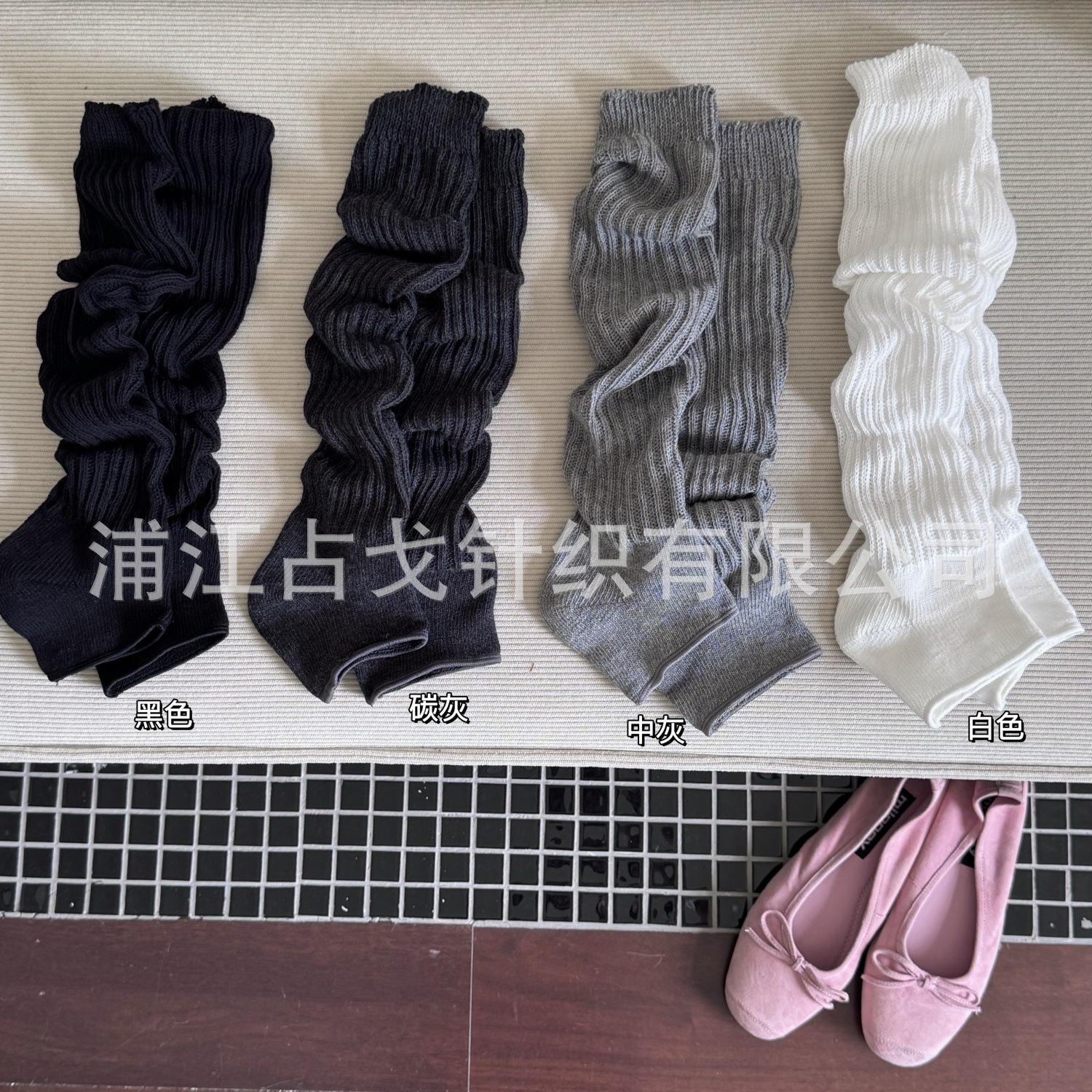 夏季纯色堆堆踩脚袜套ins风腿袜竖纹双针y2k腿套吸汗透气袜子女生