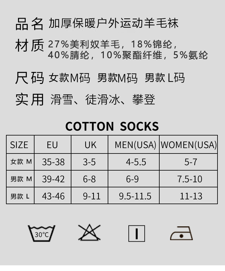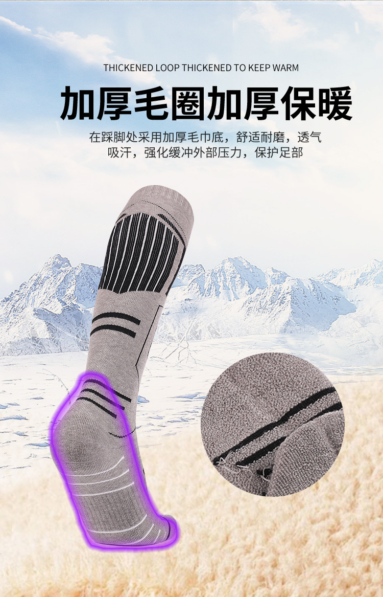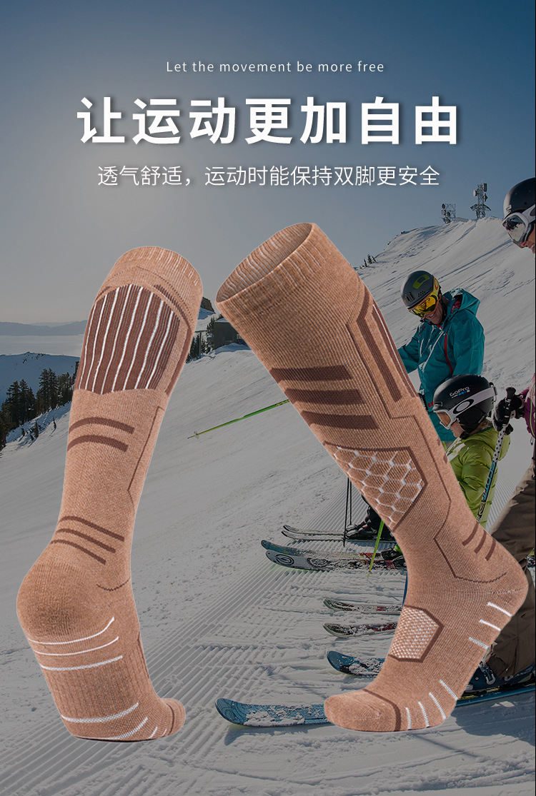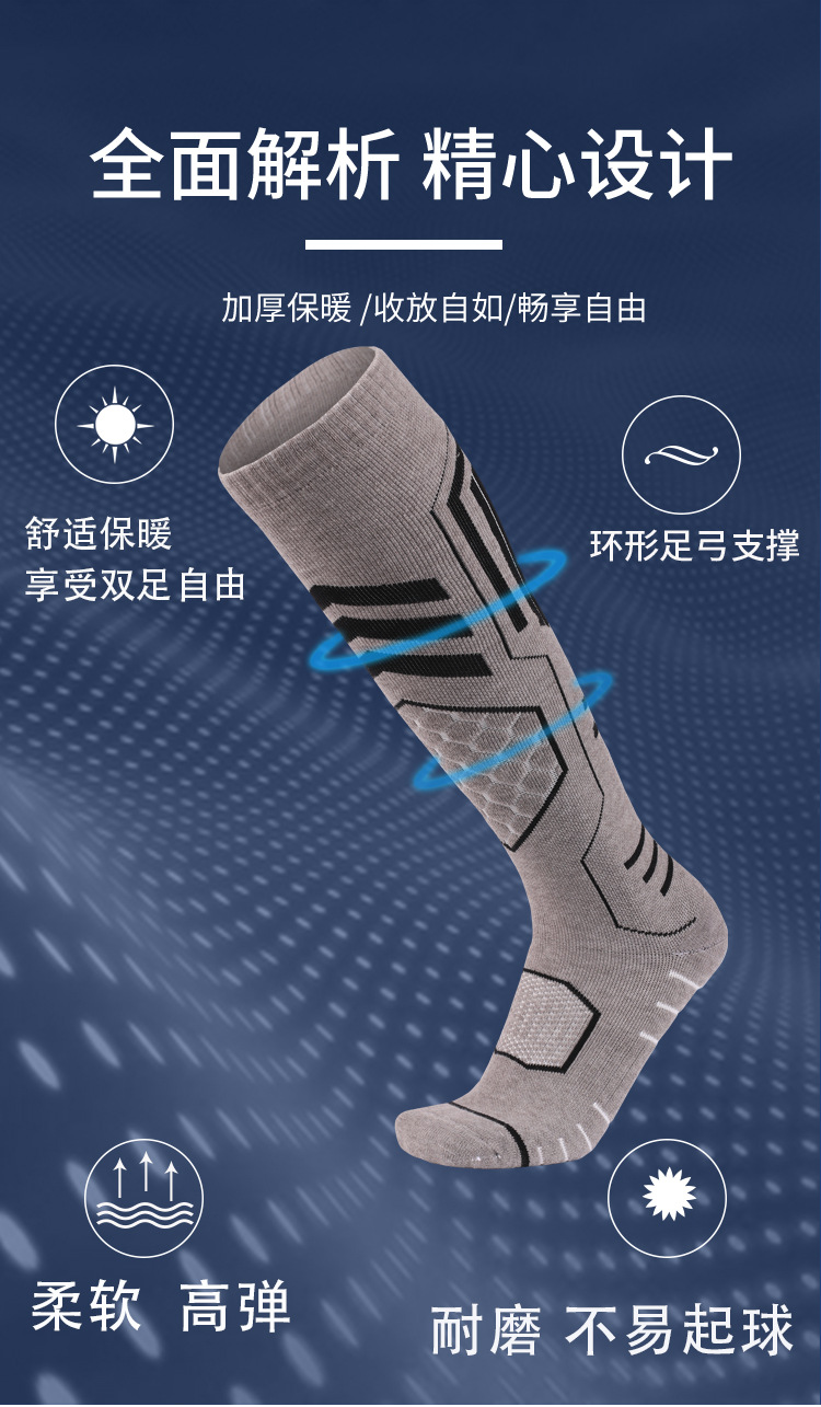 美利奴羊毛袜冬季保暖吸汗袜子男高筒袜防滑滑雪袜加厚毛巾底女袜