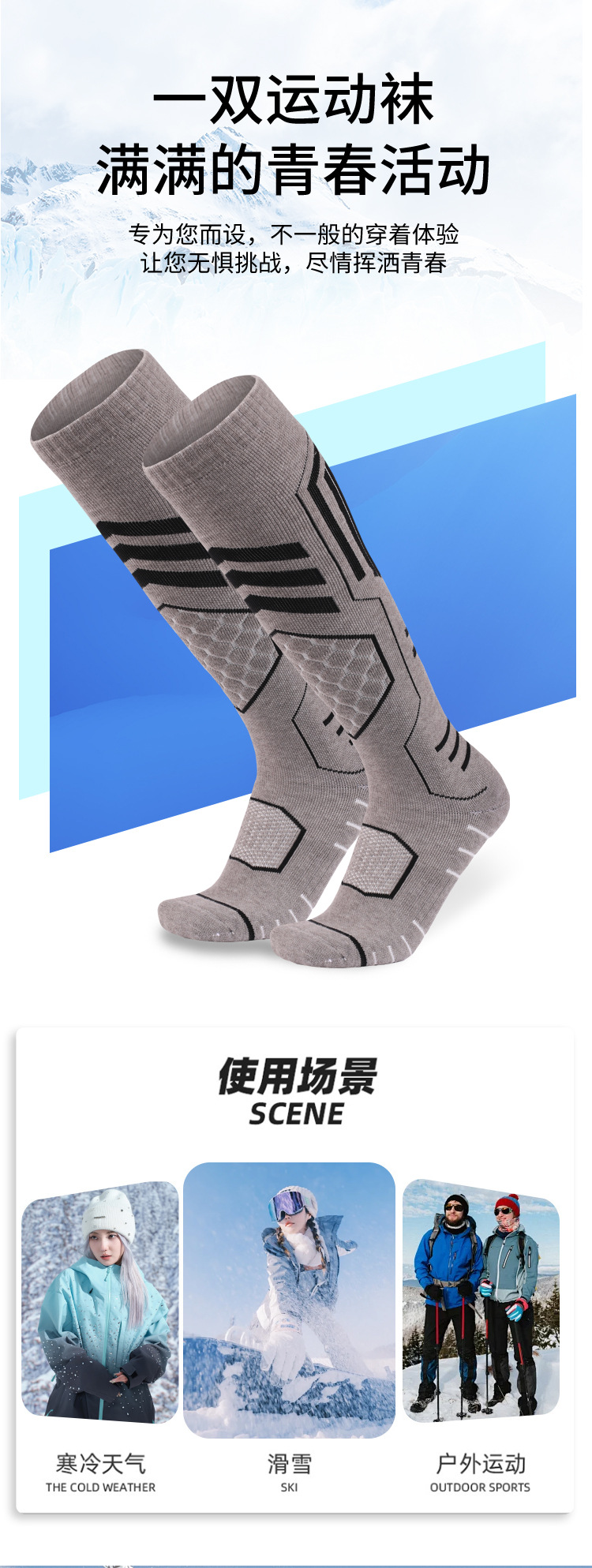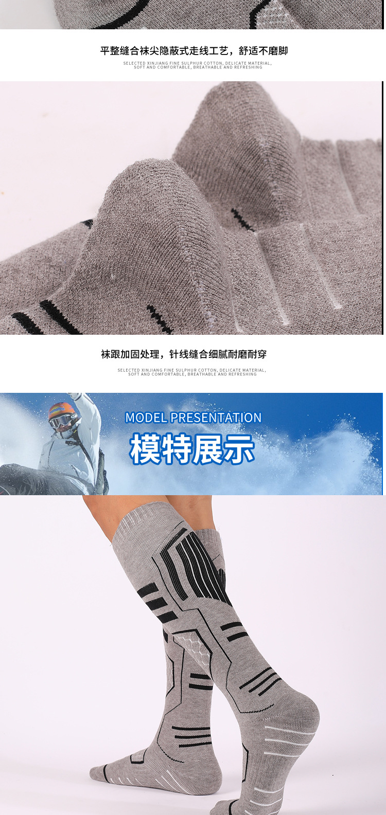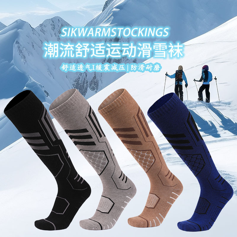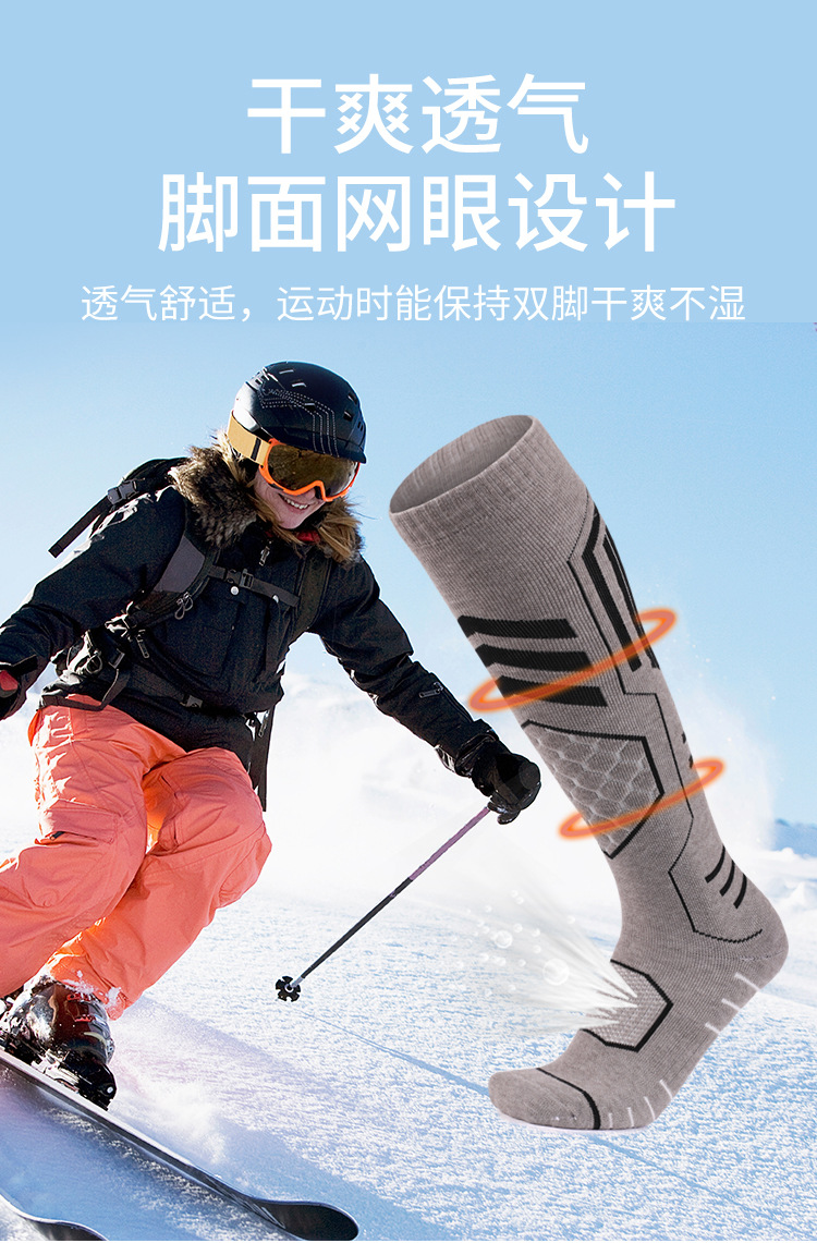 美利奴羊毛袜冬季保暖吸汗袜子男高筒袜防滑滑雪袜加厚毛巾底女袜