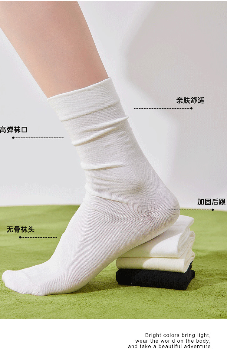 袜子女夏薄款中筒纯棉防臭月子袜2025白色无骨堆堆袜长袜女士诸暨