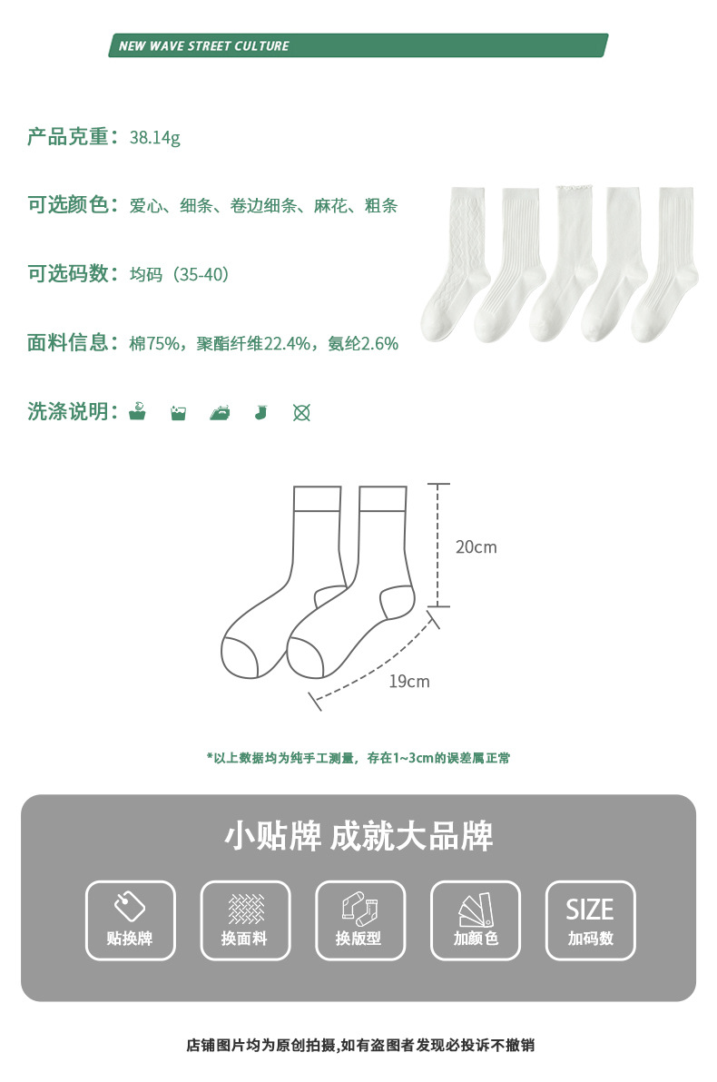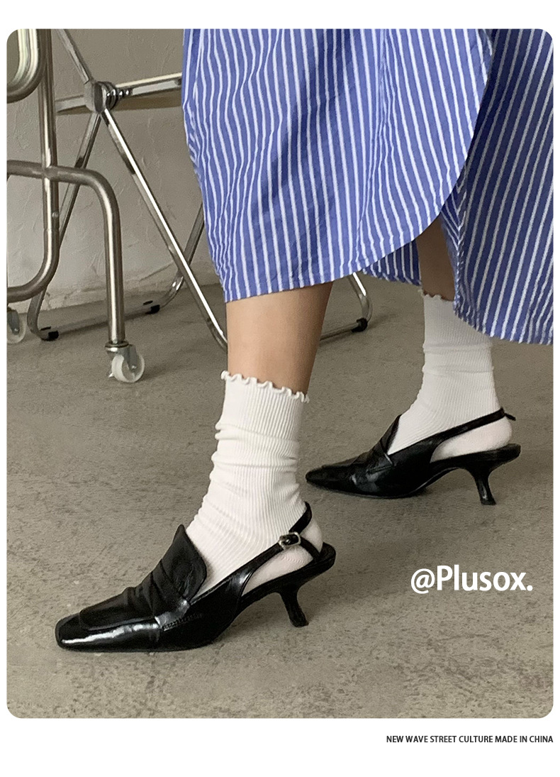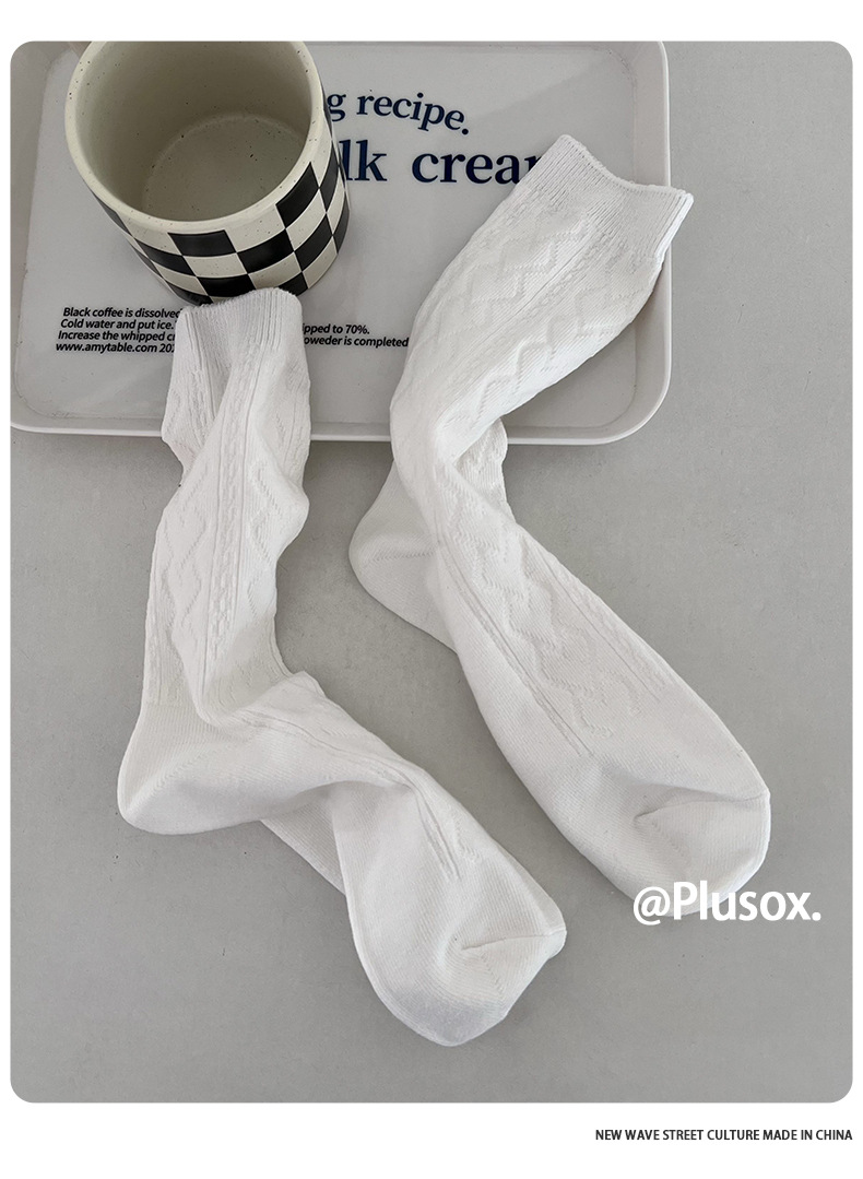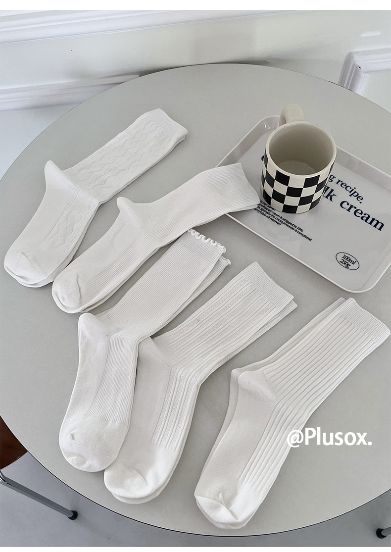 Plusox日系螺纹白袜子时尚百搭纯色袜子女夏季黑白堆堆棉袜女批发