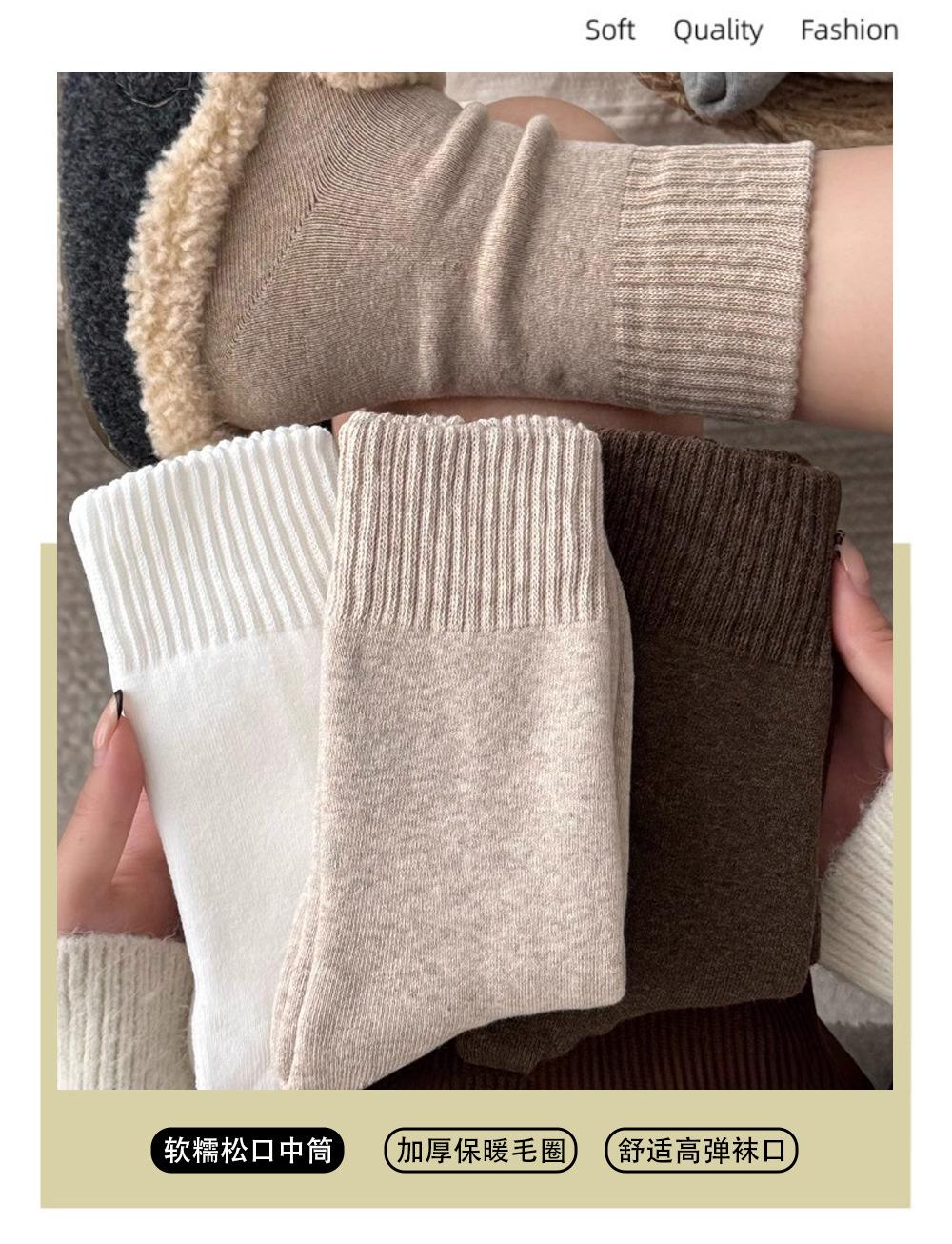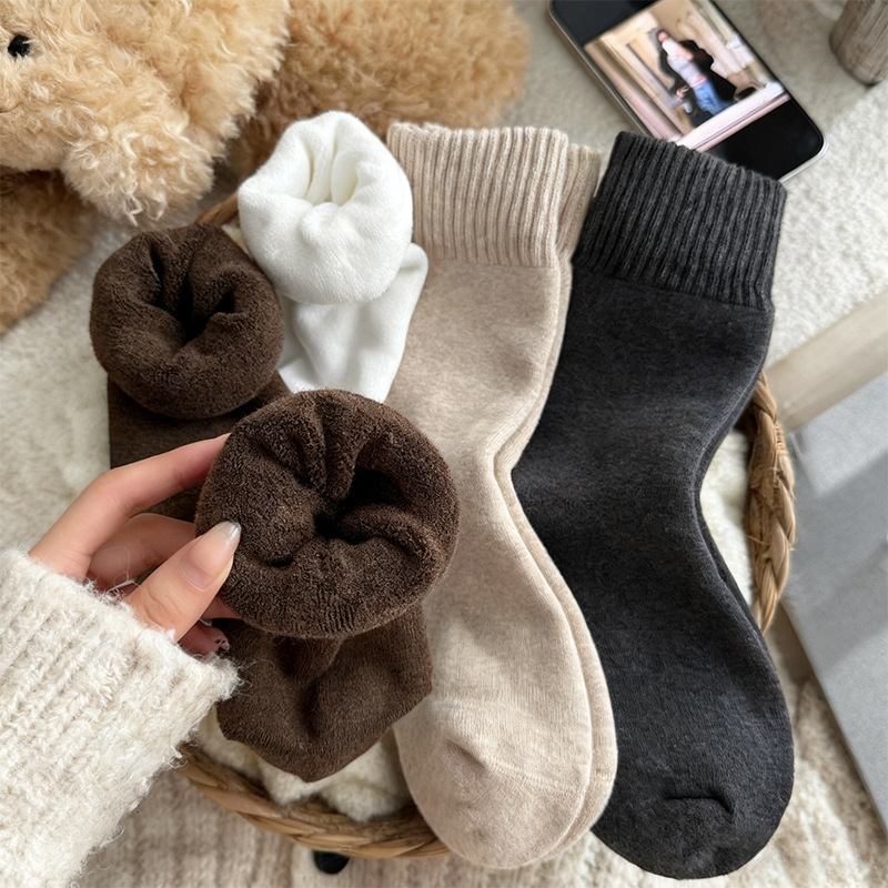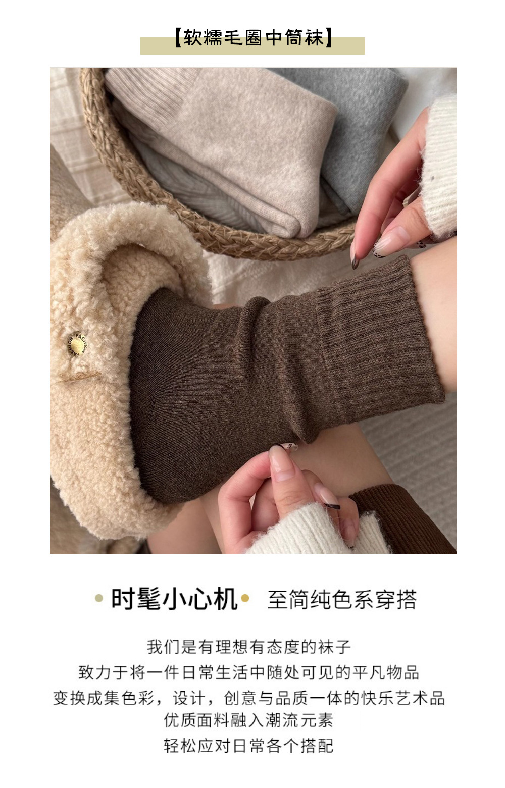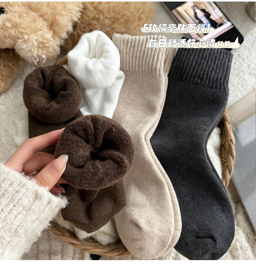毛圈袜子女秋冬保暖抗寒睡眠袜美拉德纯色毛巾中筒袜诸暨抗寒女袜