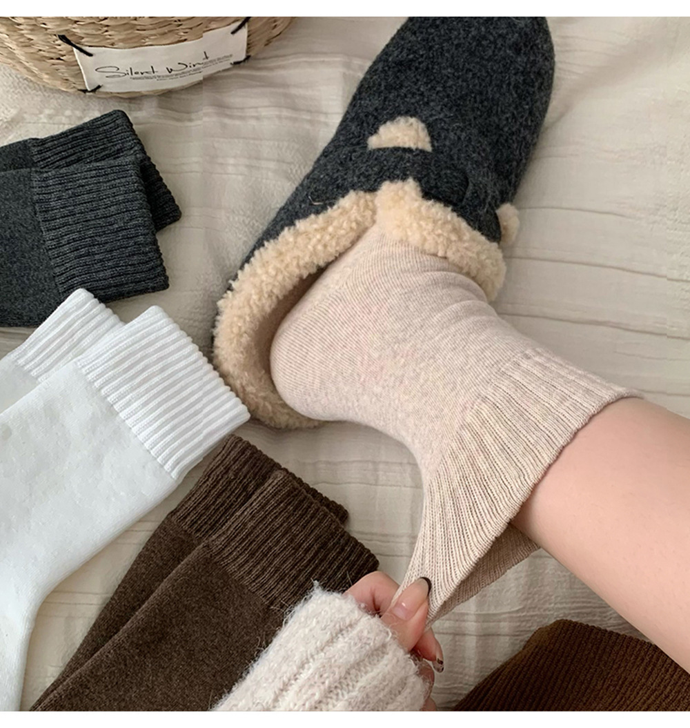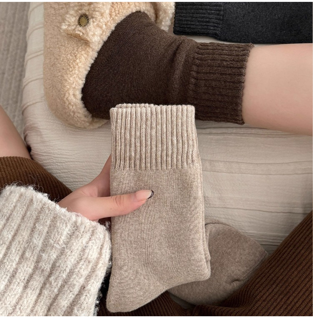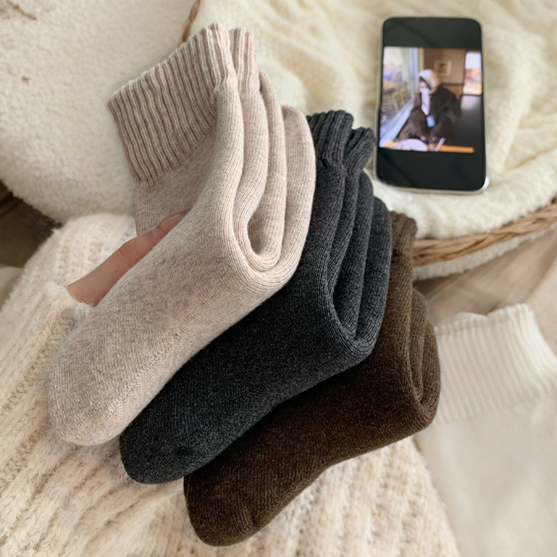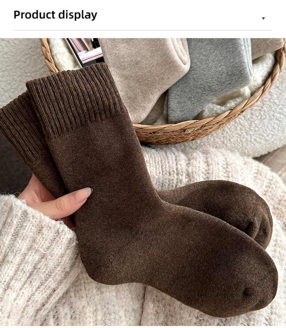 毛圈袜子女秋冬保暖抗寒睡眠袜美拉德纯色毛巾中筒袜诸暨抗寒女袜