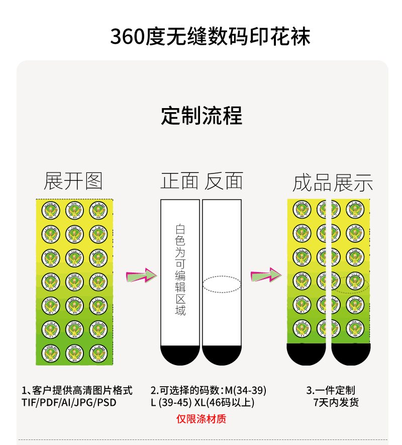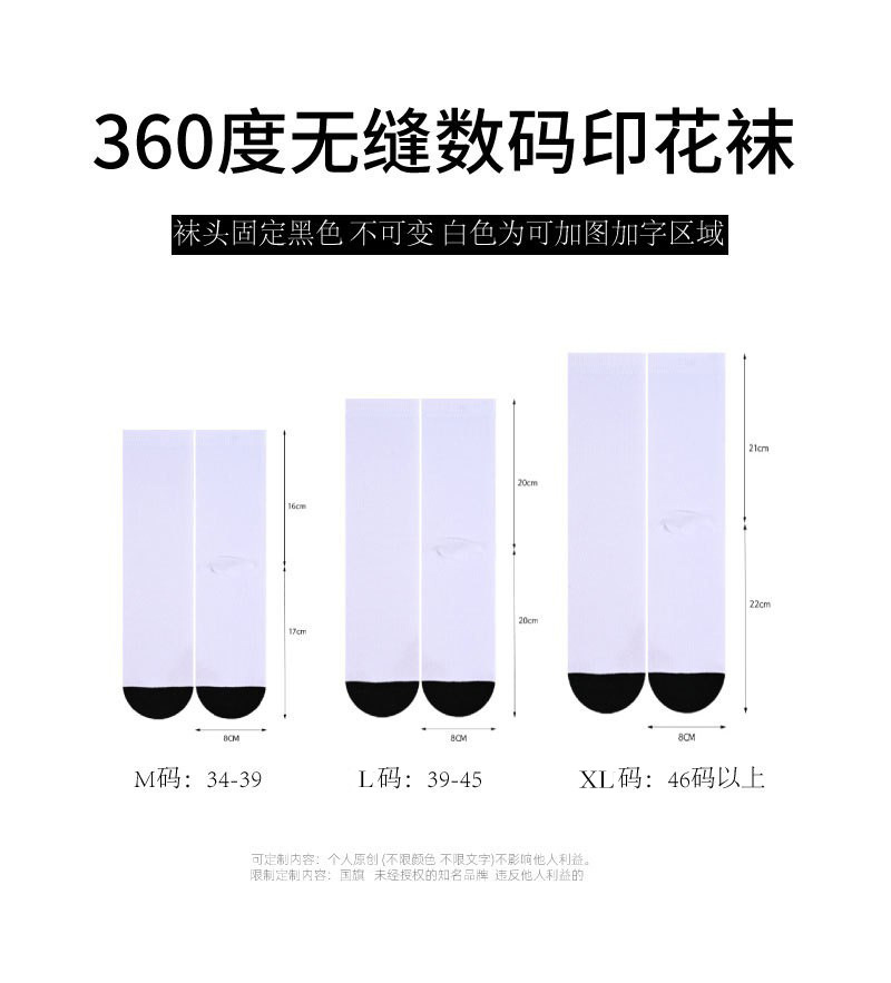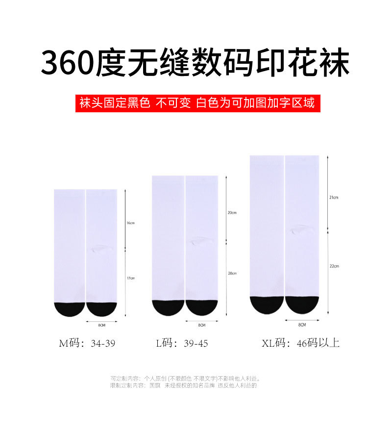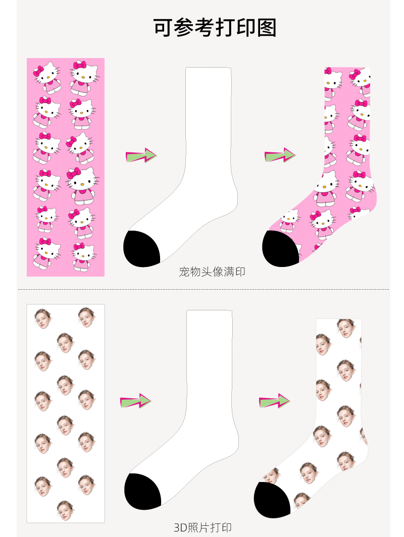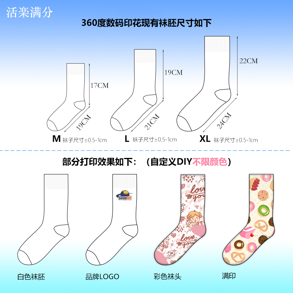 袜子定制小批量360数码印花潮棉袜来图无缝印花定制袜子LOGO定制