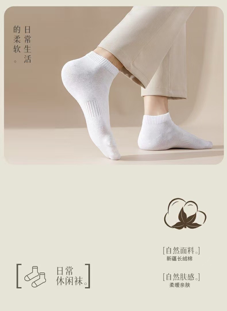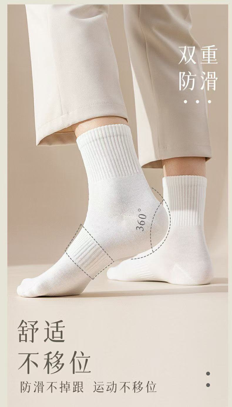 新疆棉袜子秋冬四季学生情侣防臭短袜诸暨纯棉男女运动袜黑白中筒