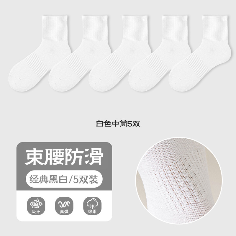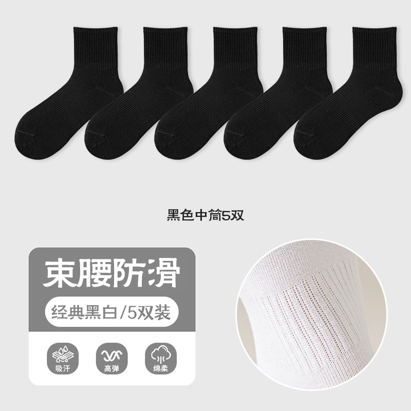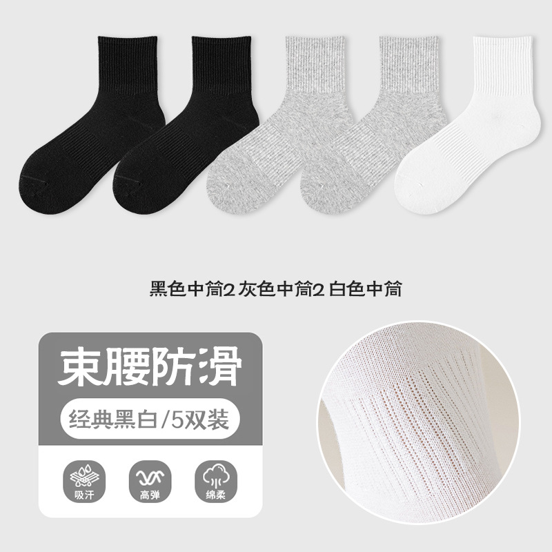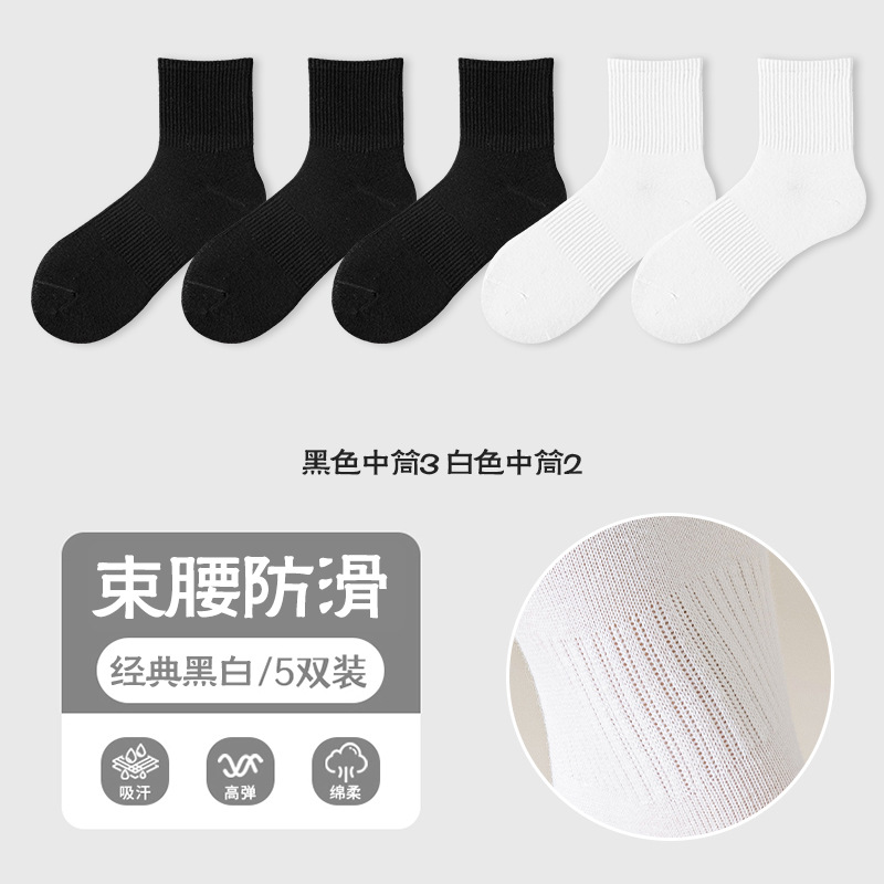 袜子春秋透气吸汗防臭男女ins黑白纯色中筒高筒情侣船袜棉袜批发