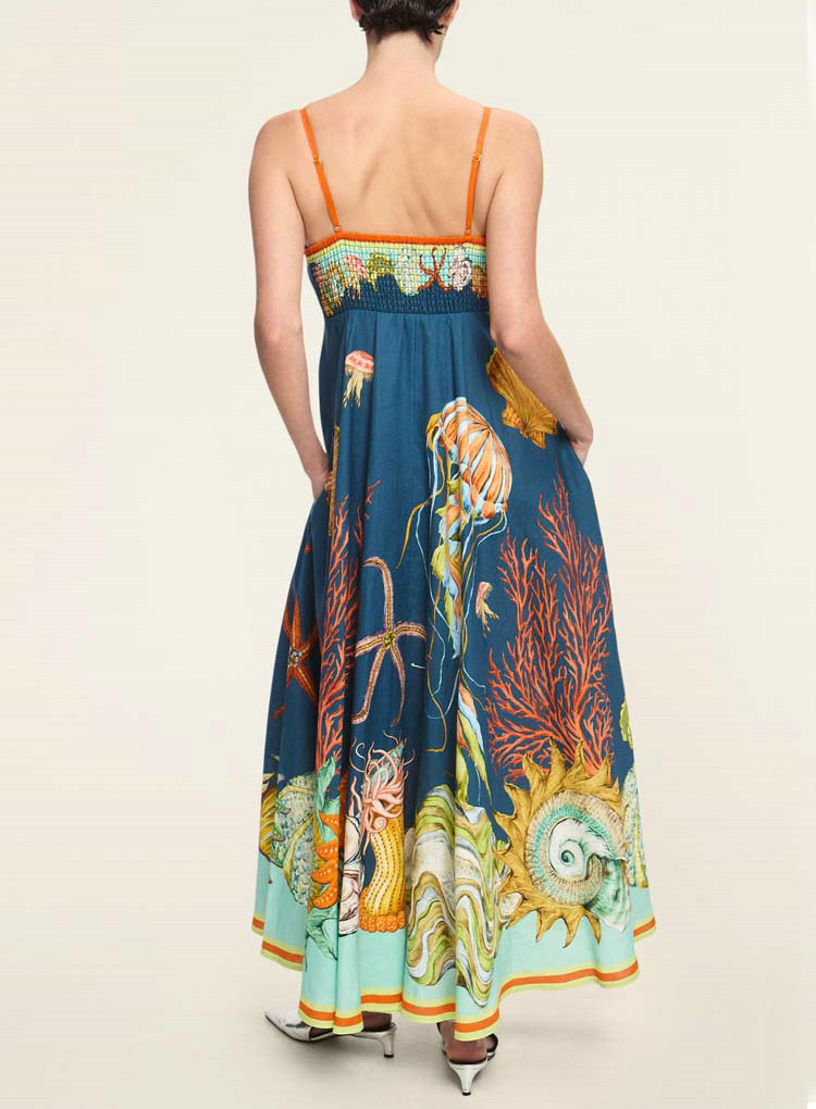 外贸跨境独立站2024新款休闲长裙女装吊带印花亚麻9色大摆连衣裙