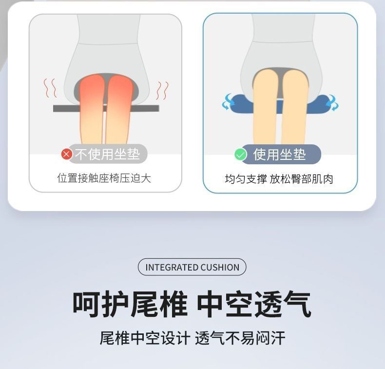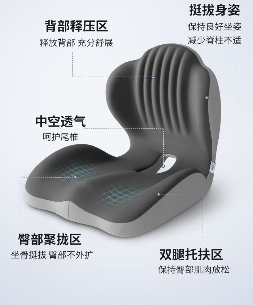 记忆棉连体靠垫办公室久坐不累坐垫护腰减压坐姿矫正