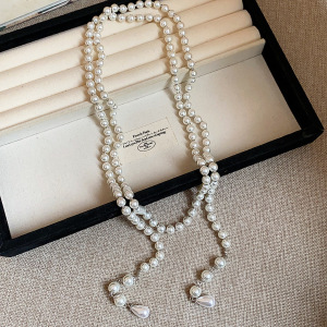 新品人造珍珠双层叠戴项链跨境精致时尚锁骨链法式气质轻奢毛衣链