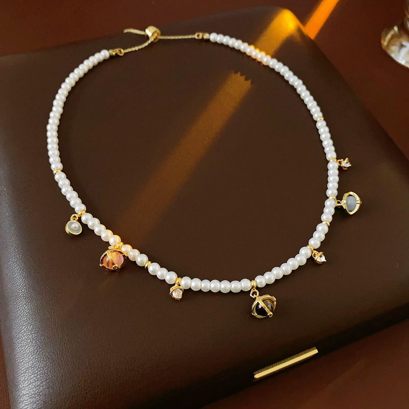 法式巴洛克褶皱水滴珍珠吊坠项链复古设计感串珠锁骨链小众简约女