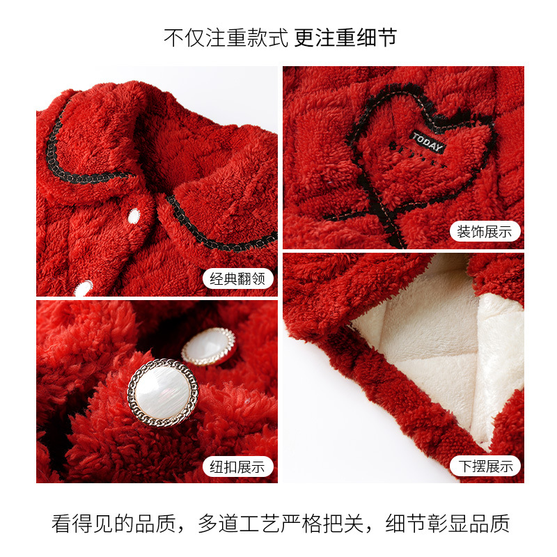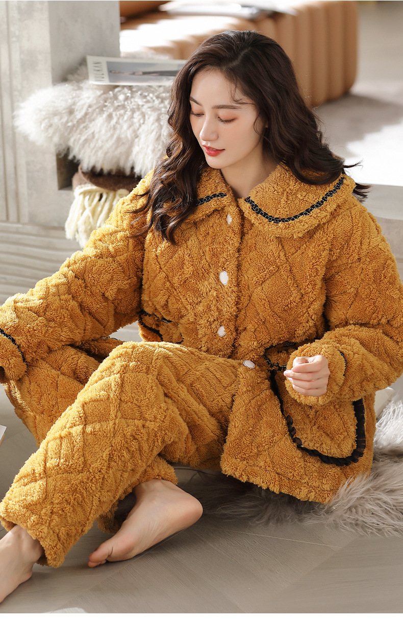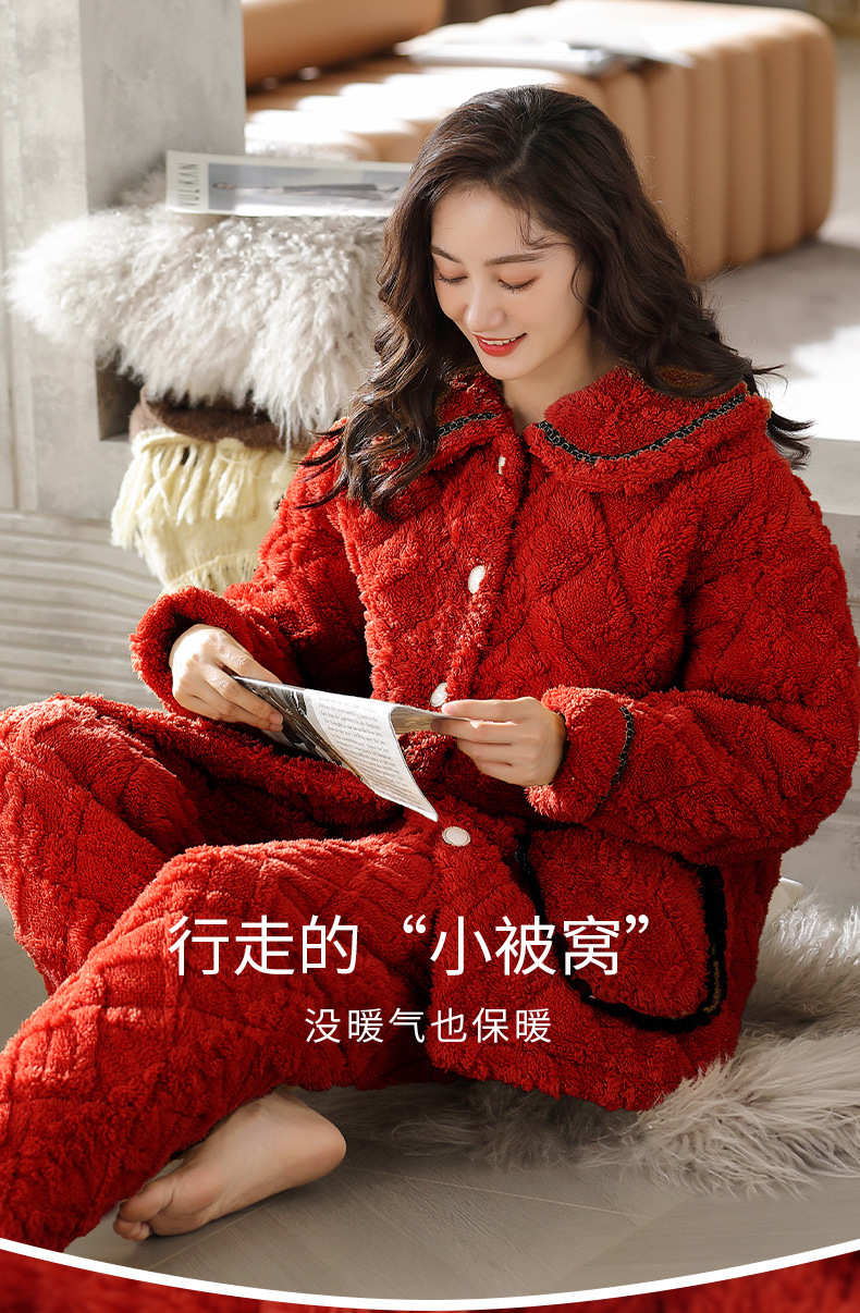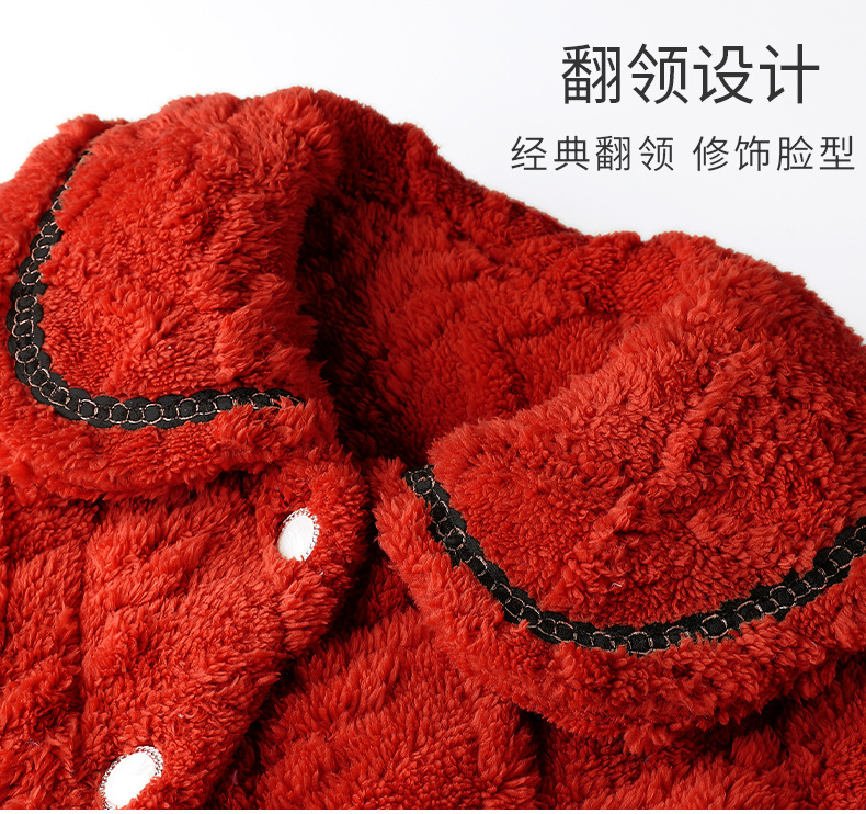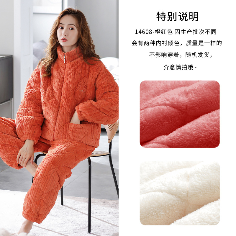 【夹棉特厚】珊瑚绒睡衣女秋冬季加厚加绒三层夹棉袄男家居服睡袍