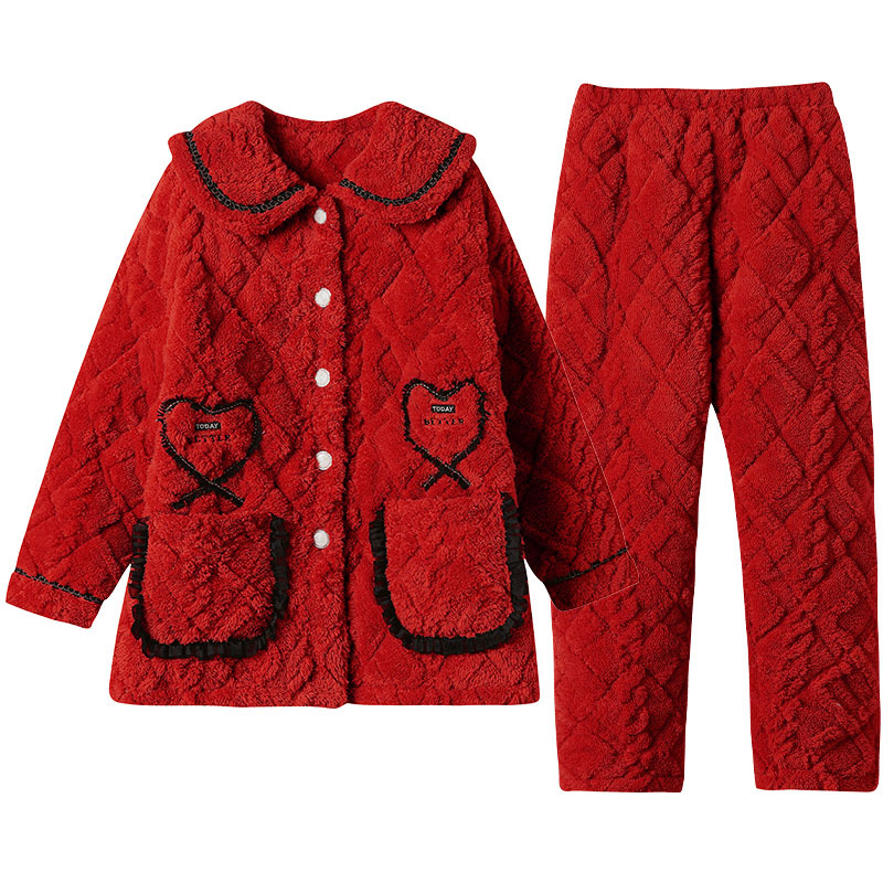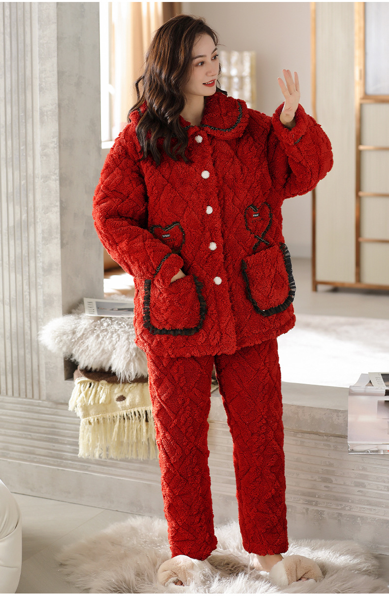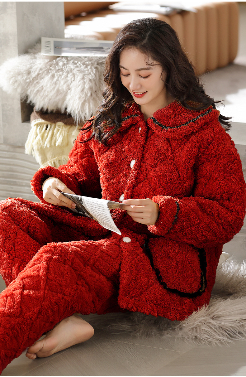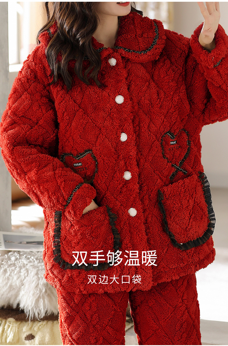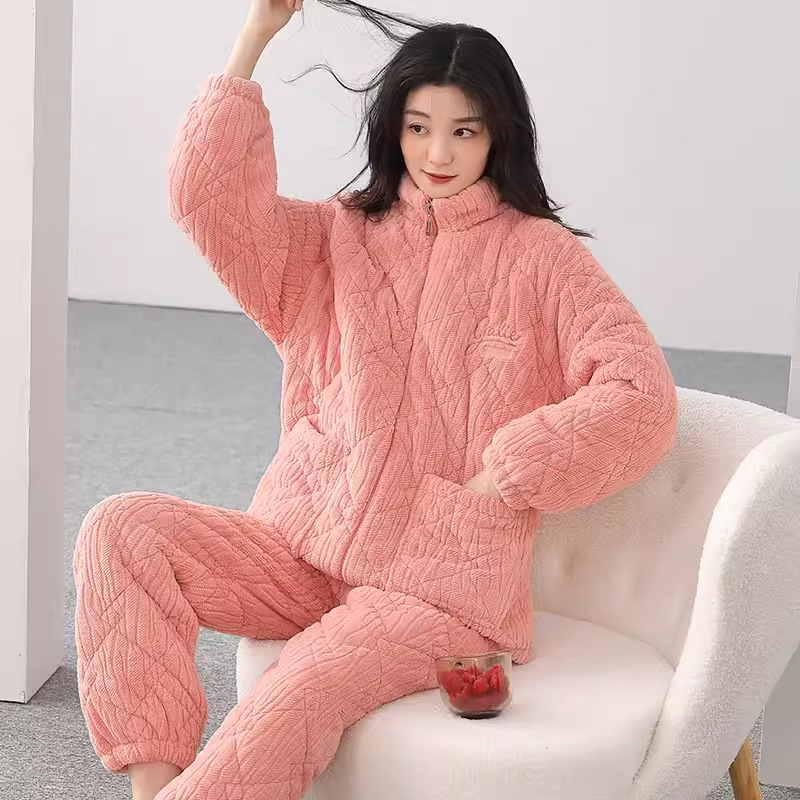 【夹棉特厚】珊瑚绒睡衣女秋冬季加厚加绒三层夹棉袄男家居服睡袍
