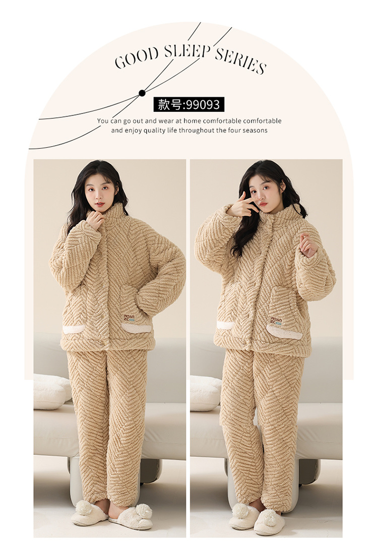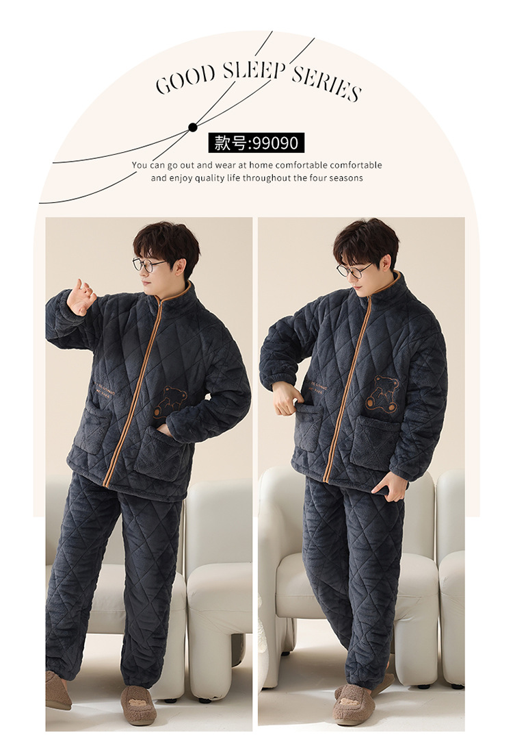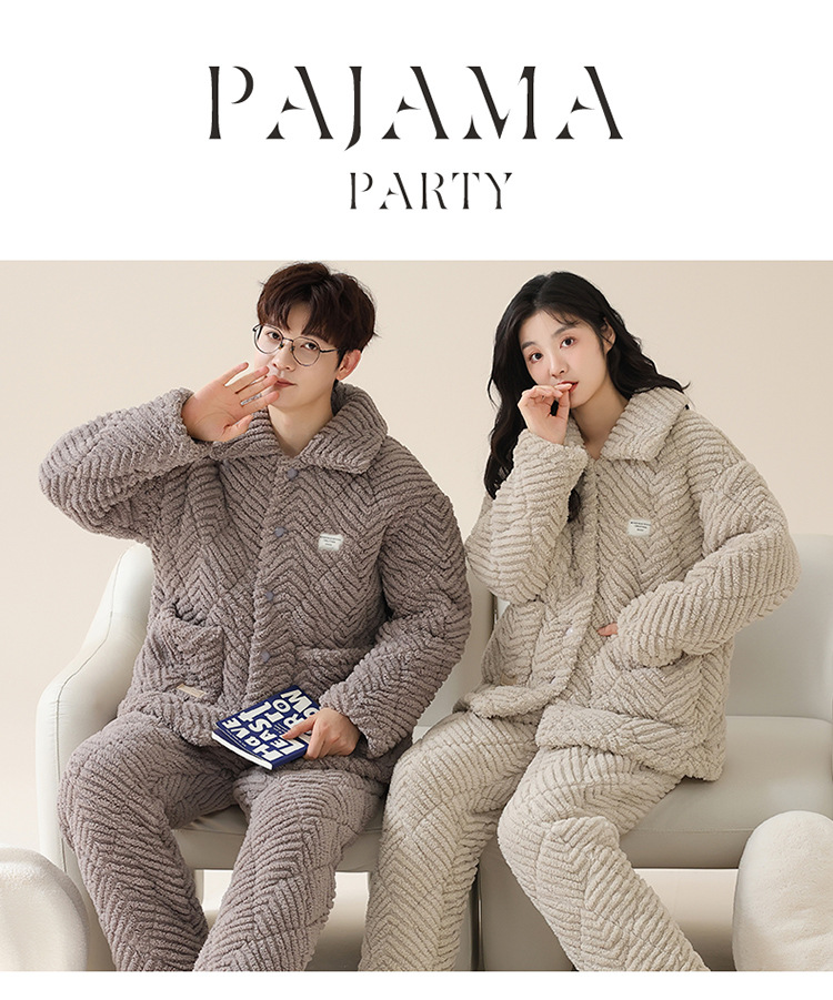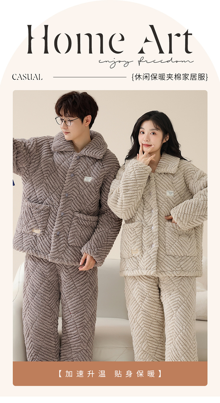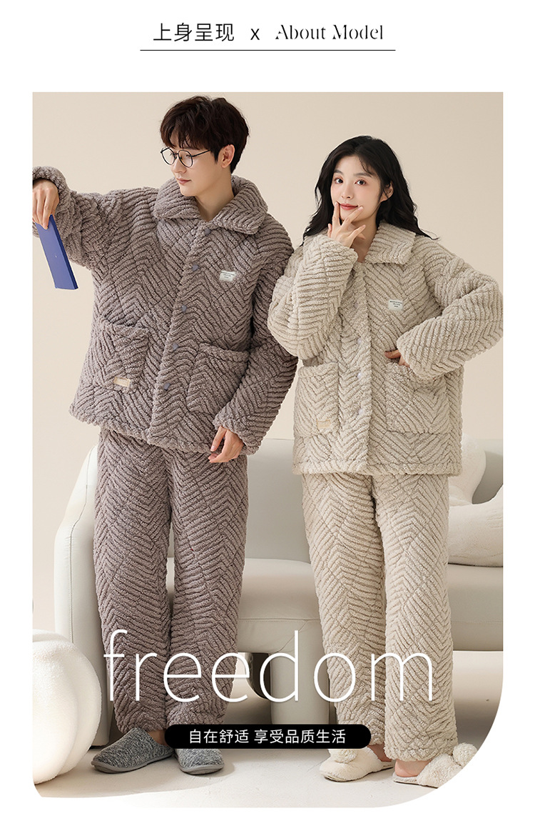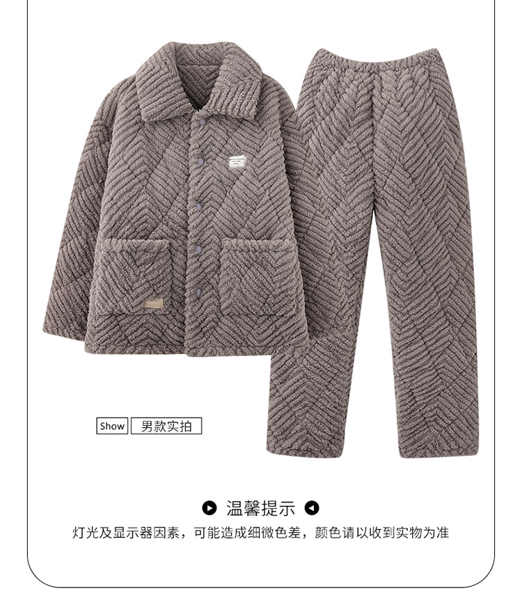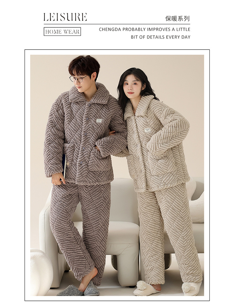 情侣睡衣女秋冬季三层夹棉珊瑚绒加厚加绒冬款保暖法兰绒家居服男